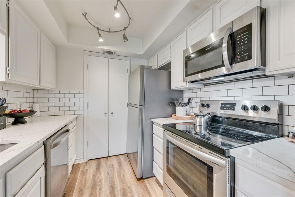 Inside, you're greeted by modern sophistication, with light-toned luxury vinyl plank flooring, crisp neutral tones, and designer touches throughout. The gourmet kitchen showcases sleek quartz countertops, a classic subway tile backsplash, stainless steel appliances, and open sightlines that make entertaining effortless. The split-bedroom layout provides ultimate privacy, with each generously sized bedroom featuring its own full bath and access to one of the multiple private balconies—perfect for your morning coffee or evening retreat.