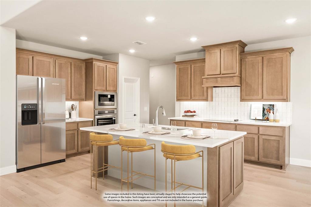 NEW! NEVER LIVED IN. READY NOW! The Spring Cress II by Bloomfield exudes luxury with a brick and stone facade enhanced by dramatic uplights and an upgraded front door, creating a truly striking first impression on a desirable interior lot. This expansive two-story home offers 5 spacious bedrooms and 4 baths, including a well-appointed Primary Suite and a guest room conveniently located downstairs. A swing garage adds both curb appeal and functionality, complete with a dedicated freezer plug, while gutters and blinds offer added convenience. Inside, Wood flooring flows seamlessly throughout the main living areas, elevating the home's modern style and complementing the Stone-to-Ceiling Fireplace that anchors the open-concept Family Room. The Deluxe Kitchen is a chef’s dream, featuring Quartz countertops in both the kitchen and baths, upgraded backsplash, under-cabinet lighting, pot and pan drawers, a custom wood vent hood above the electric cooktop, and all-electric stainless steel appliances, with a generously sized pantry providing ample storage. A private Study enclosed with elegant glass French doors offers a quiet workspace, while a built-in mud bench and utility cabinets in the mud room add everyday functionality. Open railing at the Family Room overlook and staircase brings architectural flair and openness to the layout, while the upstairs Media Room and adjacent Game Room provide dedicated spaces for entertainment. Outdoors, enjoy the extended patio with rear double flood lights for evening ambiance, making this home as functional as it is beautiful. Visit or call Bloomfield today!