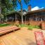 Enjoy the perfect blend of comfort and convenience in the beautifully updated lakefront home, ideally located near shopping, dining and all local amenities. Fresh interior paint and new carpet complement the open and spacious living area, featuring a cozy brick fireplace and laminate wood floors. The galley kitchen is both stylish and functional with shaker style cabinetry and leathered granite countertops. This home offers two primary suites, each with stunning lake views- ideal for hosting guests or multigenerational living. Relax year- round on the inviting screened porch or entertain on the large wood deck overlooking open water. The boathouse includes a party deck for lakefront fun, and the lush yard with mature trees provides shade serenity