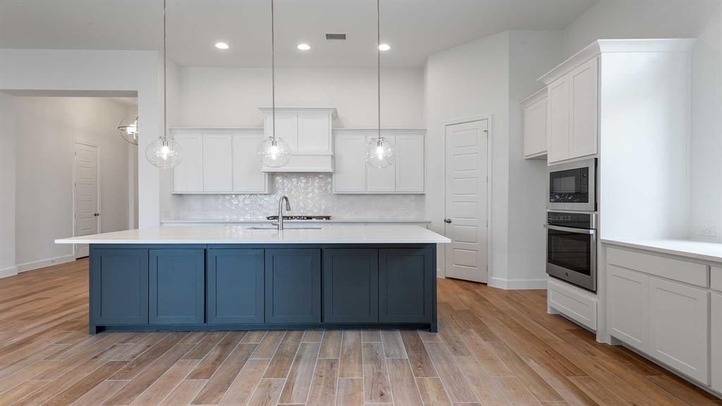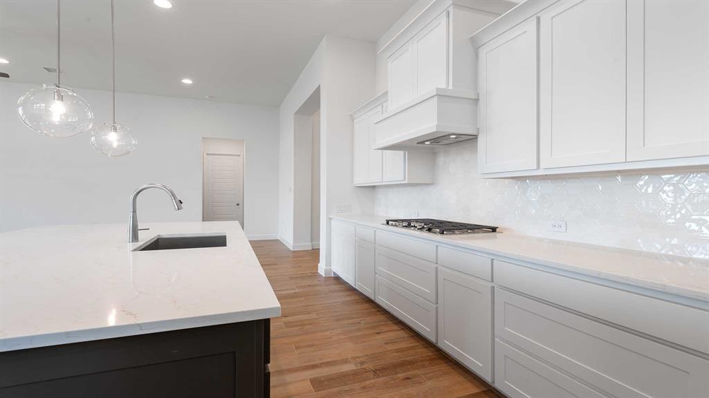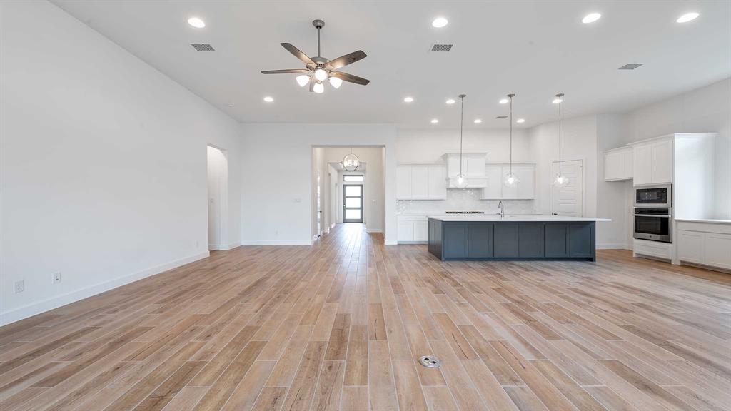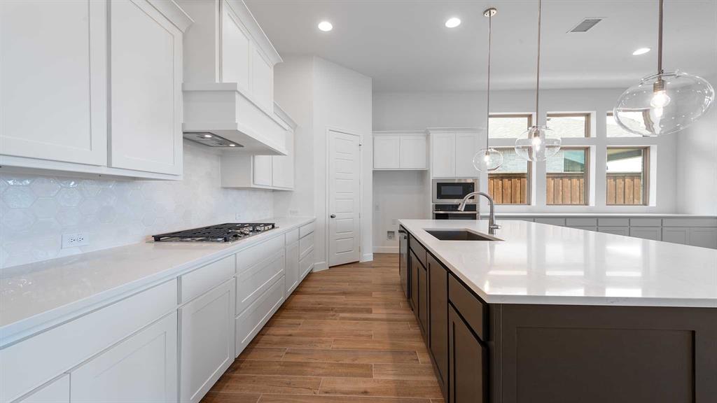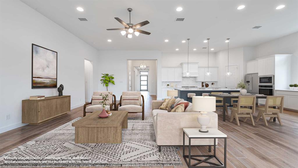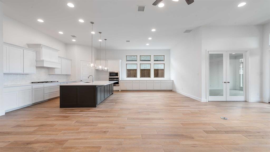 Home office with French doors frame entry. Open family room with a wood mantel fireplace and wall of windows extends to kitchen and dining area. Island kitchen with built-in seating space, 5-burner gas cooktop and a walk-in pantry. Game room with French doors just off the family room. Private primary suite with wall of windows. Primary bathroom features a French door entry, dual vanities, freestanding tub, separate glass enclosed shower and two walk-in closets. Guest suite with full bathroom and walk-in closet. Additional bedrooms with walk-in closets a half bathroom and Hollywood bathroom completes this design. Covered backyard patio. Utility room and mud room off the three-car garage.