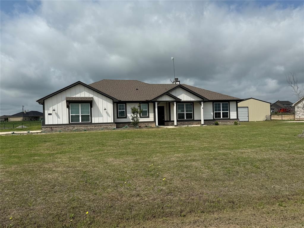 Newer home on 1+ acre lot with privacy fenced back yard and sprinkler system. 3 bedroom 2 bath split floor plan, office or flex space, open island kitchen features quartz counters and living area focal point being the cast stone wood burning fireplace. Primary bedroom has large walk in closet, oversized shower and double vanities. Split spacious secondary bedrooms share the hall bath. Roomy mud room just off of the garage, has a storage bench. Back yard has a fenced area with a chicken coop, plus there is a fire pit area for entertaining or star gazing.
