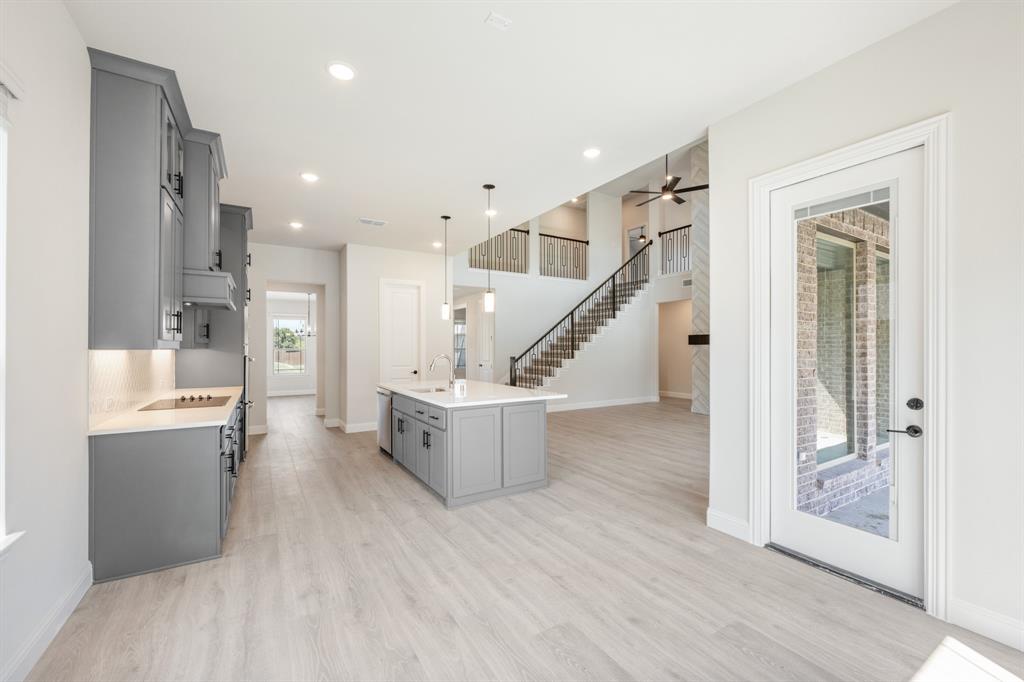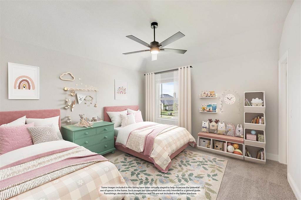 NEW! NEVER LIVED IN & Ready to Clsoe! Bloomfield's Seaberry floor plan is a stunning two-story home on an interior lot, offering 5 spacious bedrooms and 4 baths. The open foyer welcomes you with an elegant Formal Dining area and a private Study enclosed by glass-paneled dual doors, while 8' interior doors throughout the first floor and upgraded Level 3 flooring elevate the home’s style and scale. A Butler’s Pantry provides seamless access to the Deluxe Kitchen, where you'll find upgraded Quartz countertops, all-electric stainless steel appliances including a Double Oven, under-cabinet lighting, upper cabinetry in the laundry, and a large island framed by chic pendant lights—all flowing effortlessly into the expansive Family Room. Here, soaring 18’ ceilings and picture windows highlight a dramatic Stone-to-Ceiling Fireplace with a cedar mantel, anchoring the space with warmth and grandeur. Durable Laminate Wood floors extend through the downstairs common areas, enhancing both beauty and function. The Primary Suite offers a serene retreat with upgraded Quartz surfaces in the bath, a soaking tub, separate shower, and a spacious L-shaped vanity. Upstairs, a large Game Room ensures plenty of space for relaxation or play. Outside, enjoy a covered patio and a fully bricked front porch that enhances the home’s stately brick and stone façade, complete with cedar garage doors, blinds throughout, and an 8' custom front door. With stone-edged landscaping and a 2-car swing garage, this home beautifully blends elegance and comfort—call or visit today!