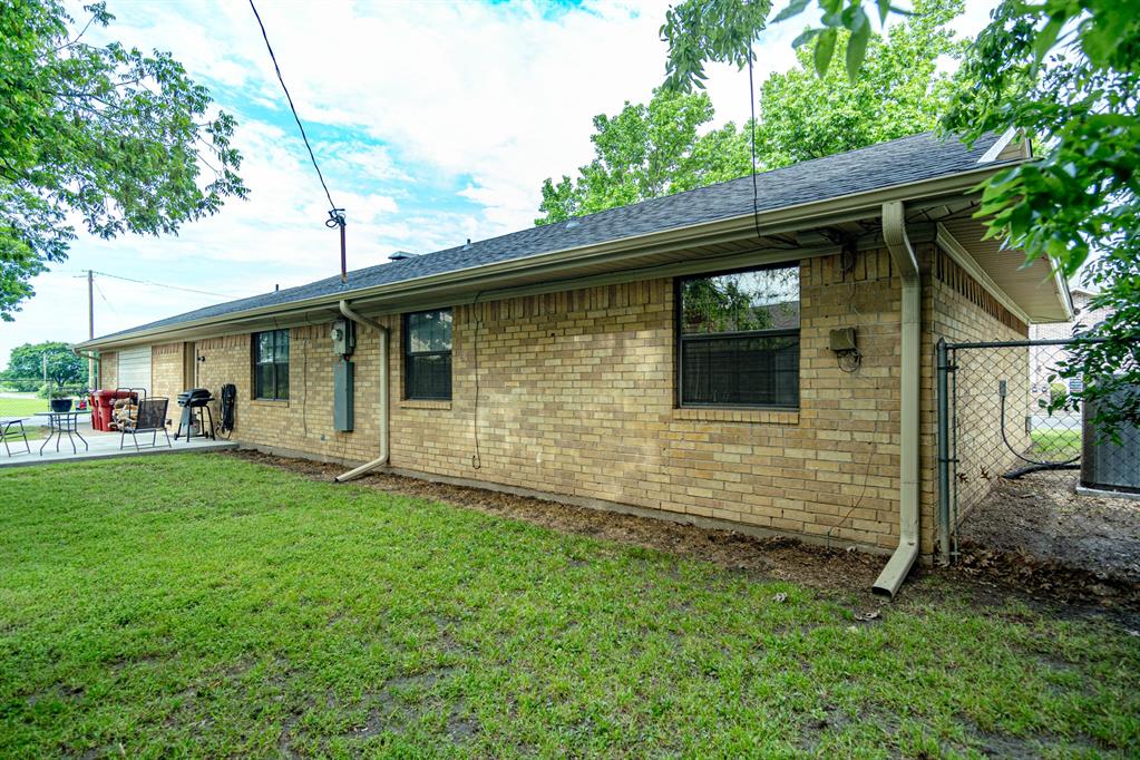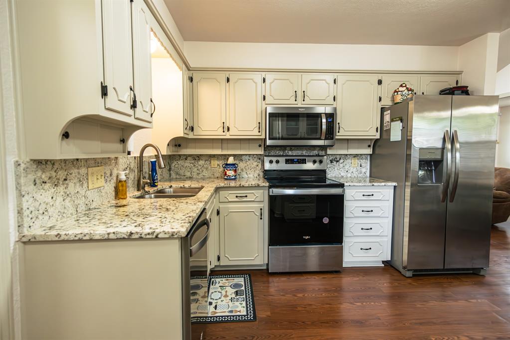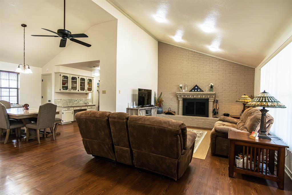 This Charming 3 Bedroom 2 Bath Home Offers Upgrades and Spacious Living. Welcome to this beautiful, well maintained and immaculate home on a corner lot. The expansive living room, complete with a cozy wood burning fireplace and brick hearth, offers an inviting space for relaxation and entertaining. The kitchen boasts granite counters, built in hutch, new appliances and 2 pantries, providing both functionality and style. The Primary suite serves as a private retreat with ensuite bath, 2 closets and a comfortable sitting area. Enjoy the durability and beauty of laminate flooring throughout the home. Recent upgrades include a new electrical panel box, a gas water heater, and a new Central H&A system, ensuring comfort and efficiency year around. Additional storage is available with newly installed cabinets in the garage and a new storage building in the fenced back yard. No painting required since this home features all brick with vinyl siding! This move in ready home is a perfect choice for your next residence.