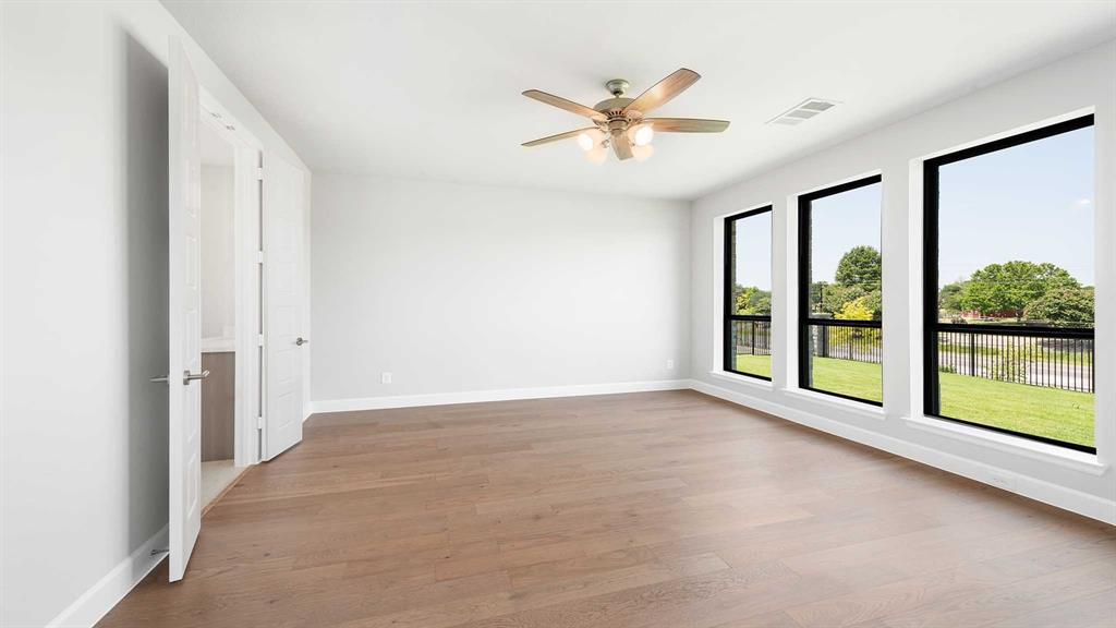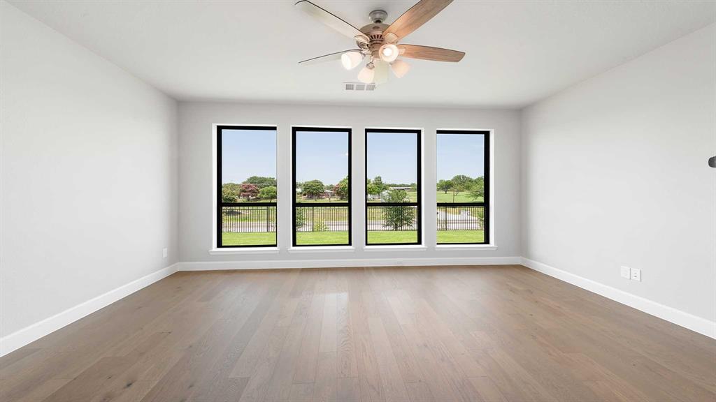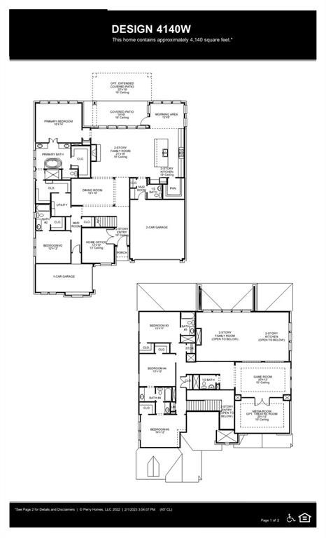 Two-story entry framed by home office with a French door entry. Formal dining room just off the family room and kitchen. Generous two-story family room with 19-foot ceilings, a fireplace and a wall of windows. Island kitchen features built-in seating space, a two-story ceiling and a large walk-in pantry. Morning area just off the kitchen with three large windows. Secluded primary suite offers a large bedroom with a wall of windows, French doors that open to the primary bathroom, dual vanities, freestanding tub, separate glass enclosed shower and two walk-in closets with private access to the utility room. Guest suite with full bathroom and a walk-in closet on first floor. Second floor hosts a large game room, Media room with a French door entry, additional bedrooms with walk-in closets, a guest suite with full bathroom, a Hollywood bathroom and half bathroom. Covered backyard patio. Mud room just off the two-car garage.