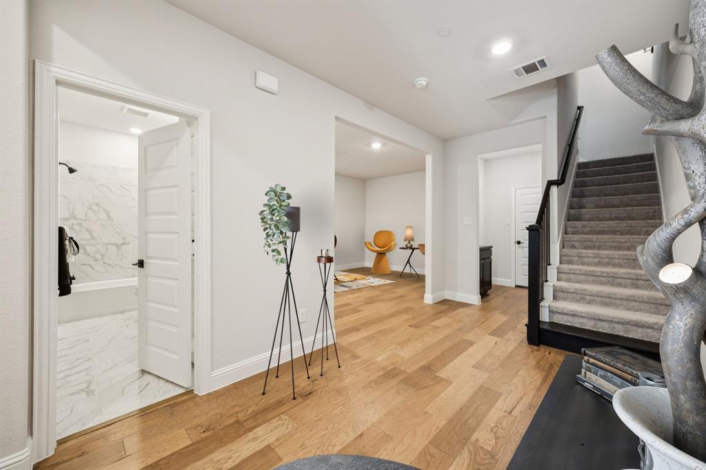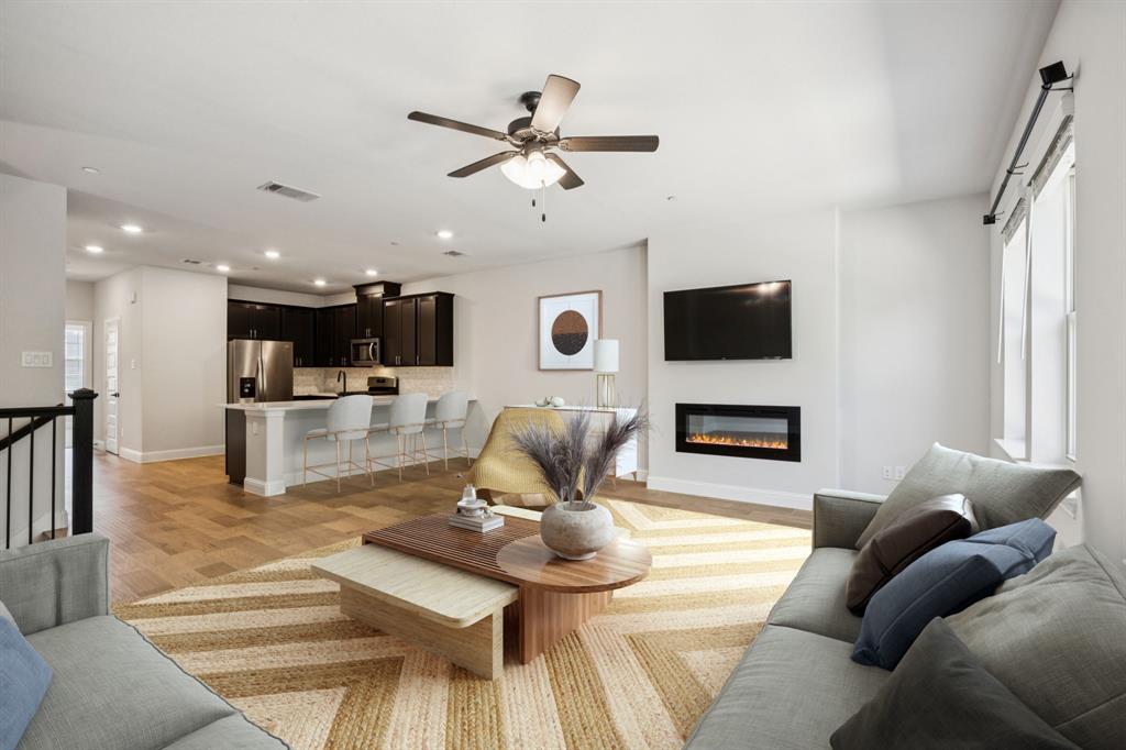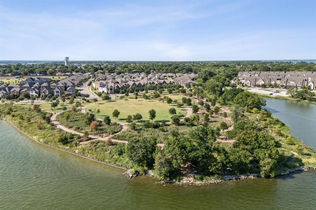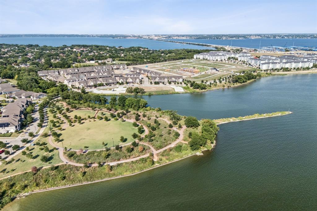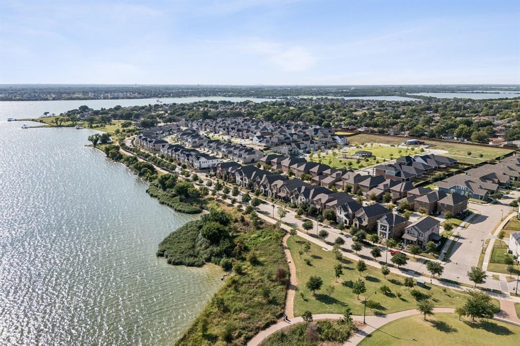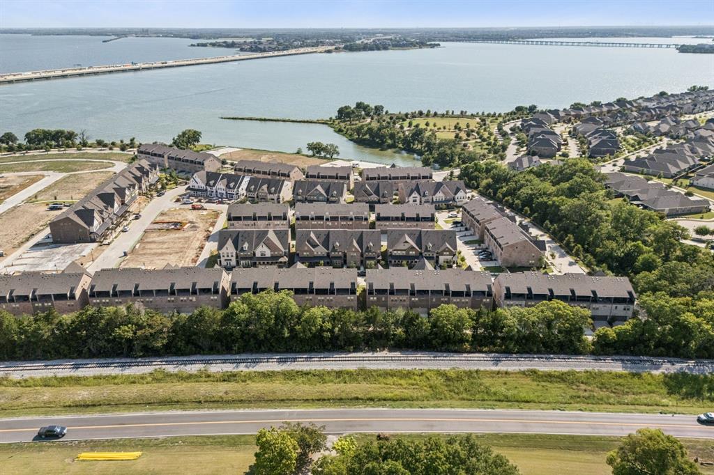 Dreaming of living at the lake? Save $50,000 or more compared to builder models and take advantage of a 4.49% interest opportunity with this beautifully designed 3 story townhome in Rowlett’s sought after Bayside community on the shores of Lake Ray Hubbard. This luxurious home features 3 bedrooms, 3 and a half bathrooms, and multiple living areas. This home delivers both value and a versatile floor plan that fits today’s lifestyle needs. The first floor features a welcoming stone-and-brick elevation with a large covered front patio for relaxing outdoors. As you enter the home, you find a private bedroom, full bath, and a versatile living room with engineered wood flooring. This 1st floor living area could also be used as a study. The second floor is the heart of the home which boasts an open living room with a wall of windows overlooking the treelined drive, electric fireplace with color settings, and engineered wood flooring. The kitchen features quartz counters, a large island with breakfast bar, mosaic backsplash, butler’s pantry, and stainless steel Whirlpool appliances including a refrigerator. The primary suite offers a walk-in closet and spa-like bath with dual vanities, oversized shower with seat, and private water closet. Head upstairs to the third floor which offers a private bedroom with en-suite bath and walk-in closet and a beautiful view of the private terrace deck. You will love the treelined peaceful view from your 3rd floor balcony terrace. Enjoy daily walks and sunset views along the shores of beautiful Lake Ray Hubbard. Stroll to Peninsula Park for nature trails, a dog park, green space and fishing pier, or enjoy one of the 2 neighborhood parks with volleyball and kids playground. Easily connect to Sapphire Bay Marina and local dining at the lake. Quick access to I-30, George Bush Turnpike, Rockwall’s Harbor District, and downtown Rowlett. This home offers the perfect blend of luxury living and an active lakeside lock-and-leave lifestyle.