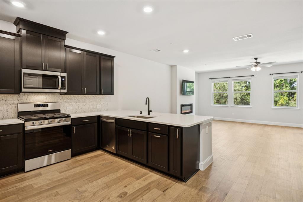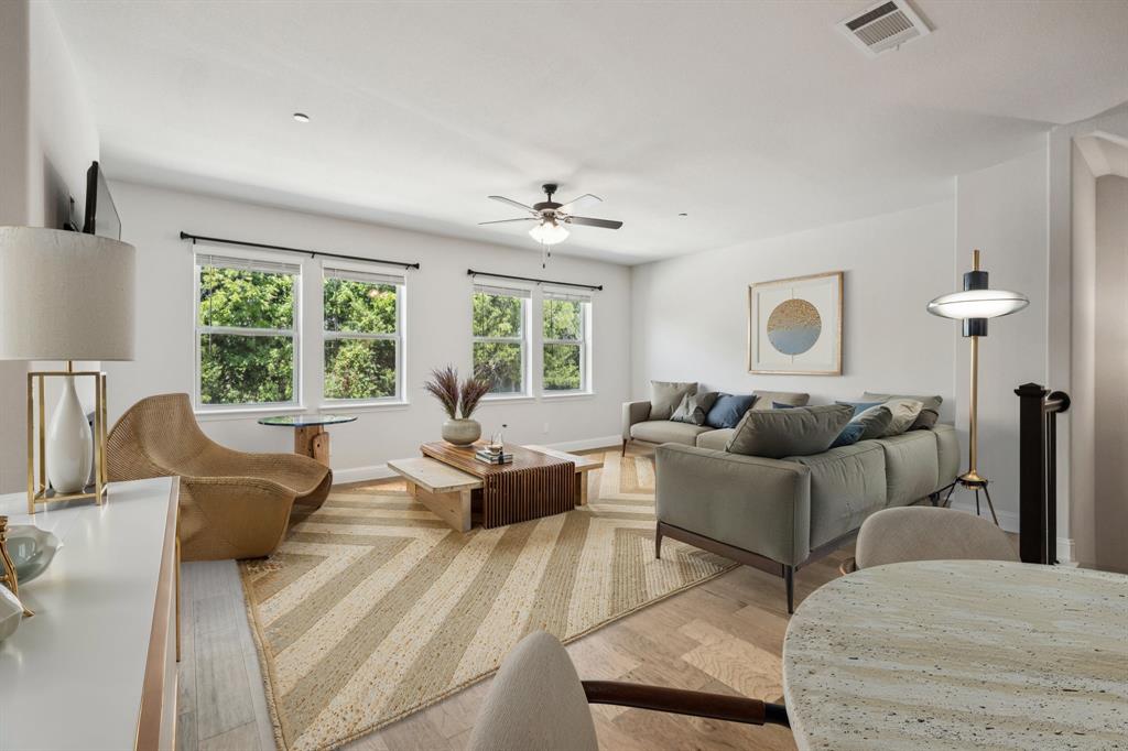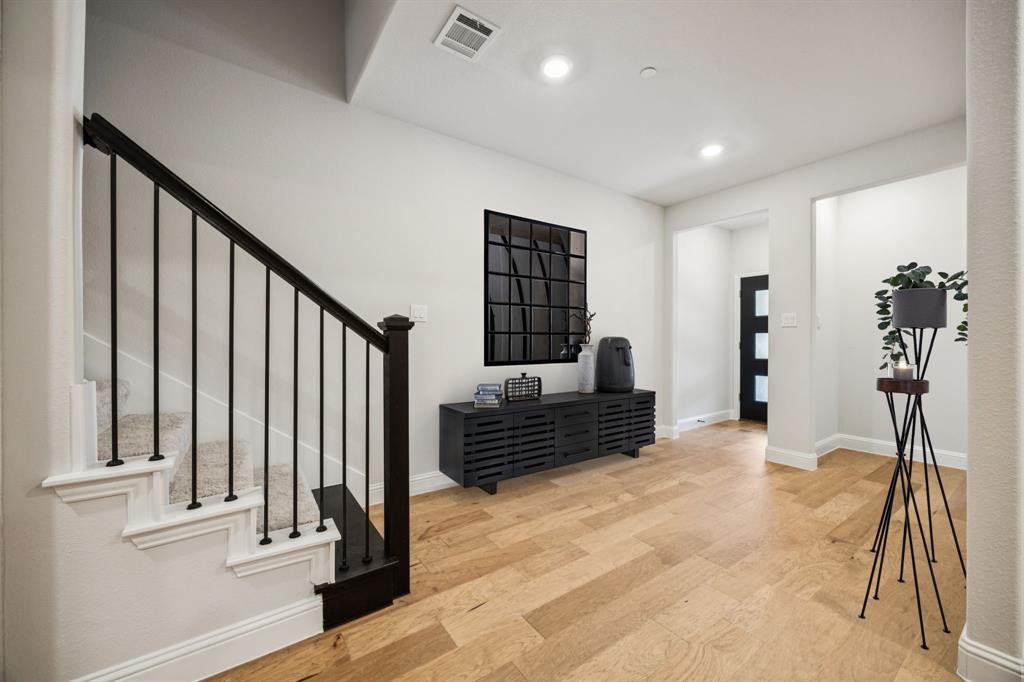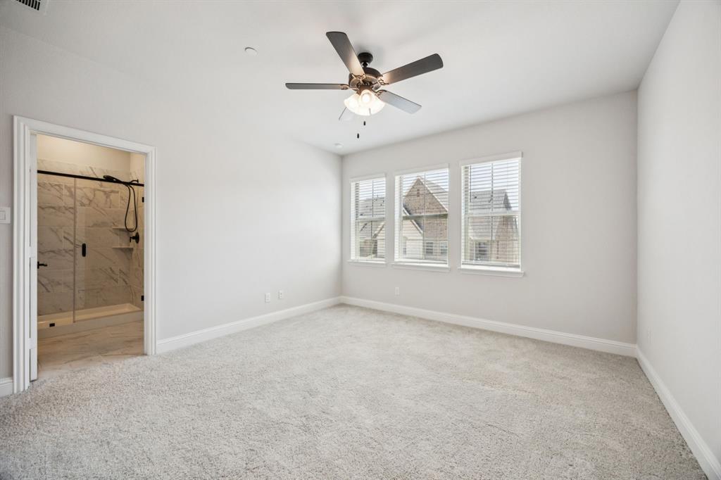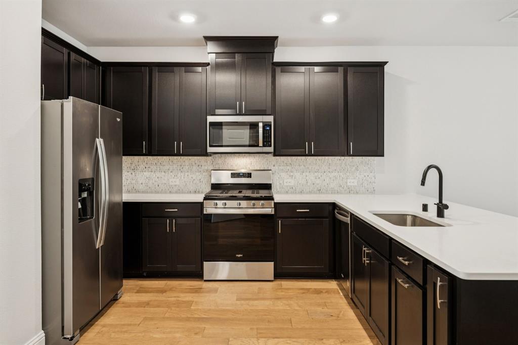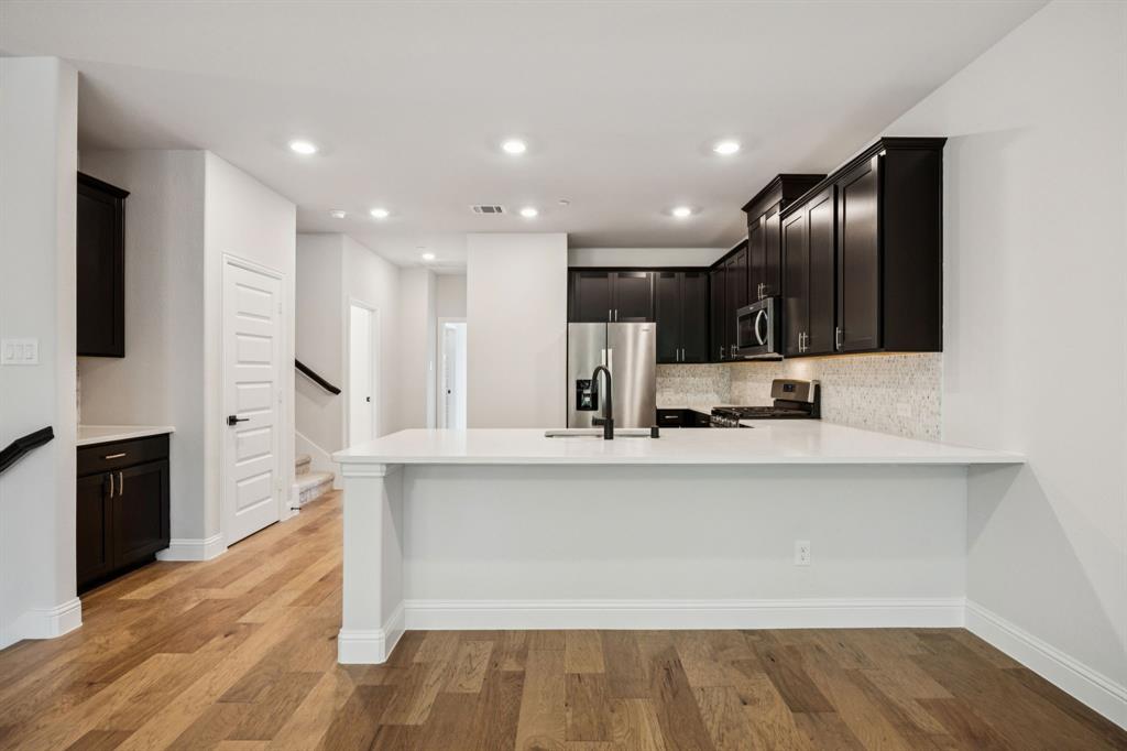 Dreaming of living at the lake? Save $50,000 or more compared to builder models and take advantage of a 4.49% interest opportunity with this beautifully designed 3 story townhome in Rowlett’s sought after Bayside community on the shores of Lake Ray Hubbard. This luxurious home features 3 bedrooms, 3 and a half bathrooms, and multiple living areas. This home delivers both value and a versatile floor plan that fits today’s lifestyle needs. The first floor features a welcoming stone-and-brick elevation with a large covered front patio for relaxing outdoors. As you enter the home, you find a private bedroom, full bath, and a versatile living room with engineered wood flooring. This 1st floor living area could also be used as a study. The second floor is the heart of the home which boasts an open living room with a wall of windows overlooking the treelined drive, electric fireplace with color settings, and engineered wood flooring. The kitchen features quartz counters, a large island with breakfast bar, mosaic backsplash, butler’s pantry, and stainless steel Whirlpool appliances including a refrigerator. The primary suite offers a walk-in closet and spa-like bath with dual vanities, oversized shower with seat, and private water closet. Head upstairs to the third floor which offers a private bedroom with en-suite bath and walk-in closet and a beautiful view of the private terrace deck. You will love the treelined peaceful view from your 3rd floor balcony terrace. Enjoy daily walks and sunset views along the shores of beautiful Lake Ray Hubbard. Stroll to Peninsula Park for nature trails, a dog park, green space and fishing pier, or enjoy one of the 2 neighborhood parks with volleyball and kids playground. Easily connect to Sapphire Bay Marina and local dining at the lake. Quick access to I-30, George Bush Turnpike, Rockwall’s Harbor District, and downtown Rowlett. This home offers the perfect blend of luxury living and an active lakeside lock-and-leave lifestyle.