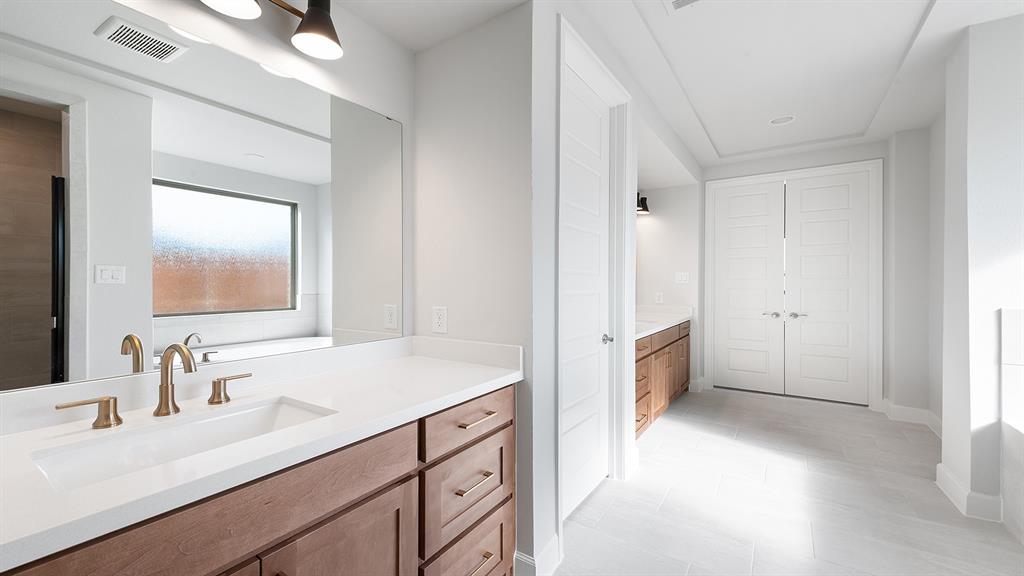 A large front porch opens into a grand two-story entryway that boasts a curved staircase. A private guest suite is located off the entrance and features a private hallway to the one-car garage. Adjacent to the guest suite is the formal dining room. As you walk past the stairs which feature a bonus storage space, you enter the grand family room which boasts tall ceilings, a fireplace, and wall of windows. French doors lead into the home office right off the living space. An island with built-in seating, walk-in pantry, and butler's pantry that leads into the dining room completes the kitchen. The morning area is embraced by two walls of windows and allows access to the covered backyard patio. The primary bedroom boasts a tray ceiling and wall of windows. French doors lead into the primary bathroom which boasts dual vanities, a garden tub, glass enclosed shower, and large walk-in closet. Upstairs you are greeted by a view to the first floor. The oversized game room is connected to the two secondary bedrooms that feature a Hollywood bathroom. The two-car garage is located in the hallway that leads to the kitchen.