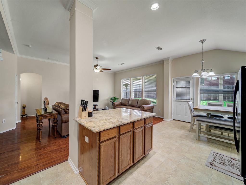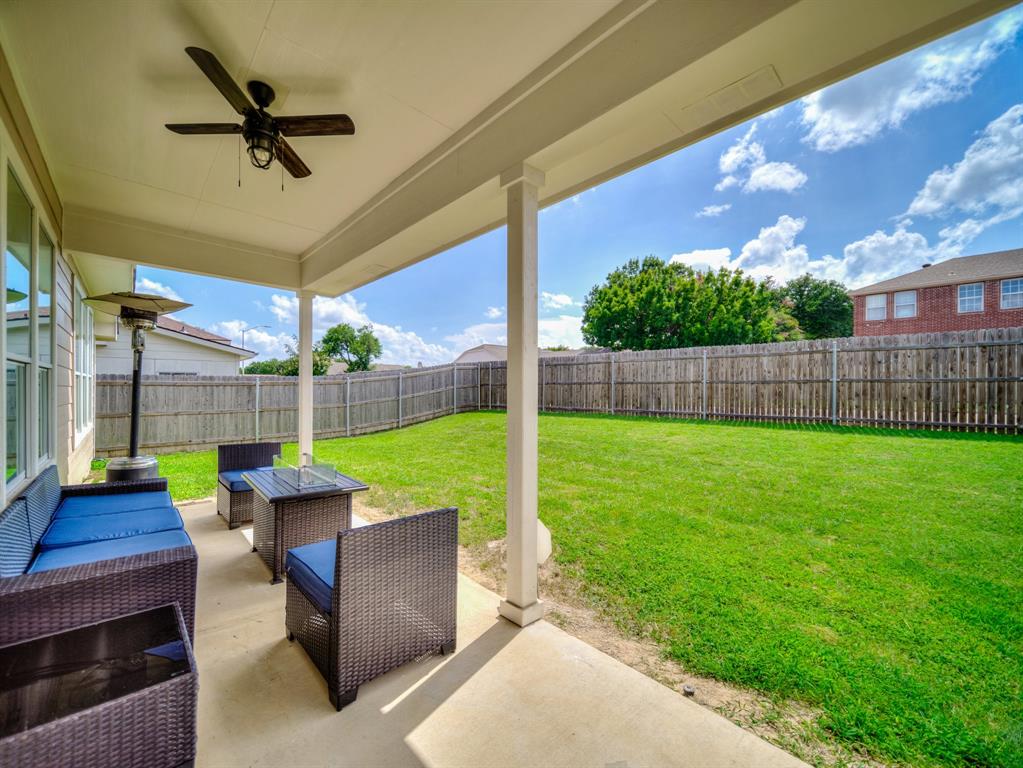 The kitchen shines with elegant granite countertops, perfect for cooking and entertaining. A versatile flex room offers endless possibilities — use it as an office, playroom, or additional living space. Step out back to relax or entertain under the covered patio, ideal for enjoying the outdoors year-round.