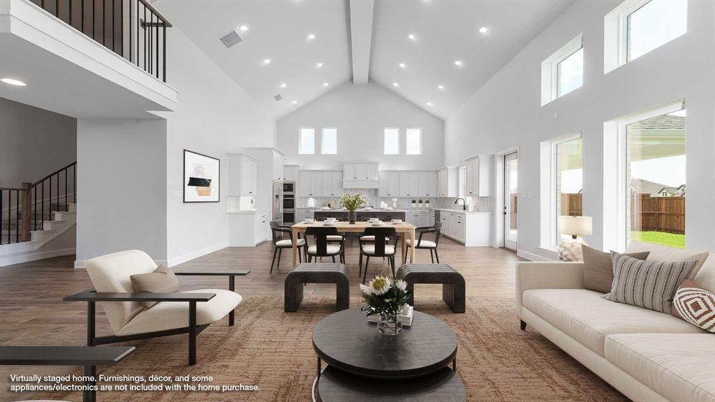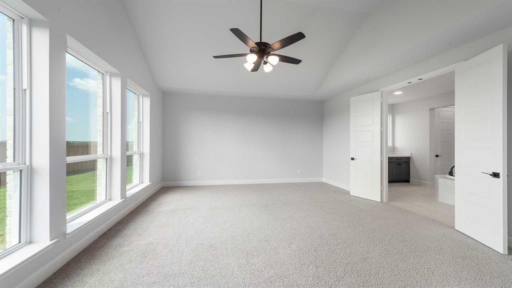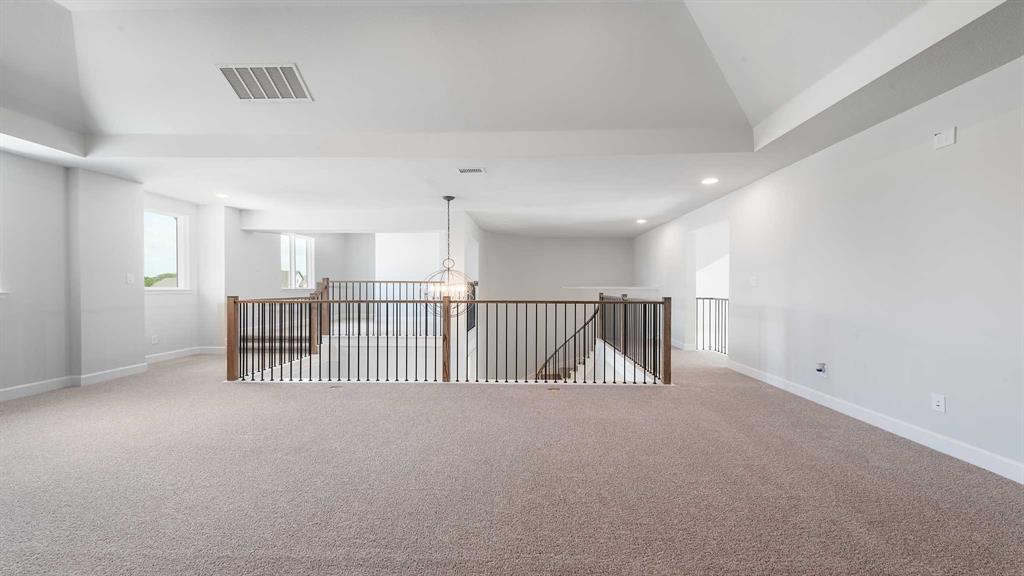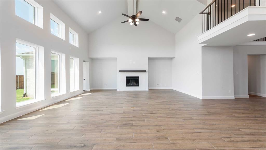 Step off the front porch into the grand entryway boasting a curved staircase and a 19-foot ceiling. The formal dining room is at the entrance of the home. Adjacent to the dining room is the home office which includes double doors for additional privacy. A secluded guest suite down the hallway with a full bathroom allows for guests to have their own space. The two-story family room boasts a wall of windows and warming fireplace. The backyard covered patio is just off the morning area. The kitchen features an island with built-in seating, ample counter space, and an oversized walk-in pantry with plenty of storage. The primary bedroom offers ample natural light from its wall of windows. Double doors lead into the bathroom which features a garden tub, glass enclosed shower, dual vanities, two walk-in closets, and dual access to the utility room for conveniency. Up the stairs you are greeted by an overlooking view of the first floor. The large game room provides space for entertainment along with the adjoining media room and loft area. Two secondary bedrooms with full bathrooms and walk-in closets complete the second level. A three-car split garage completes the home.