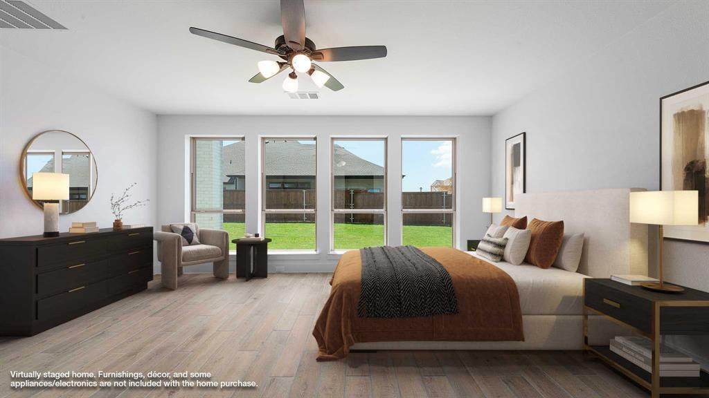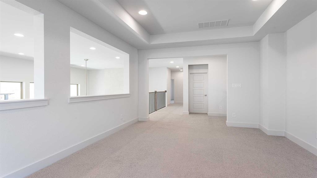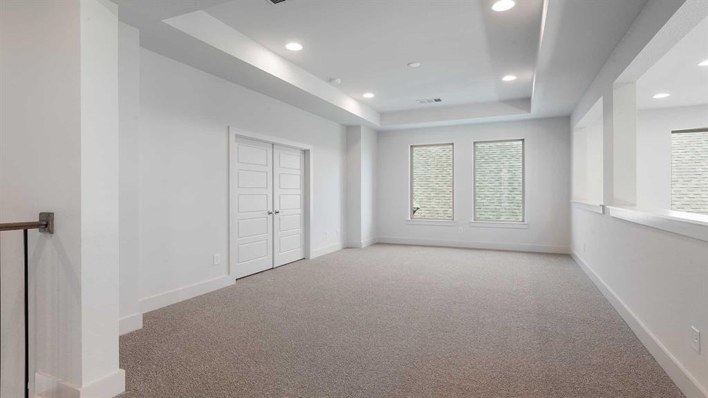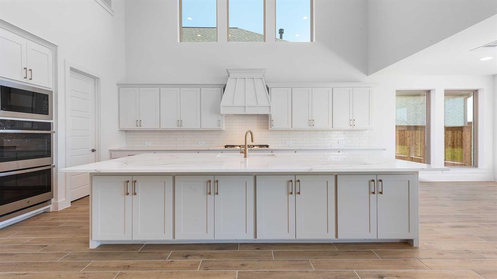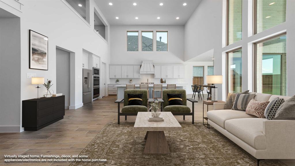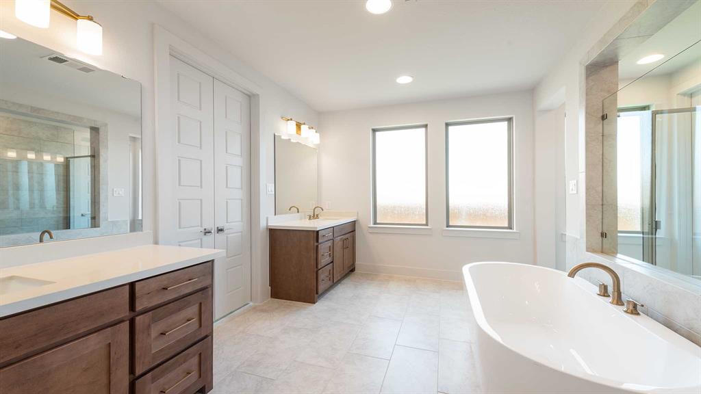 Two-story entry framed by home office with a French door entry. Formal dining room just off the family room and kitchen. Generous two-story family room with 19-foot ceilings, a fireplace and a wall of windows. Island kitchen features built-in seating space, a two-story ceiling and a large walk-in pantry. Morning area just off the kitchen with three large windows. Secluded primary suite offers a large bedroom with a wall of windows, French doors that open to the primary bathroom, dual vanities, freestanding tub, separate glass enclosed shower and two walk-in closets with private access to the utility room. Guest suite with full bathroom and a walk-in closet on first floor. Second floor hosts a large game room, Media room with a French door entry, additional bedrooms with walk-in closets, a guest suite with full bathroom, a Hollywood bathroom and half bathroom. Covered backyard patio. Mud room just off the two-car garage.