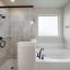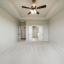 This open concept enhances the spacious feeling and makes it easy to have conversations no matter where you are—perfect for entertaining! The kitchen features a massive center island that doubles your counter space and provides comfortable seating for 4 people at the breakfast bar. The owner's suite is nestled in the back of the home under a tray ceiling that accentuates the roominess. The owner's bathroom offers both a soaking tub and step-in shower, along with dual vanities and a private water closet. Then your suite is completed with an expansive walk-in closet with wooden shelves and racks ready and waiting for your wardrobe. The 3 secondary bedrooms are clustered in a suite-like space on the other side of the home’s layout. Two of them offer a walk-in closet, while the third one gives just a little bit more floor space. The 3 bedrooms share the home’s two full baths.