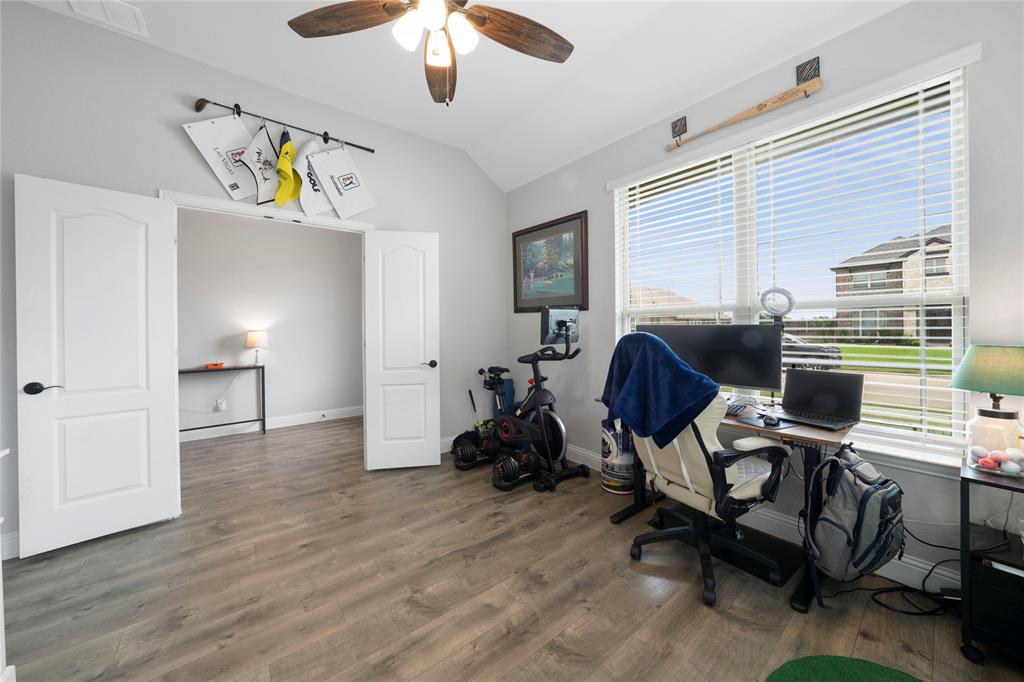 The seller will pay off solar panels at closing. . Stunning single-story home nestled in the desirable Garden Valley West community—with no HOA! From the moment you arrive, you’ll fall in love with the light and bright open layout, designed for comfortable living and effortless entertaining. At the front of the home, a private office with French doors provides the perfect space for remote work or a quiet study. The heart of the home is the beautifully upgraded kitchen featuring granite countertops, a spacious center island, a butler’s pantry, and upgraded double ovens. It flows seamlessly into the large dining area and spacious living room, where a cozy fireplace and expansive windows create a warm, welcoming atmosphere.Tucked away for privacy, the luxurious primary suite offers a tranquil retreat with an ensuite bathroom that boasts dual vanities and a large walk-in shower. With four bedrooms plus a dedicated office, this layout is ideal for families, guests, or multigenerational living.