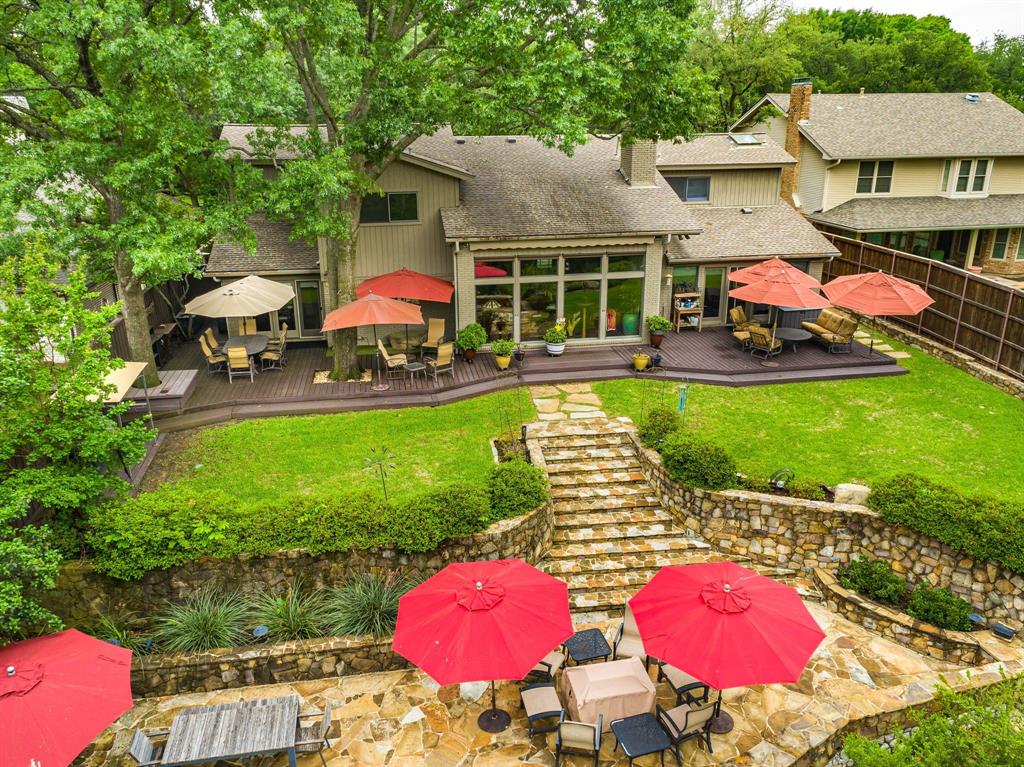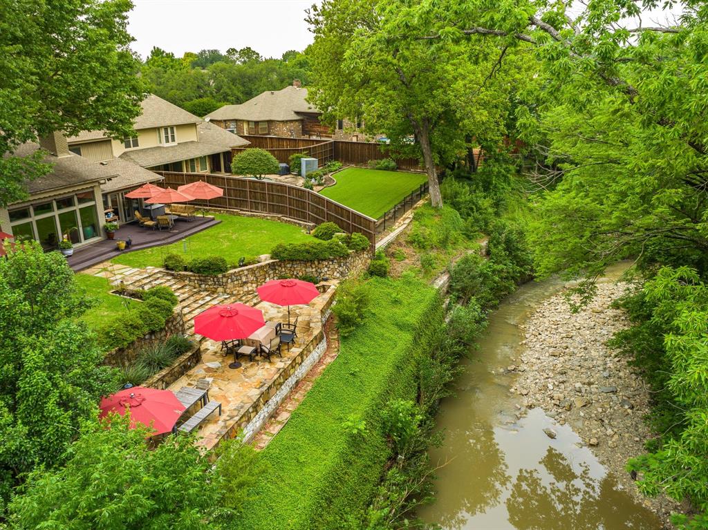 Welcome to 2718 West Prairie Creek, situated on an AMAZING CREEK LOT! This stunning home offers a rare combination of timeless charm, thoughtful upgrades, & outdoor beauty.This spacious 4-bedroom, 3.5-bath home is loaded with high-quality updates inside and out, beginning with the impressive, low-maintenance turfed front yard, stamped concrete driveway, and beautiful landscaping, accented with decorative boulders. Step through the elegant entry into a formal dining & living room featuring a wall of windows overlooking the serene backyard. The living room features recessed slate flooring surrounded by hardwoods, recessed lighting, & a gorgeous fireplace wall with custom tile work & oak mantel. The updated kitchen is a chef’s dream with SS appliances, under-cabinet lighting & large pull-out drawers. Just off of the kitchen is the family room. This room has a custom-built wood entertainment center, wood flooring, crown molding, recessed lighting, & wood shutters.The vaulted primary suite offers a French door to the outside patio area, hardwood floors, generous closet space, & a refreshed ensuite bath with frameless shower door, & updated vanity mirrors. Upstairs, there are 3 beds & 2 baths.1 bed has an ensuite bath perfect for guests. Step outside to your own private oasis on a lush creek lot, complete with an irrigation system, motion-sensor security lights, rain gutters, & on the south side of the property, a custom-built cedar fence. Enjoy entertaining on the expansive 1,500 sqft Trex deck, with a custom shade awning, or walk down to the Oklahoma flagstone patio. Reinforced creek retaining wall, providing added erosion protection. Major system upgrades include: electrical panel, AC compressor, & 2, 50-gallon water heaters. The garage features a full storage wall and, there is added plywood flooring in the attic for extra storage. Zoned to PISD & close to 75, this home is ONE OF A KIND!