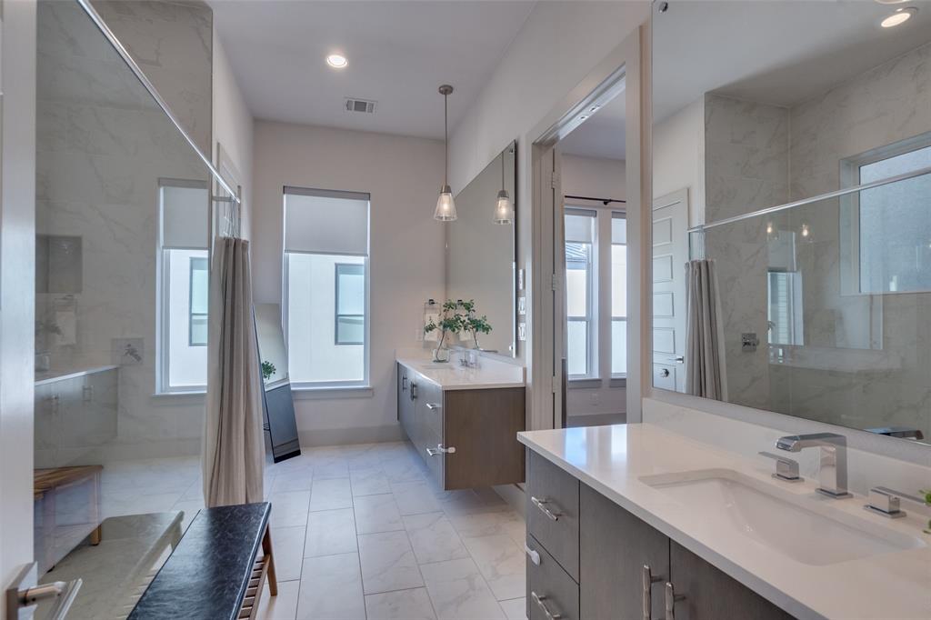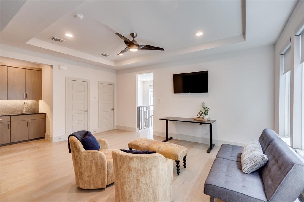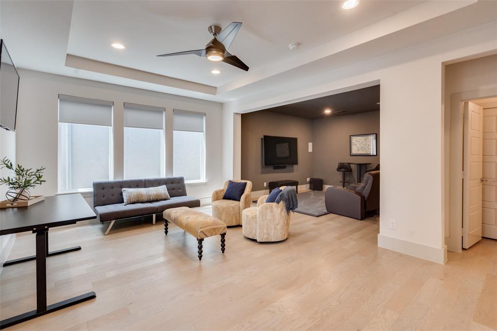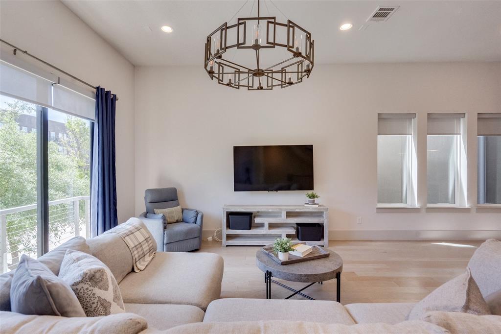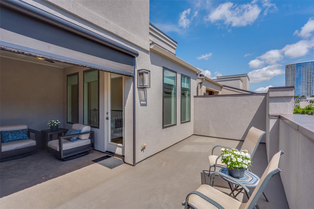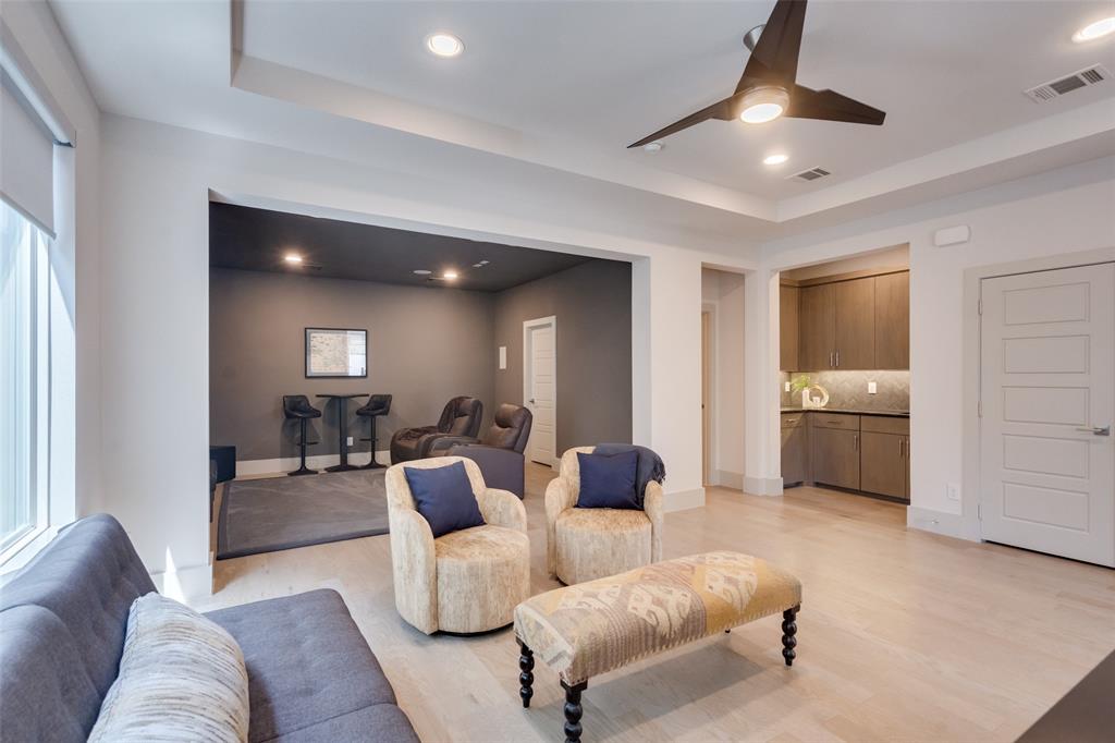 Modern luxury meets urban convenience in the heart of Legacy West! Discover sophisticated living in this stunning three-story Villa by Britton Homes, perfectly situated in Plano’s vibrant and highly coveted Legacy West community. Designed for modern lifestyles, this home blends upscale finishes with functional elegance across every level. Sunlight pours through soaring windows in the main living space, highlighting rich wood flooring and sleek architectural lines. Upgrade motorized shades offer effortless control over light and privacy, while sliding glass doors extend the living area onto private patios and covered balconies. The open-concept kitchen is a chef’s dream, boasting GE Monogram stainless steel appliances, with a 6-burner gas cooktop, contemporary finishes, and an oversized island with a breakfast bar—ideal for casual dining or entertaining. Escape to the serene and private primary suite, where spa-inspired details elevate everyday living. Enjoy floating vanities, backlit mirrors, luxe tilework, and a spacious glass-enclosed shower in the indulgent en-suite bath. The upper level is an entertainer’s dream, offering a game room, media room, wet bar, and half bath—all opening onto an expansive 492-square-foot partially covered rooftop deck. Enjoy panoramic views, a built-in gas fireplace with colorful fire glass, and a patio surround sound system—perfect for relaxing or hosting unforgettable evenings under the stars. The home is also pre-wired with hidden cables and TV mounts in multiple rooms for seamless tech integration. All this, just minutes away from world-class shopping, dining, and entertainment, plus convenient access to Hwy 121, the North Dallas Tollway, and major corporate campuses, which include Toyota, Liberty Mutual, J.P. Morgan Chase and Frito-Lay, to mention a few. This is more than a home—it’s a lifestyle.
