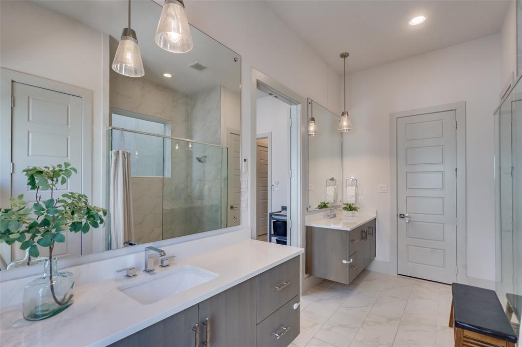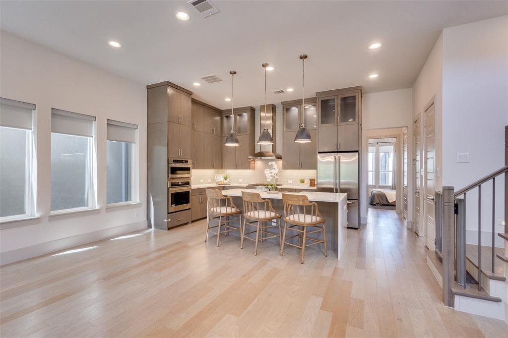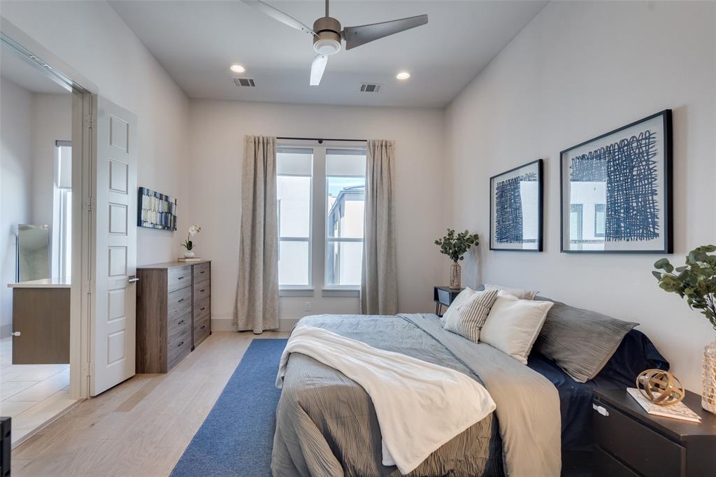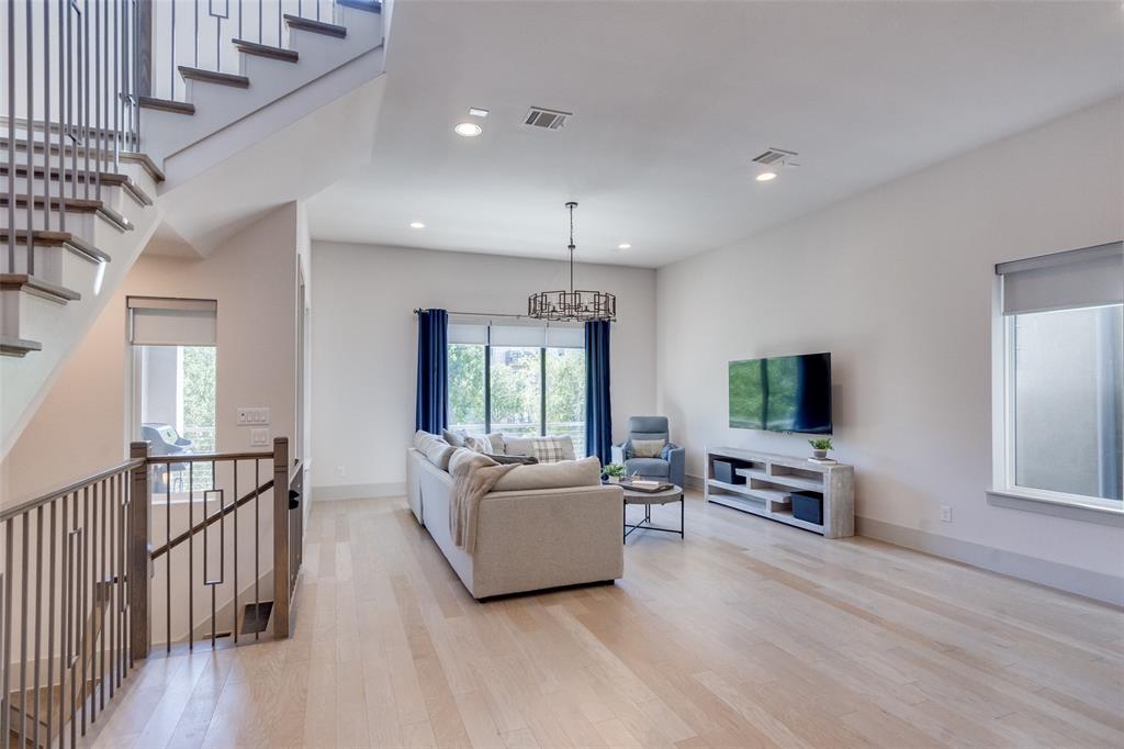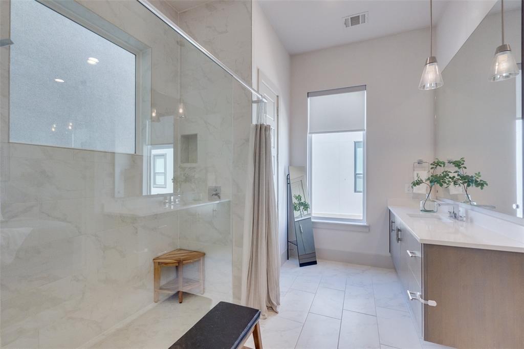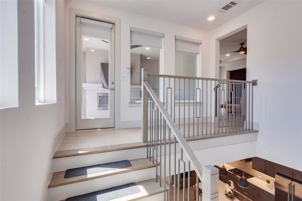 Modern luxury meets urban convenience in the heart of Legacy West! Discover sophisticated living in this stunning three-story Villa by Britton Homes, perfectly situated in Plano’s vibrant and highly coveted Legacy West community. Designed for modern lifestyles, this home blends upscale finishes with functional elegance across every level. Sunlight pours through soaring windows in the main living space, highlighting rich wood flooring and sleek architectural lines. Upgrade motorized shades offer effortless control over light and privacy, while sliding glass doors extend the living area onto private patios and covered balconies. The open-concept kitchen is a chef’s dream, boasting GE Monogram stainless steel appliances, with a 6-burner gas cooktop, contemporary finishes, and an oversized island with a breakfast bar—ideal for casual dining or entertaining. Escape to the serene and private primary suite, where spa-inspired details elevate everyday living. Enjoy floating vanities, backlit mirrors, luxe tilework, and a spacious glass-enclosed shower in the indulgent en-suite bath. The upper level is an entertainer’s dream, offering a game room, media room, wet bar, and half bath—all opening onto an expansive 492-square-foot partially covered rooftop deck. Enjoy panoramic views, a built-in gas fireplace with colorful fire glass, and a patio surround sound system—perfect for relaxing or hosting unforgettable evenings under the stars. The home is also pre-wired with hidden cables and TV mounts in multiple rooms for seamless tech integration. All this, just minutes away from world-class shopping, dining, and entertainment, plus convenient access to Hwy 121, the North Dallas Tollway, and major corporate campuses, which include Toyota, Liberty Mutual, J.P. Morgan Chase and Frito-Lay, to mention a few. This is more than a home—it’s a lifestyle.