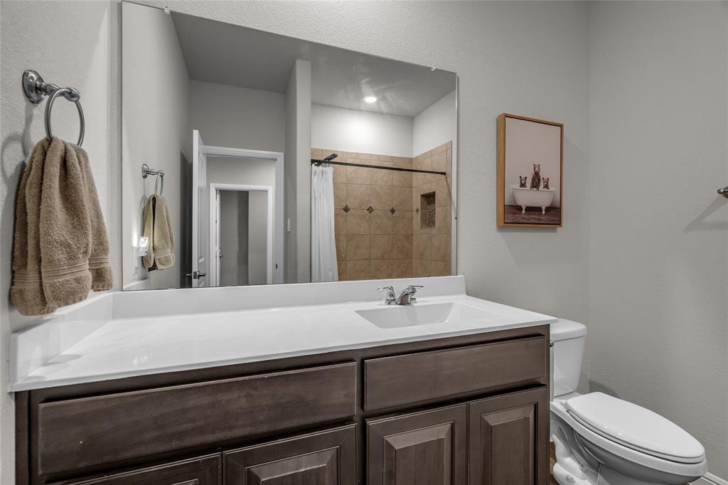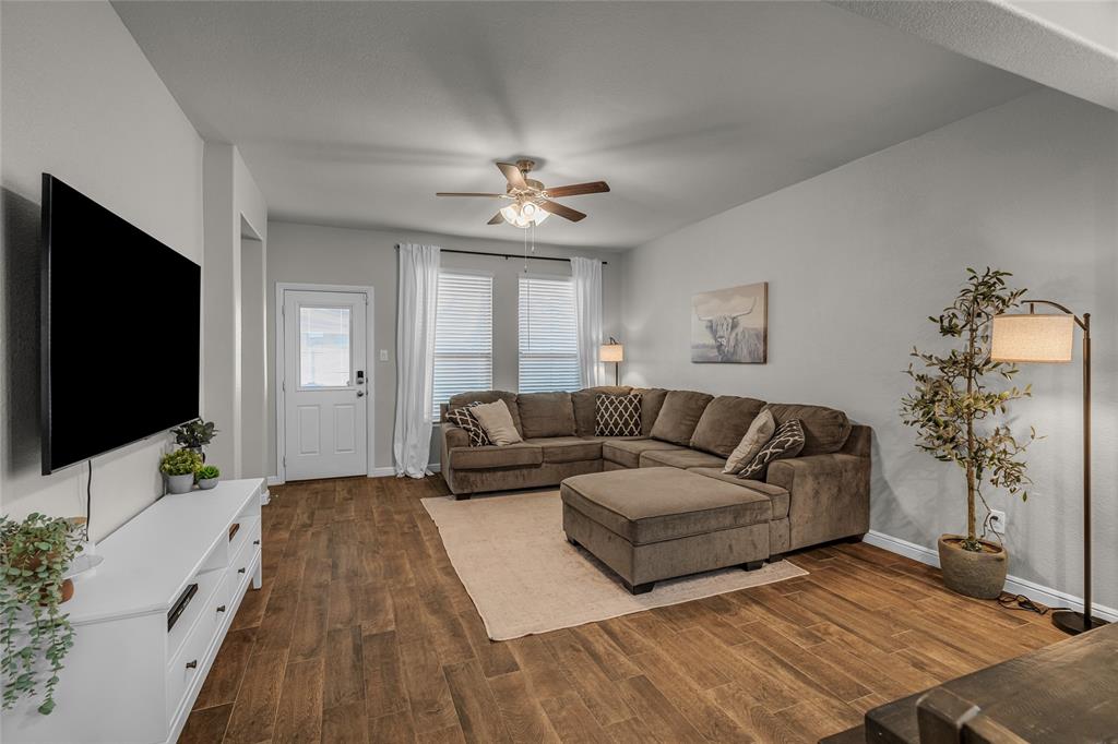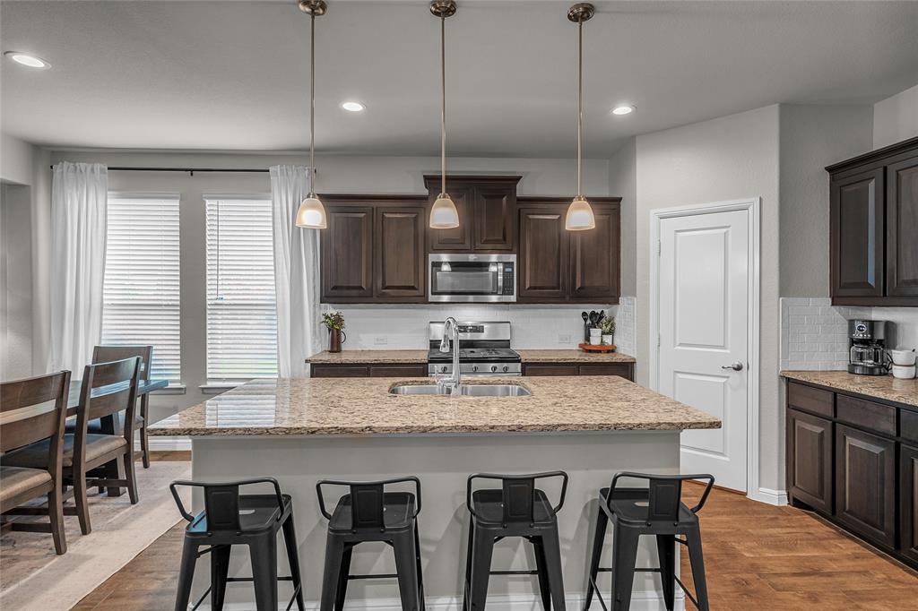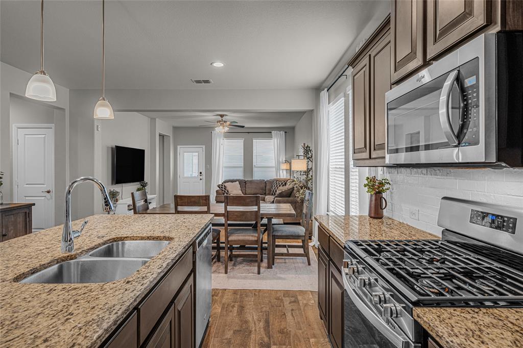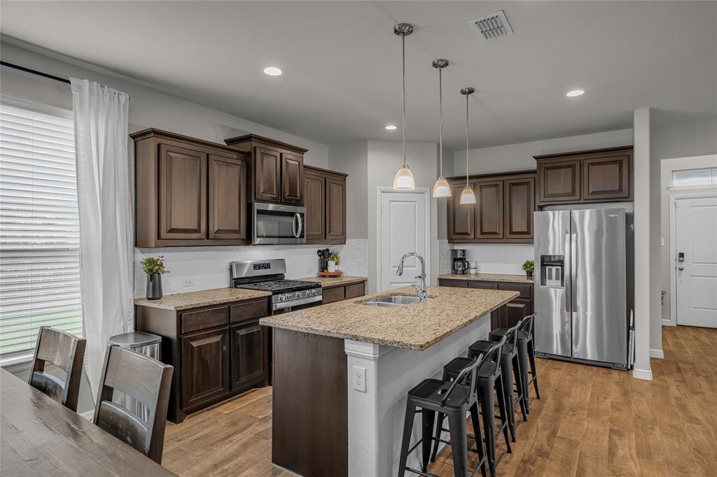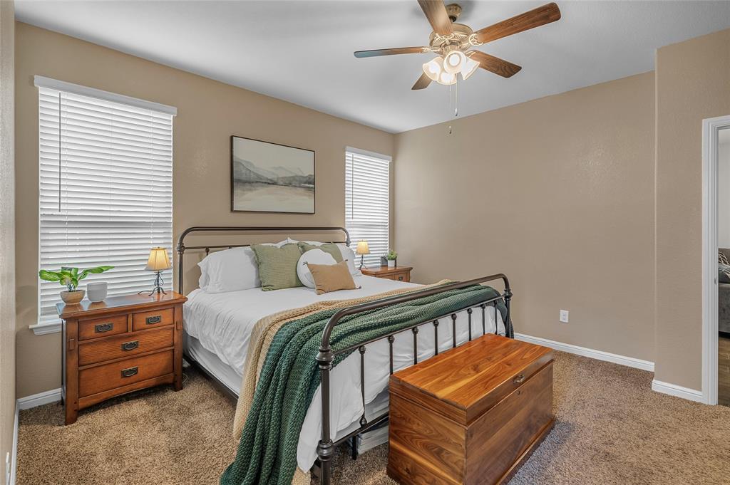 Welcome to your dream home—where space, style, and comfort come together. This rare gem is one of the largest floorplans in the neighborhood, offering room for everyone and everything. With three bedrooms plus a dedicated office on the main floor, and a private fourth bedroom and third full bath upstairs, the layout is as flexible as your lifestyle. Whether you're working from home, hosting guests, or creating a multi-generational setup, this home adapts with ease. The heart of the home is the stunning kitchen—granite countertops, gas range, oversized island, and storage galore. It flows beautifully into the open living space and out to the covered patio and large backyard. The primary suite is your peaceful retreat, tucked away at the back of the home for added privacy. Upstairs, a spacious game room or second living area offers endless possibilities—movie nights, game days, or a teen hangout. Even the garage impresses: epoxy flooring, extra storage room, and backyard access for your gear and tools. With a tankless water heater, oversized 3-car garage, and a quarter-acre lot, you’ll have space inside and out to truly live. And the location? Minutes from Eagle Mountain Lake, parks, great schools, and shopping. This isn’t just a house—it’s the next chapter you’ve been waiting for.