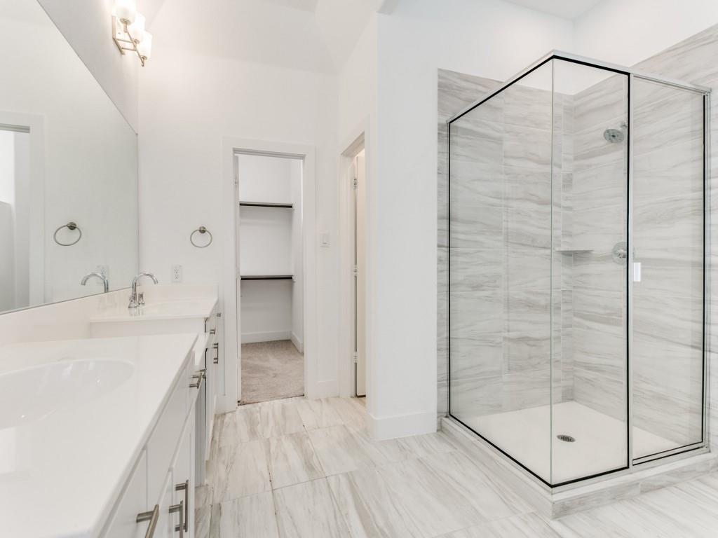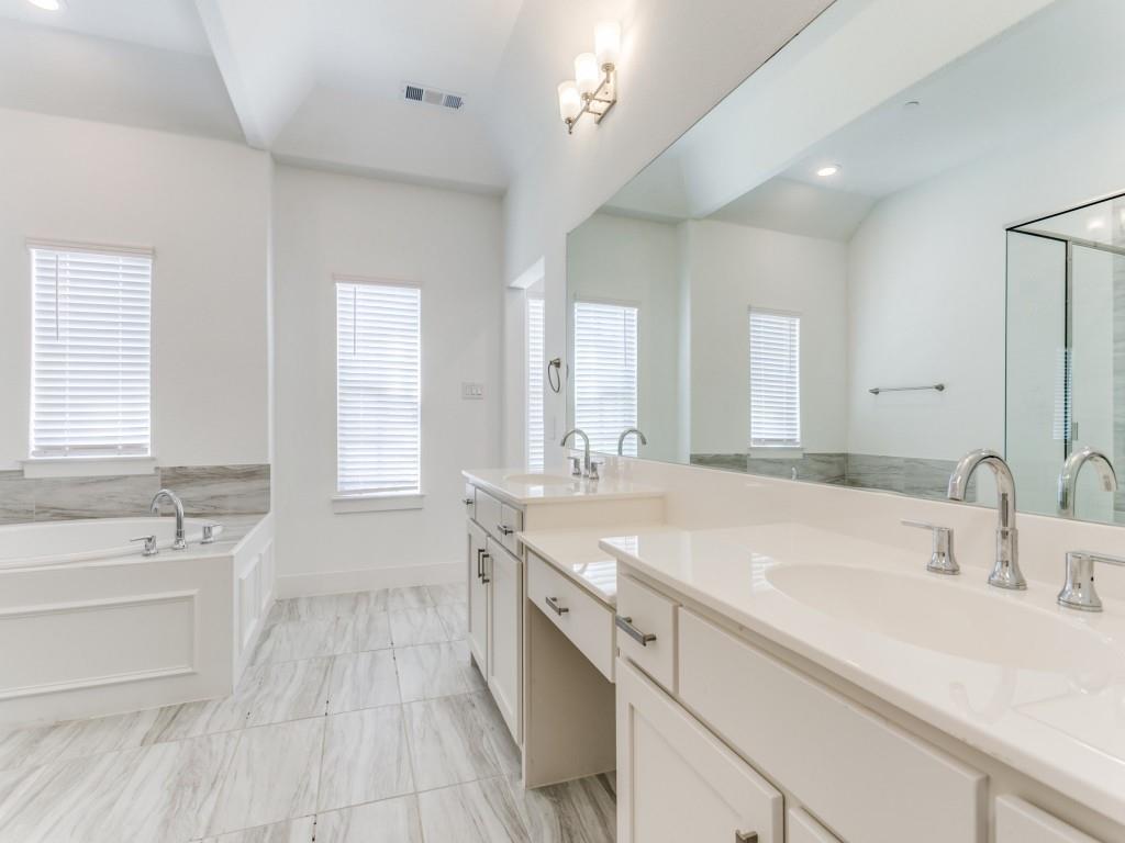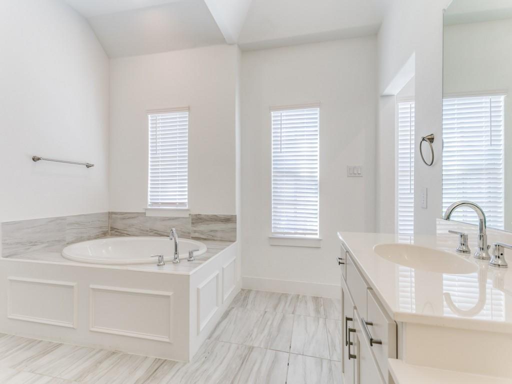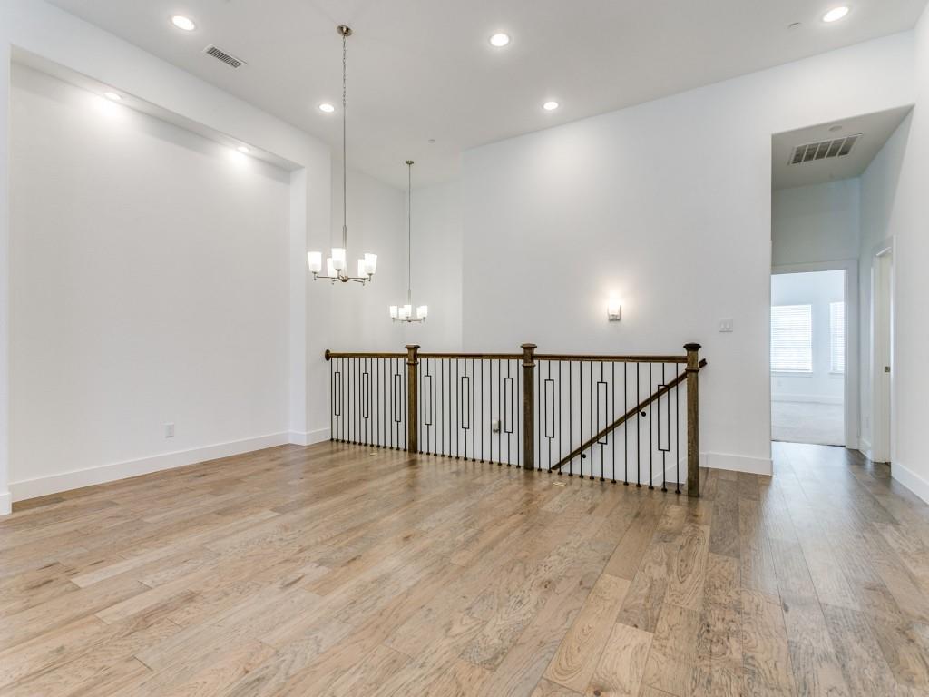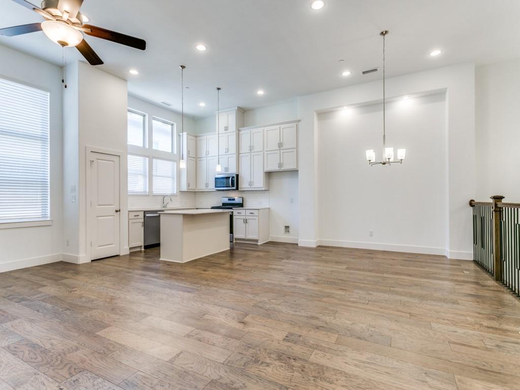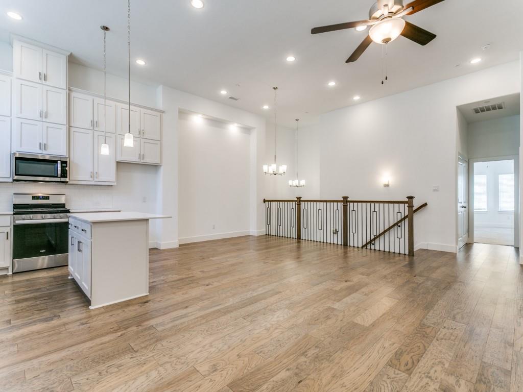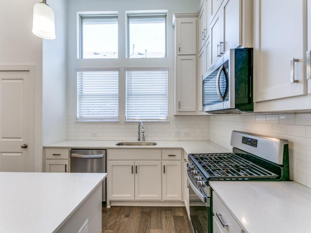 Almost New townhome in GATED community! Half-mile hike and bike trail + park area! Close proximity to Business 121, I-35, and DFW Airport. Engineered hardwood, farmhouse sink & EnergyStar features! First floor features soaring ceilings, laundry, 2 beds & 1 bath, garage & patio access. Spacious, open concept second floor living & kitchen area are great for entertaining. Kitchen features quartz countertops, stainless steel appliances, a pantry, island, and gas cooktop. Large master suite boasts a luxurious spa-like bathroom with a garden tub, walk-in shower, dual sinks, and large walk-in closet.