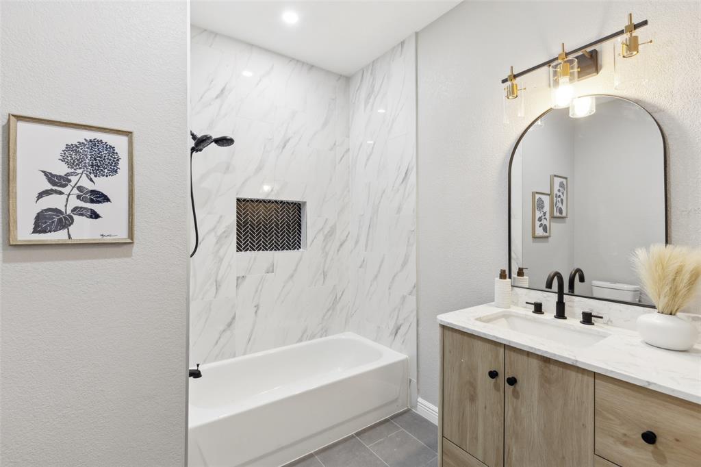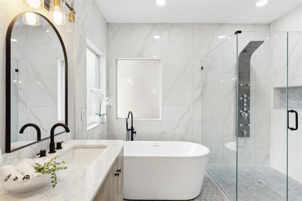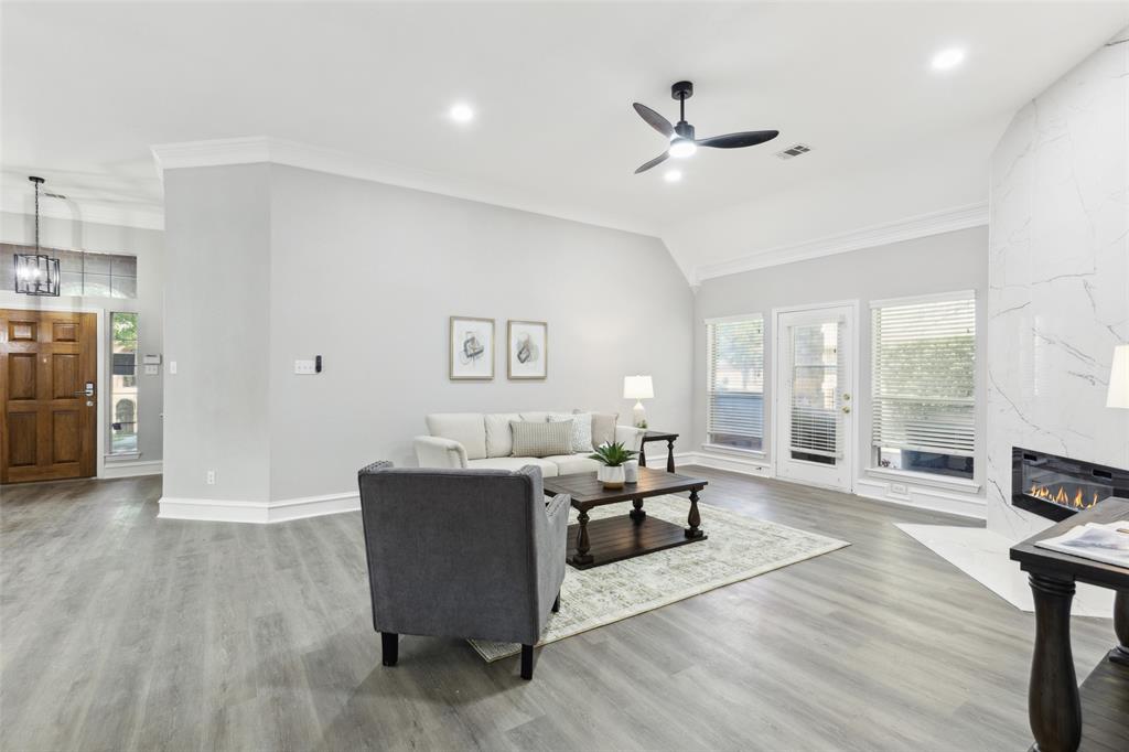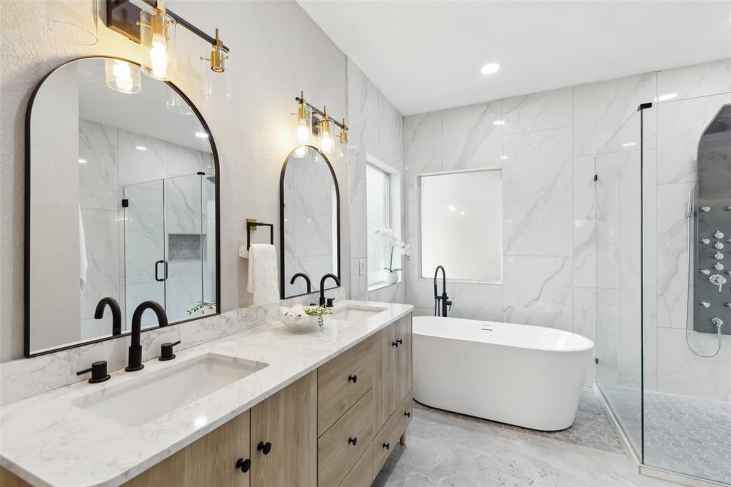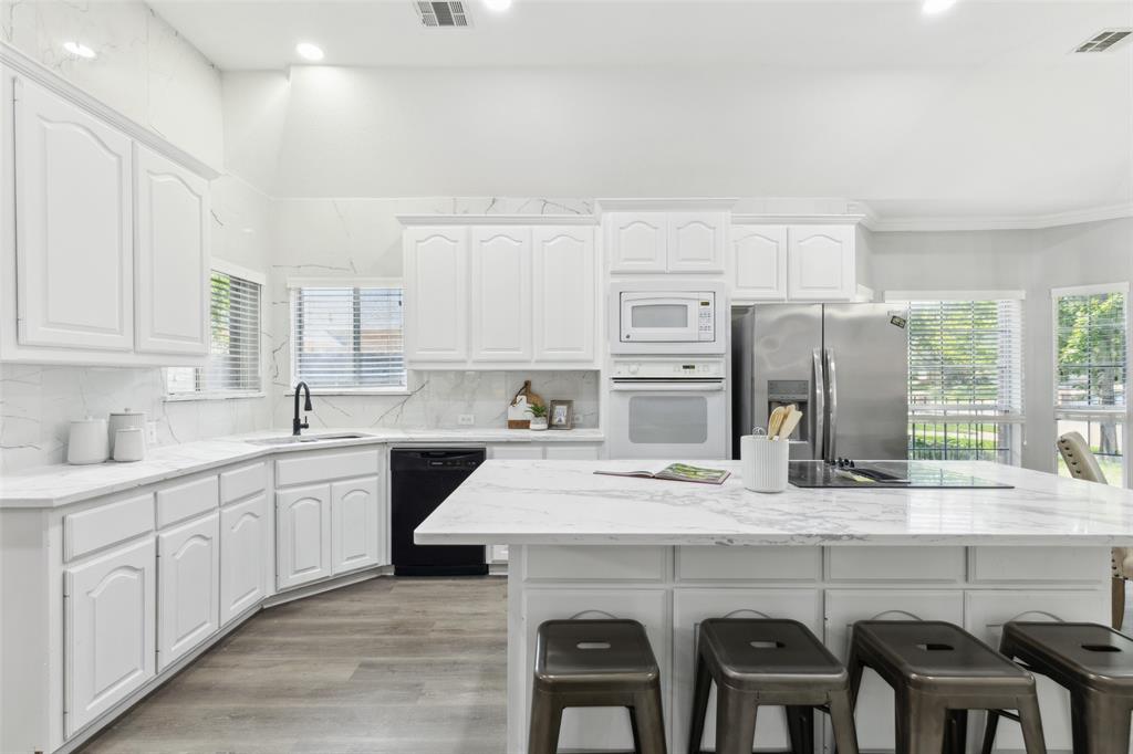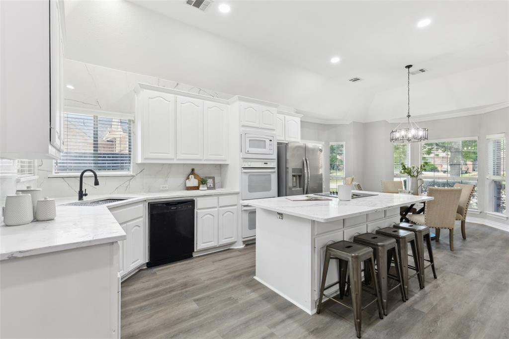 Beautifully Renovated Home in Prime North Richland Hills Location! Curb appeal abounds with this stunning 3-bedroom, 2-bath home, ideally situated in the heart of North Richland Hills. From the moment you arrive, you'll notice the attention to detail and thoughtful upgrades that make this home truly move-in ready. Enter to discover a bright and open floor plan featuring luxury vinyl plank flooring throughout and soaring ceilings that add a grand, airy feel to the spacious living room. The fully updated kitchen is a showstopper, boasting freshly painted cabinets, sleek quartz countertops, a stylish modern backsplash, updated lighting, and a clean, contemporary design. Both bathrooms have been tastefully renovated with updated vanities, elegant fixtures, fully tiled showers, frameless glass enclosures, and modern flooring—creating spa-like retreats. Recessed lighting and designer fixtures illuminate each room beautifully, complementing the fresh interior paint, updated trim and baseboards, and modern door hardware throughout the home. What makes this home truly special is the seamless blend of modern finishes and practical design. It's a complete renovation, offering today’s most desirable updates with the convenience of single-story living. Located close to major shopping areas and top-rated schools, you'll enjoy easy access to daily necessities while living in a beautifully updated space that feels like new. Don't miss this rare opportunity to own a turn-key home in one of the most sought-after neighborhoods in North Richland Hills! 3D tour available online.