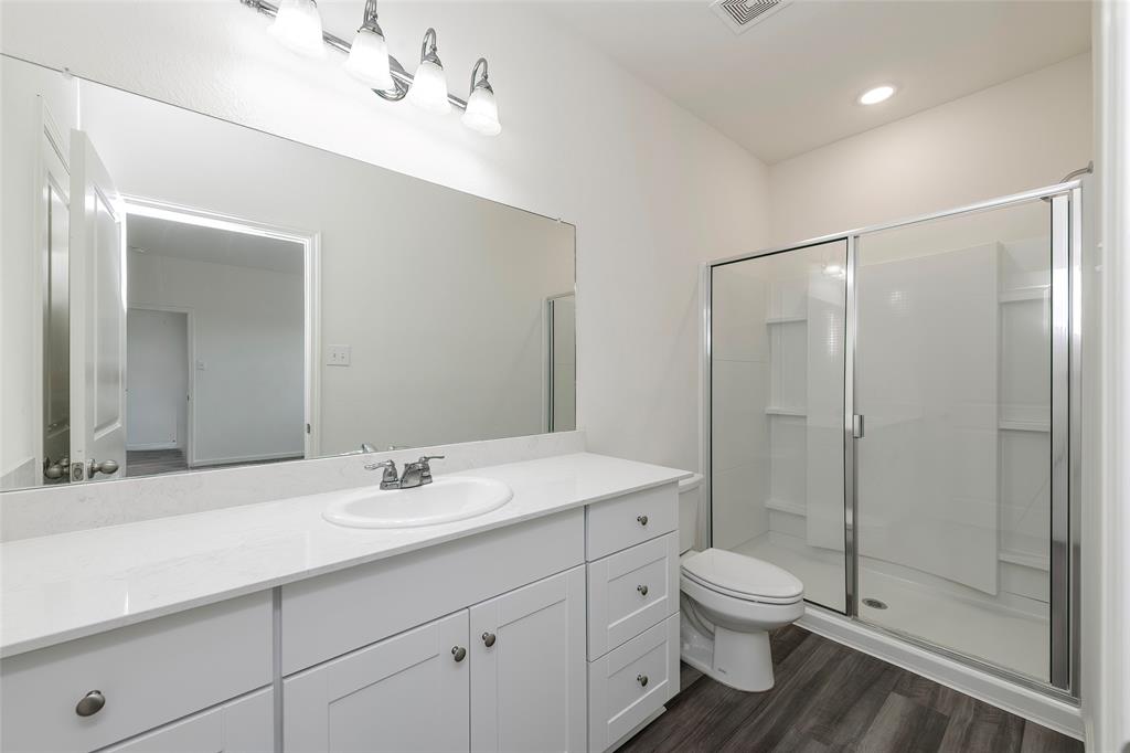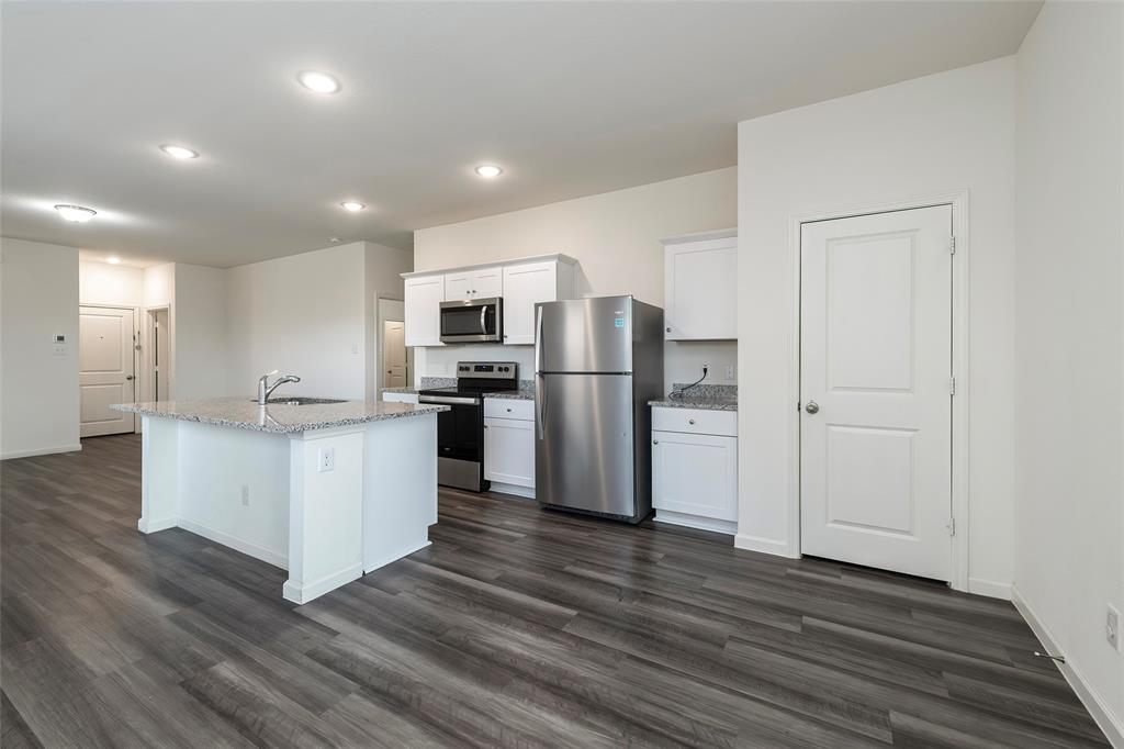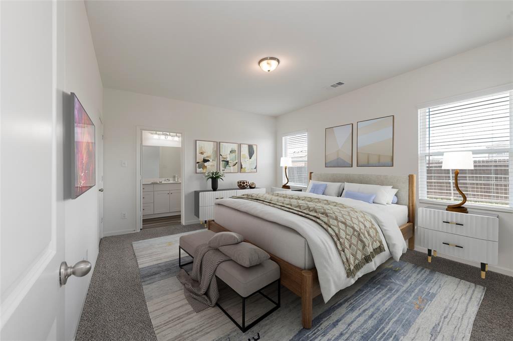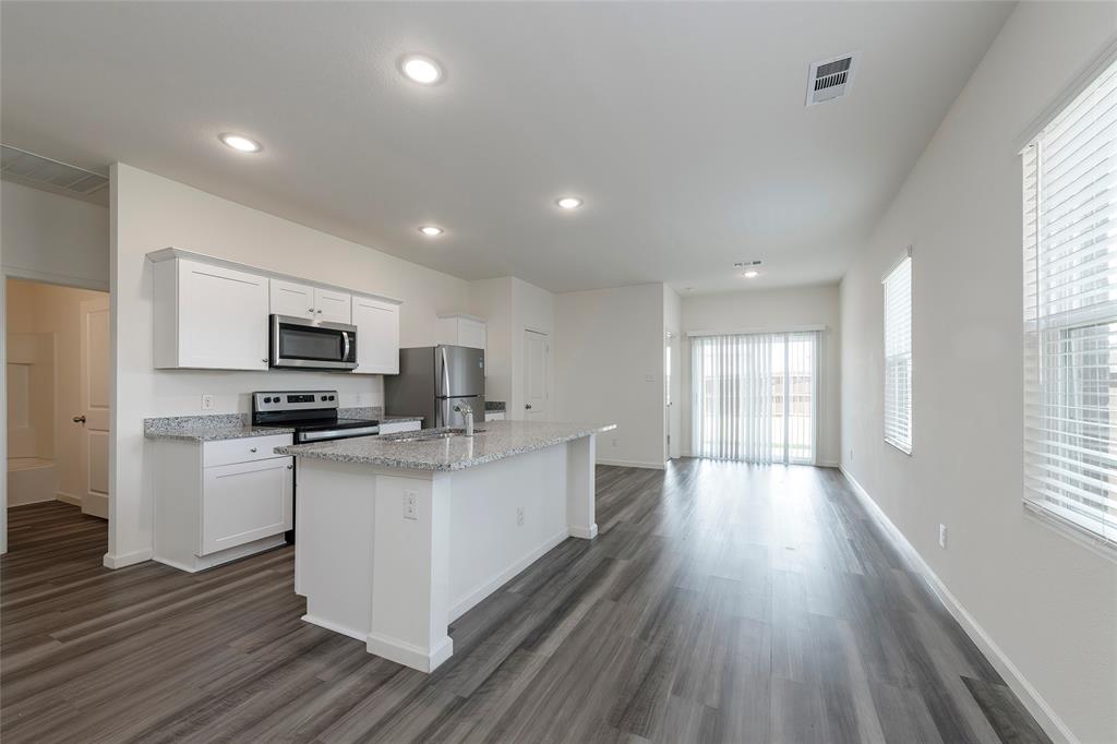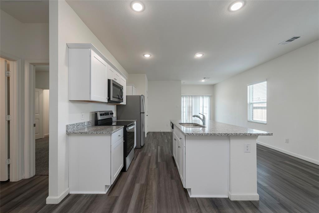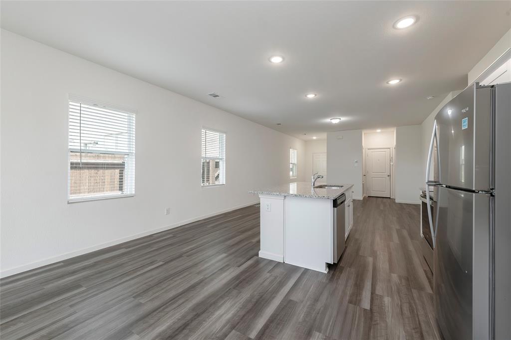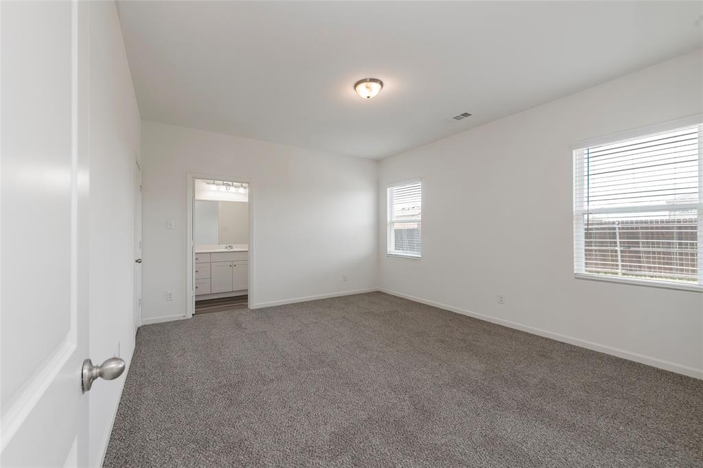 Beautiful one story house in Windmill Farm community with brand new carpet installed in all bedrooms and LVP in the common area. Back to green belt. Open Floor plan. Natural light throughout the house. Master suite with walk in shower and walk in closet. Spacious kitchen with stainless steel appliances, granite countertops, recessed lighting, cabinetry with ample storage space and an extended island to fulfill your cooking space needs. Enjoy outdoor family funs in the big fenced backyard. Convenient location, easy access to highway, close to shopping and restaurants. Refrigerator included. Community offers swimming pool and play structure, elementary school is located in the community [Please verify schools, room sizes, all information in listing prior to leasing] Min credit score 600. 1 month security deposit.