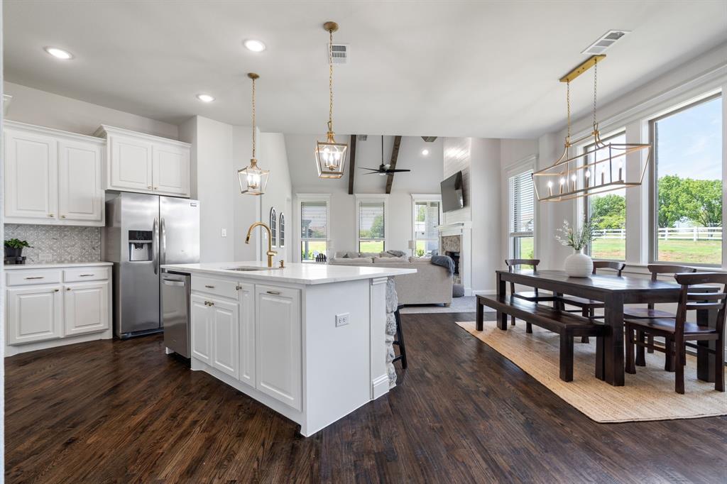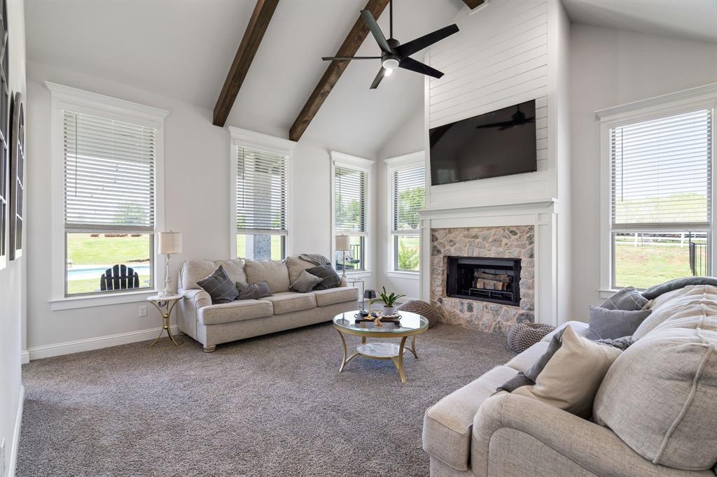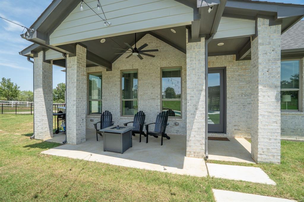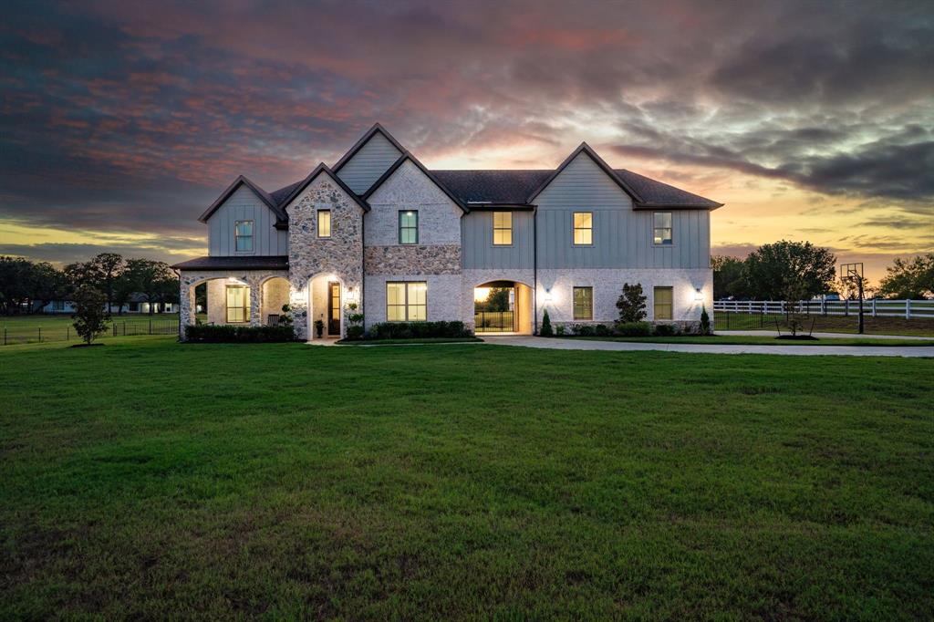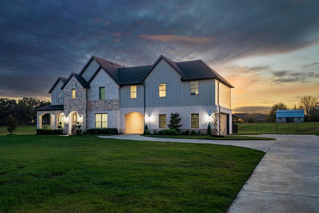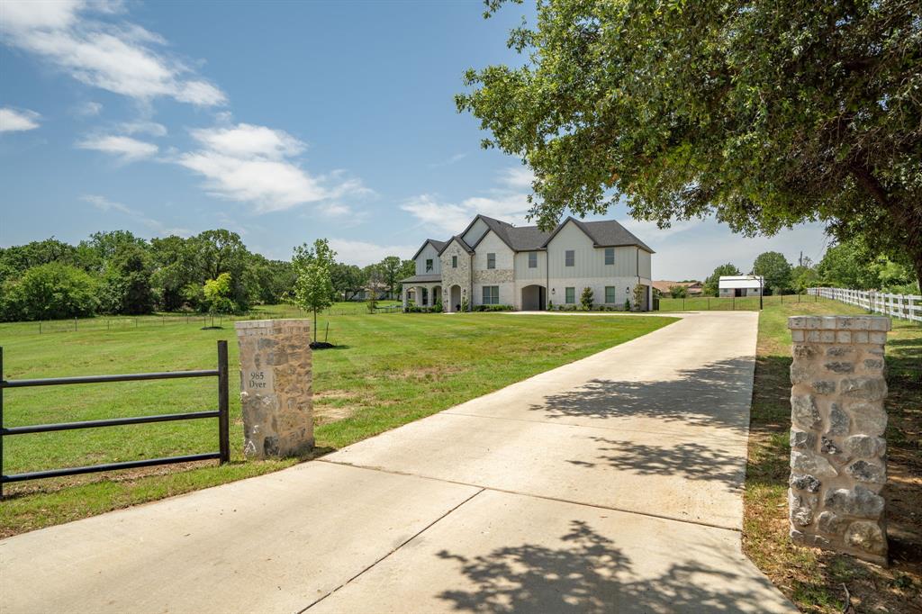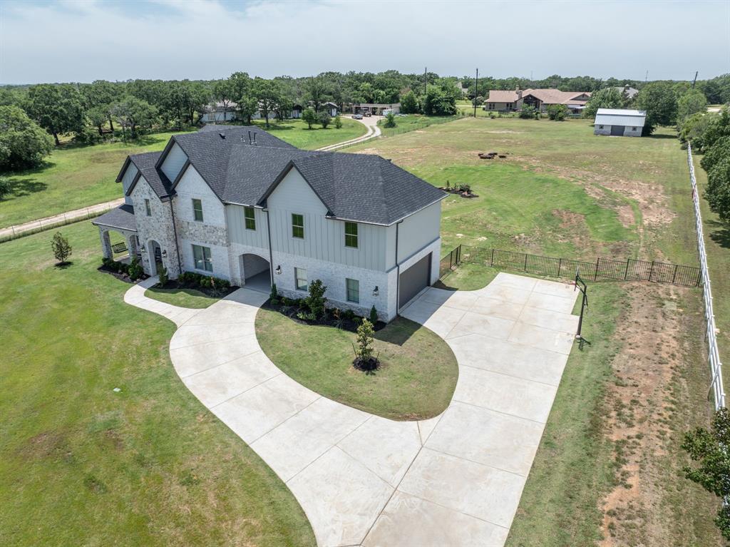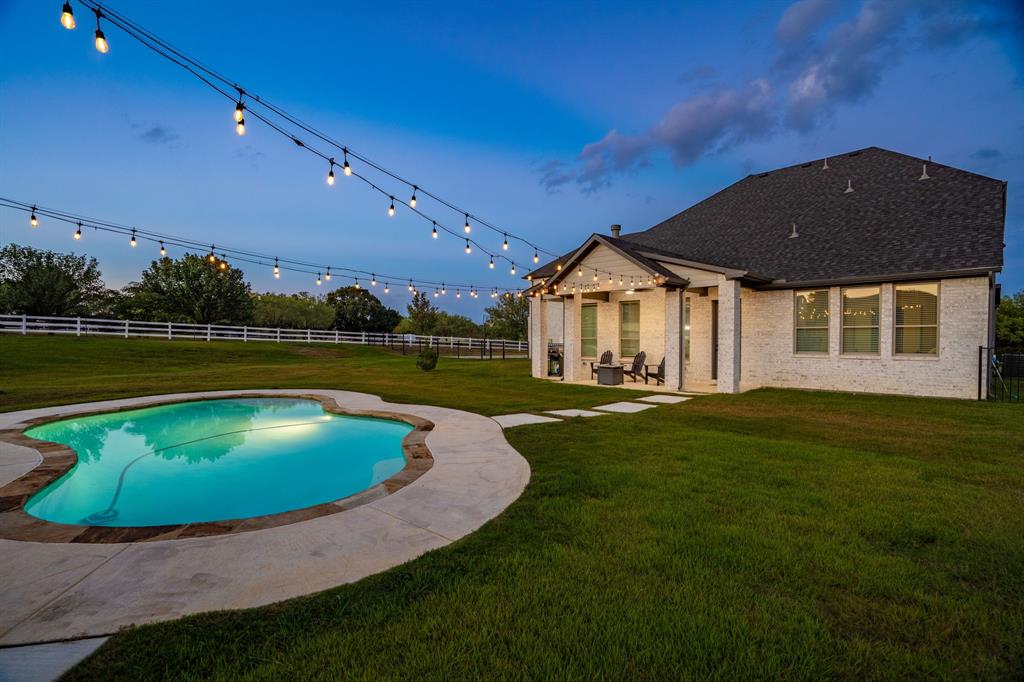 Welcome Home to Dyer Estates! This 5 bed, 4.5 bath estate on 2.4 acres offers the perfect blend of elegance and charm, all with no HOA restrictions! Spacious living areas, tall ceilings, oversized windows, and a cozy fireplace round out the main floor. The chef's kitchen is a culinary delight, featuring stainless steel appliances and custom cabinetry. A luxurious primary suite is a true sanctuary, boasting a spa-like bath with a soaking tub, dual vanities, and a separate shower. Additional highlights include beautiful hardwood floors, a dedicated home office, and a versatile bonus space perfect for fight night, game night, or overnight guests. Enjoy endless summer days by the pool, surrounded by expansive patio areas ideal for entertaining. This property features a sizeable barn, perfect for horses, events, or recreational vehicle and toy storage. Animals welcome! Zoned to Argyle School District, this peaceful blend of rural living and urban proximity is a must-see!