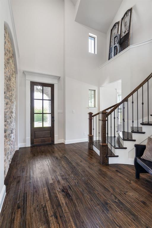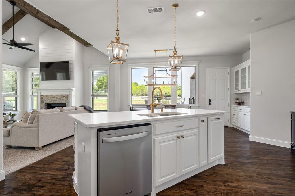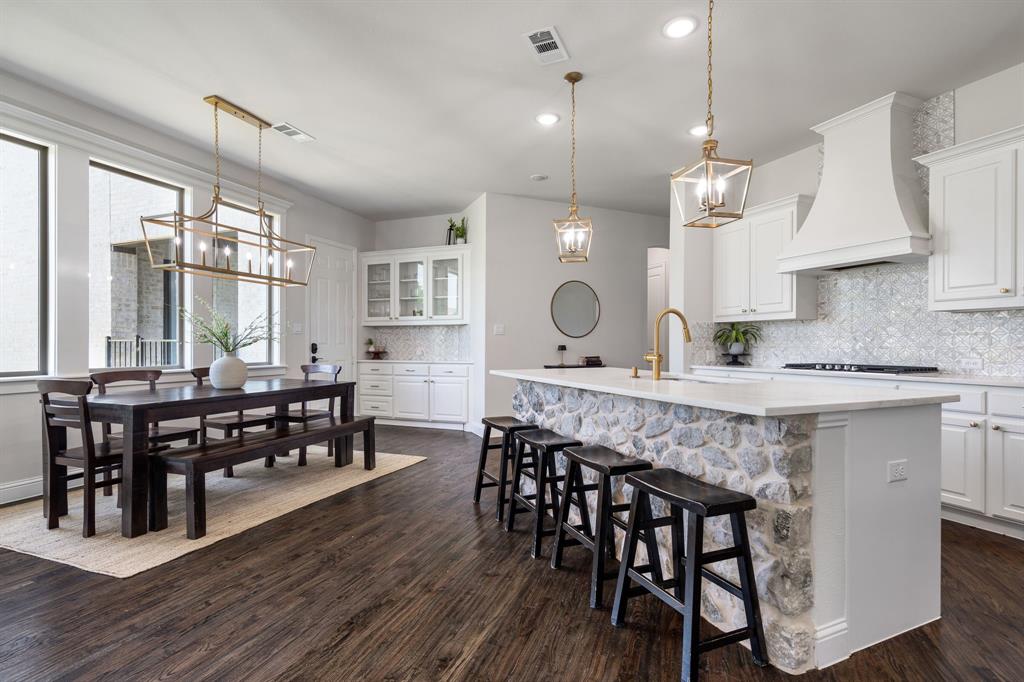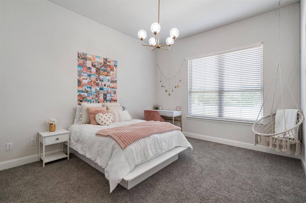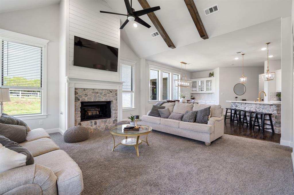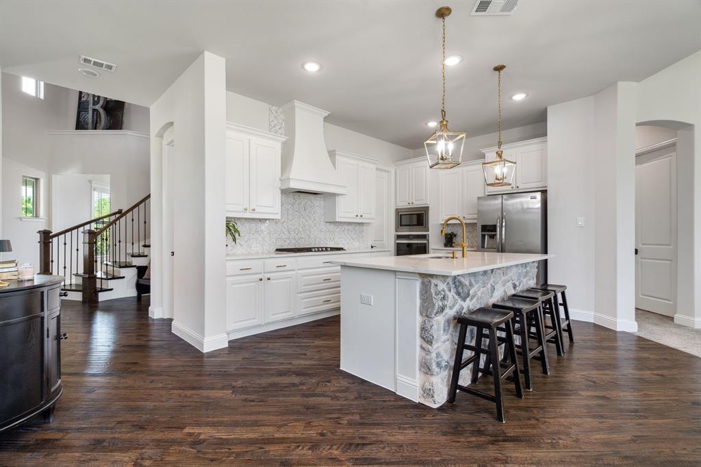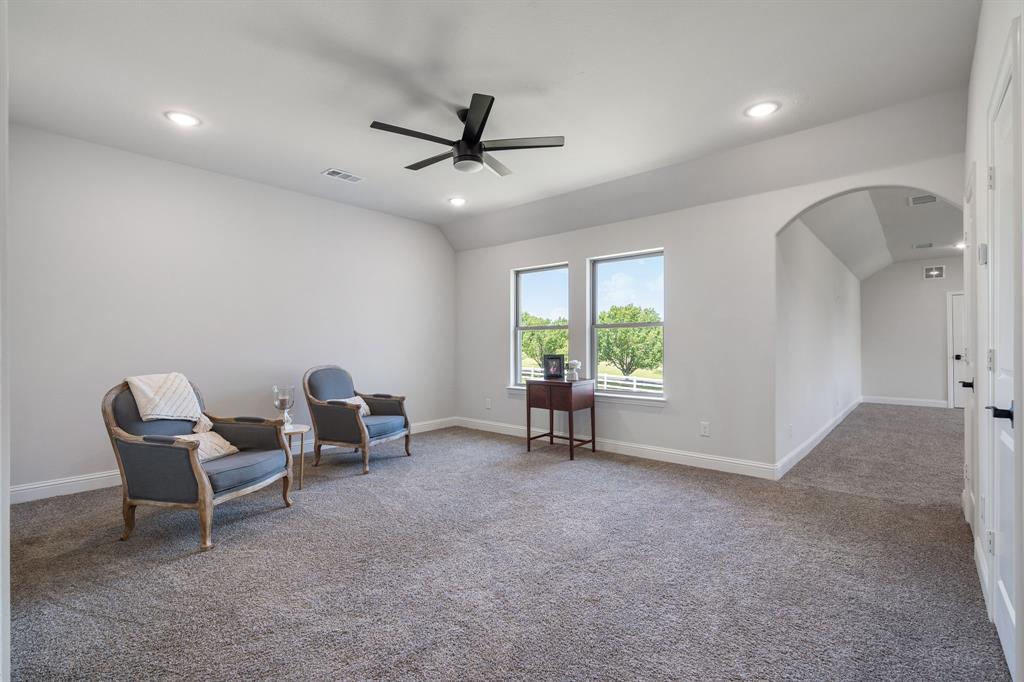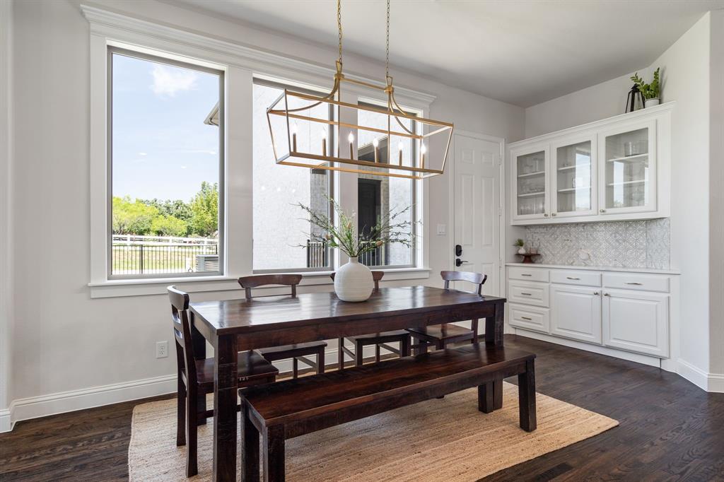 Welcome Home to Dyer Estates! This 5 bed, 4.5 bath estate on 2.4 acres offers the perfect blend of elegance and charm, all with no HOA restrictions! Spacious living areas, tall ceilings, oversized windows, and a cozy fireplace round out the main floor. The chef's kitchen is a culinary delight, featuring stainless steel appliances and custom cabinetry. A luxurious primary suite is a true sanctuary, boasting a spa-like bath with a soaking tub, dual vanities, and a separate shower. Additional highlights include beautiful hardwood floors, a dedicated home office, and a versatile bonus space perfect for fight night, game night, or overnight guests. Enjoy endless summer days by the pool, surrounded by expansive patio areas ideal for entertaining. This property features a sizeable barn, perfect for horses, events, or recreational vehicle and toy storage. Animals welcome! Zoned to Argyle School District, this peaceful blend of rural living and urban proximity is a must-see!