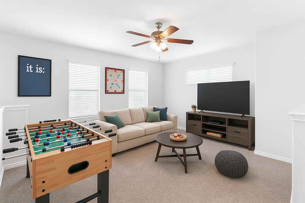 SELLER OFFERING $10K IN CLOSING COSTS WITH AN ACCEPTABLE OFFER!!! PLUS AN ADDITIONAL 1% OF THE LOAN AMOUNT CREDIT TOWARDS RATE OR COST WHEN USING OUR PREFERRED LENDER!!! MOVE IN READY 4 bed 2.5 bath home in the master planned community of Valencia on the Lake. Open and spacious floor plan with soaring high ceilings in the living that opens up from the kitchen with a nice sized curved island and dining that makes for a great entertaining space. Whole home has been freshly painted with newly added sod in the backyard. Primary bedroom downstairs with the game room, 3 bedrooms and full bath upstairs. So many amenities in the neighborhood with a community center, playground, dog park, two pools, tennis courts, sand volleyball, basketball, and hike and bike jogging trails along the shores of Lake Lewisville.