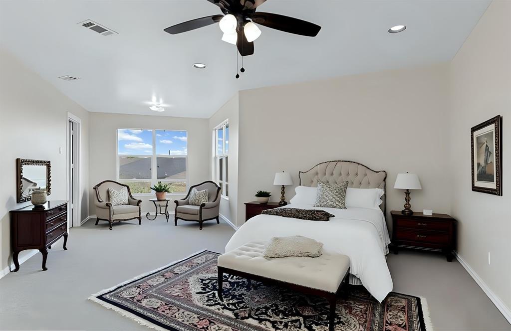 PRICE IMPROVEMENT!! SELLER'S WILL CONSIDER ALL REASONABLE OFFERS! This beautifully renovated home features fresh paint, new flooring, and plush new carpets. The spacious entry office opens to a vaulted living room, with an updated kitchen including new granite countertops, new appliances, and ample storage. Upstairs are generously sized private bedrooms, including a primary suite with a walk-in closet and sitting area, and a full ensuite bath. The secondary main bedroom also includes a full ensuite bath! The large backyard with a covered patio is perfect for entertaining. Recent updates include a new roof (2021) and sprinkler system. Enjoy community amenities like a swimming pool, trails, playground, and sidewalks in the desirable Twin Mills subdivison. Some photos are virtually staged.