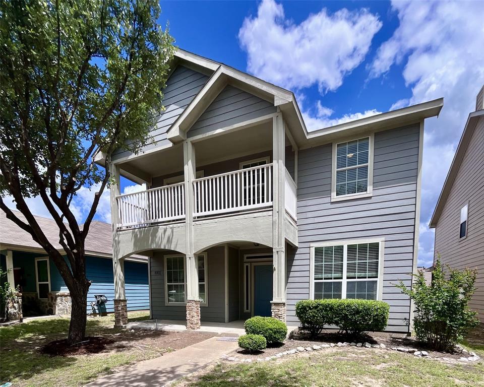 WELCOME TO THIS CHARMING COMMUNITY IN EAGLE MOUNTAIN-SAGINAW I.S.D.! This Cape Cod-style home features a functional floor plan with 3 bedrooms and 2.5 bathrooms. The primary bedroom is on the second level and has its own spacious, private balcony that overlooks the tree lined neighborhood. The additional 2 bedrooms are separated by a spacious bathroom. The kitchen offers ample counterspace, roomy pantry, bar seating area, and ceramic tile flooring, and it connects beautifully to both the dining area and living area. The coziness of the home is enhanced by the gas fireplace. A study sits at front of house and offers plenty of privacy. Features include laminate flooring, updated lighting, ceiling fans. The backyard features a covered patio. Enjoy the community swimming pool, walking trail, and parks! Driveway and garage are in the rear of the home, easily accessible from the alley. HVAC replaced 1 year ago. Come see this quaint neighborhood today!