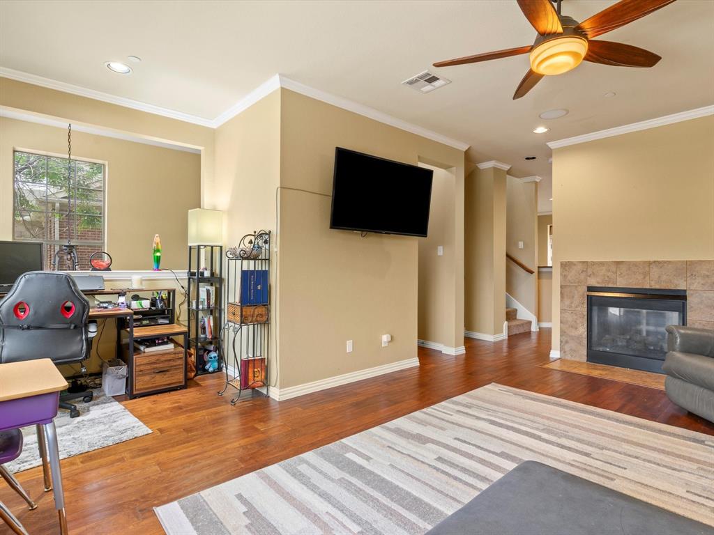 Welcome to this stunning 3-story brick townhome ideally situated just minutes from I-35E and Highway 121. Enter on the lower level through your private foyer into a generous flex space—perfect for a home office, gym, or playroom,a two-car attached garage—and enjoy the convenience of the community pools for hot summer days.