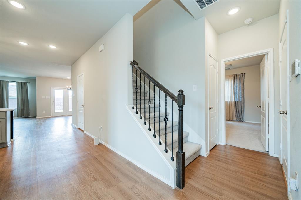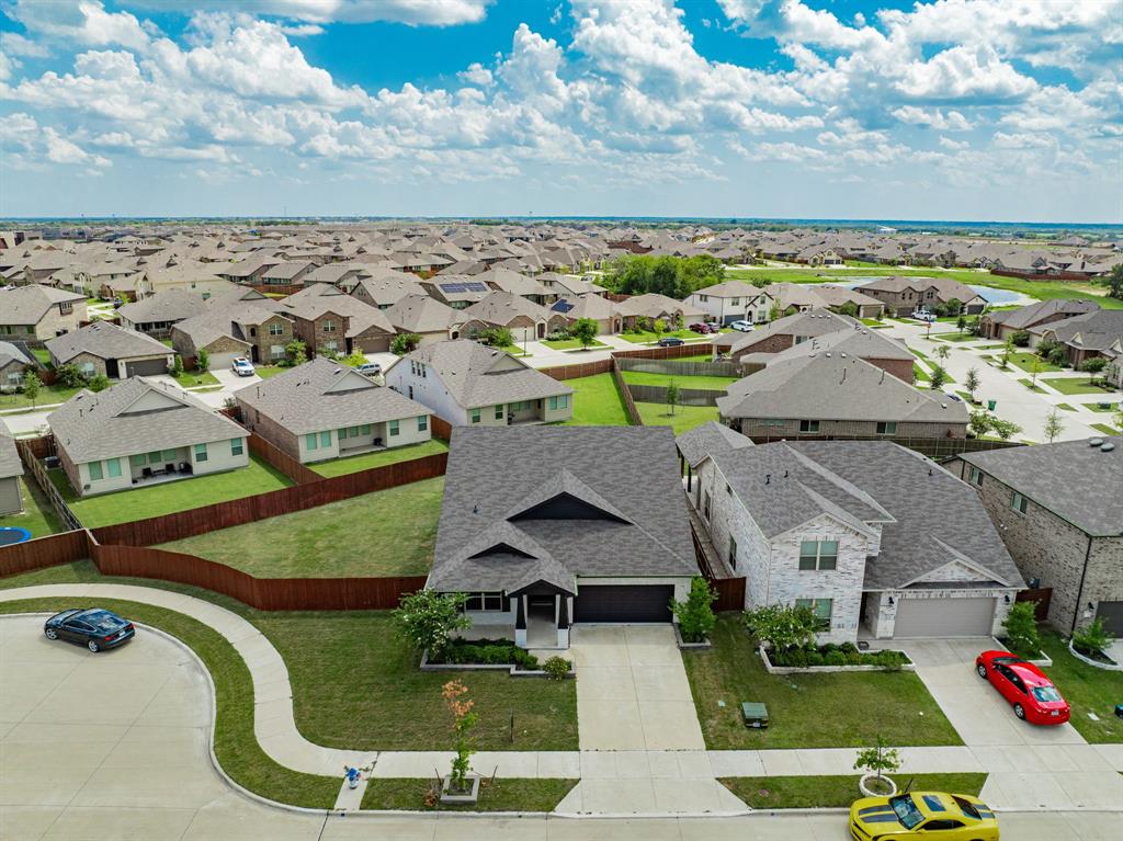 2.88% ASSUMABLE INTEREST RATE. This stunning 3 bedroom, 3 bath home blends modern luxury with thoughtful design, set on one of the largest lots in the neighborhood on 0.21 acres and at the end of a quiet cul-de-sac. From the upgraded front elevation to the interior finishes, no detail has been overlooked. Inside, luxury vinyl plank flooring flows through the main living areas, complementing the open, functional floor plan. The gourmet kitchen features rich cabinetry, stainless steel appliances, a striking marble backsplash, upgraded light fixtures, and designer faucets. The spacious primary suite provides a relaxing retreat, while all bedrooms are generously sized. Each of the 3 full baths is beautifully appointed with stylish finishes. Additional highlights include an extended patio slab for entertaining, wood accent walls adding warmth and character, and a large upstairs game room perfect for movies, pool, or play. Residents enjoy exceptional community amenities with over 400 acres of parks, picnic areas, and trails, plus a 35-acre stocked lake with fishing pier and scenic paths. The new Oasis Amenity Center offers 11,700 sq. ft. of recreation space, fitness center, event rooms, multiple pools, water slides, and abundant lounging areas. Move in ready and loaded with upgrades, this home shows like a model!