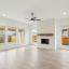 NEW! NEVER LIVED IN from Bloomfield Homes, Ready NOW! This beautifully designed single-story offers comfort, style, and thoughtful details throughout. With 3 spacious bedrooms, 2 full baths, and an additional powder bath for guests, this layout strikes the perfect balance between function and flair. Bright and airy thanks to expansive picture windows, the open-concept living space includes a private Study enclosed with glass French doors—perfect for remote work or quiet reading. The Deluxe Kitchen is a chef’s delight, showcasing Charleston-style cabinetry, sparkling quartz countertops, upgraded backsplash, double ovens, and under-cabinet lighting that adds warmth and character. The Primary Suite is a personal retreat featuring dual vanities, a soaking tub, a separate shower with a built-in seat, a linen closet, and an oversized walk-in closet with direct access to the laundry room—an everyday luxury you’ll appreciate. Additional highlights include an 8' front door, a dramatic stone-to-ceiling fireplace with a gas starter in the Family Room, and a gas drop on the covered patio ready for your grill. Set on an interior lot, the bricked front porch adds curb appeal, while the fully landscaped yard includes stone-edged garden beds, trees, plants, a sprinkler system, stained fencing, and gutters for a polished finish. Come experience the Caraway plan—a home where smart design meets inviting charm.