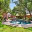Nestled on a picturesque corner lot, this stunning home is surrounded by a canopy of mature trees, creating a serene oasis in the city. Step inside to an open floor plan where the kitchen flows right into the den—great for hosting or just hanging out. You also get the charm of separate dining and living rooms nearby, keeping things cozy without feeling closed off. An exquisite courtyard with lush landscaping is situated just off the kitchen’s eating area, offering a serene and tranquil ambiance. On the main level, the spacious primary bedroom and a dedicated office provide convenience and privacy. Upstairs you’ll find three more bedrooms plus a game room—plenty of space for everyone. One of the best features is the wall of windows in the den and breakfast room, that brings in tons of natural light and frames the backyard’s lush views. Step outside to your private paradise. Whether dining alfresco, lounging by the sparkling pool, gathering around the fire pit, or swinging under the trees, the backyard offers countless spaces to unwind and reflect. Whether you’re hosting friends or just soaking up the quiet, this backyard is a true escape right in the city.