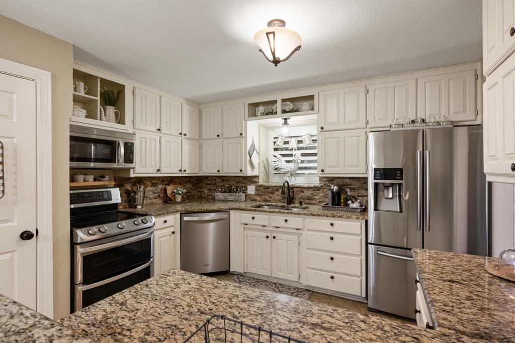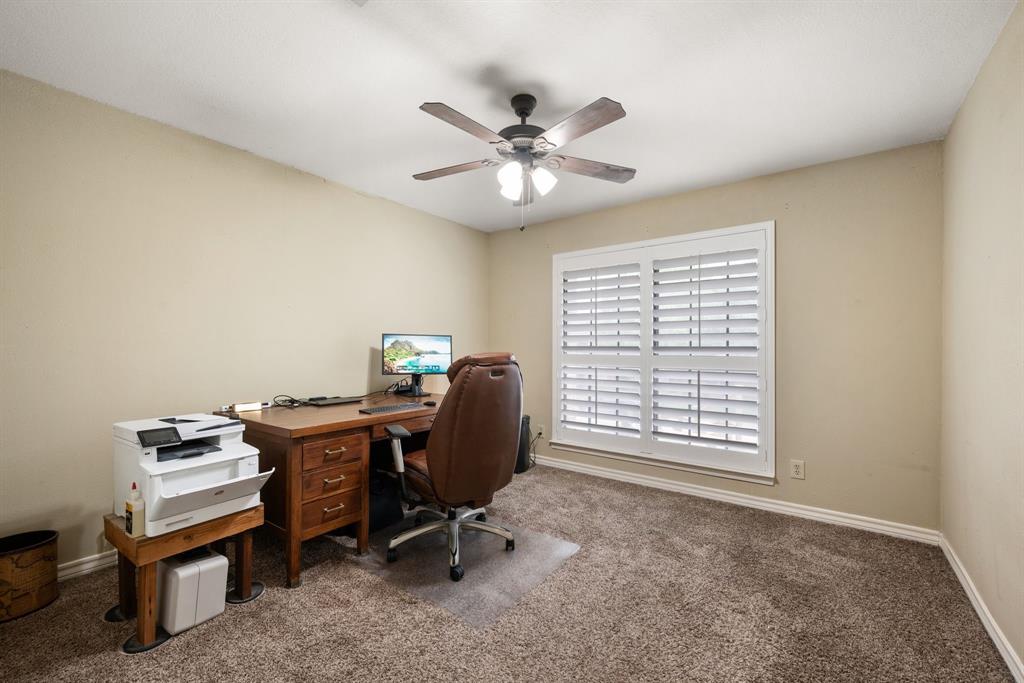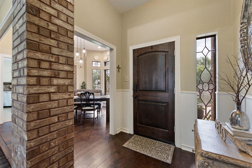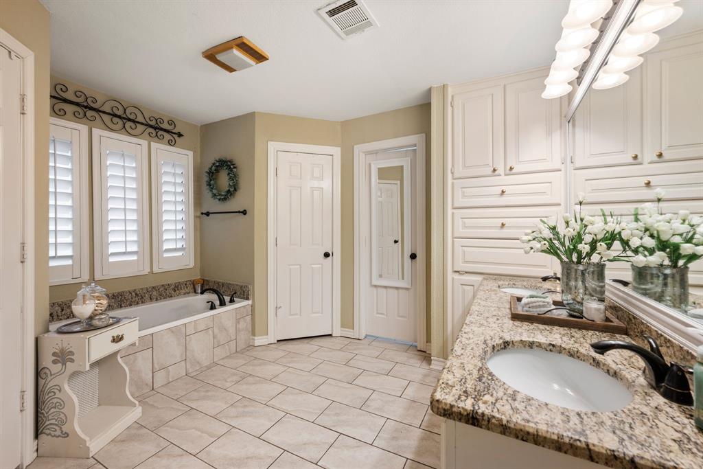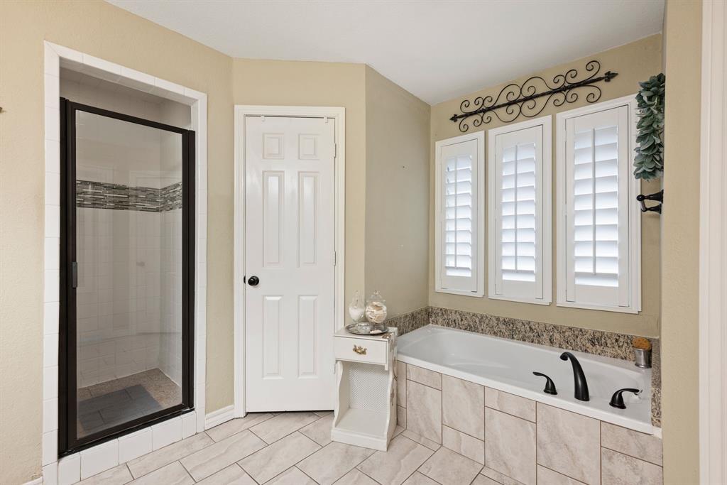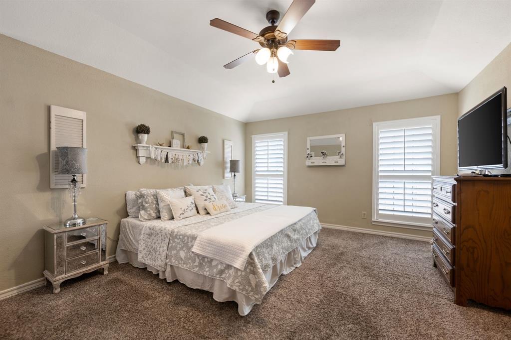 NEW ROOF, GUTTERS, AND FENCE STAINING. Step into timeless charm with this beautifully styled 3-bedroom, 2.5-bath home, offering the perfect blend of rustic farmhouse character and modern comfort. Nestled in a quiet, welcoming neighborhood, this spacious residence features two inviting living rooms—ideal for both cozy nights in and lively entertaining. Exposed brick accents and thoughtfully selected farmhouse finishes create a warm, inviting atmosphere throughout. Enjoy natural light pouring in through classic plantation shutters, adding elegance and privacy to every room. Main living room offers a fireplace and shelving. The secondary living room hosts a wet bar and views of your gorgeous backyard. The kitchen features white cabinetry, a new double oven and microwave, and granite counters. This home has two dining area options! The primary bedroom features a sitting area and door to your patio. The en-suite bath is spacious with two walk-in closets, two sinks, a walk-in shower, and tub. Two secondary bedrooms complete the space. Out back, your private oasis awaits—a sparkling pool surrounded by mature landscaping, perfect for weekend lounging or summer gatherings. The pool was recently replastered. Upgrades include electrical panel, plantation shutters, new garage door, new thermostat, and new air handler for HVAC system. Whether you’re drawn to the style, space, or seamless indoor-outdoor living, this home has something for everyone. Don't miss this home in a fantastic location! The seller will have the home painted upon move-out, the new home-owner gets to select the new paint color!
