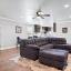 Upstairs, you’ll find a dedicated office area with a custom stained desk—perfect for remote work—as well as two secondary bedrooms. The upper-level living room offers expansive windows with stunning panoramic views of the scenic Canyon Creek landscape.