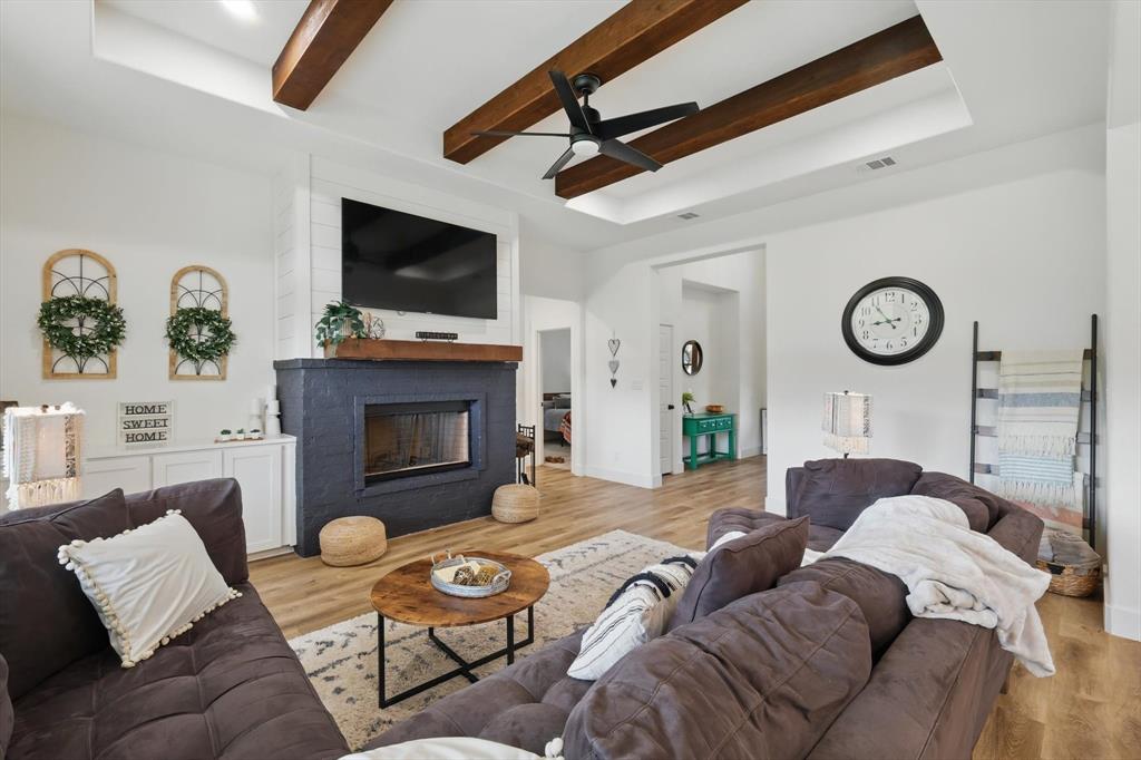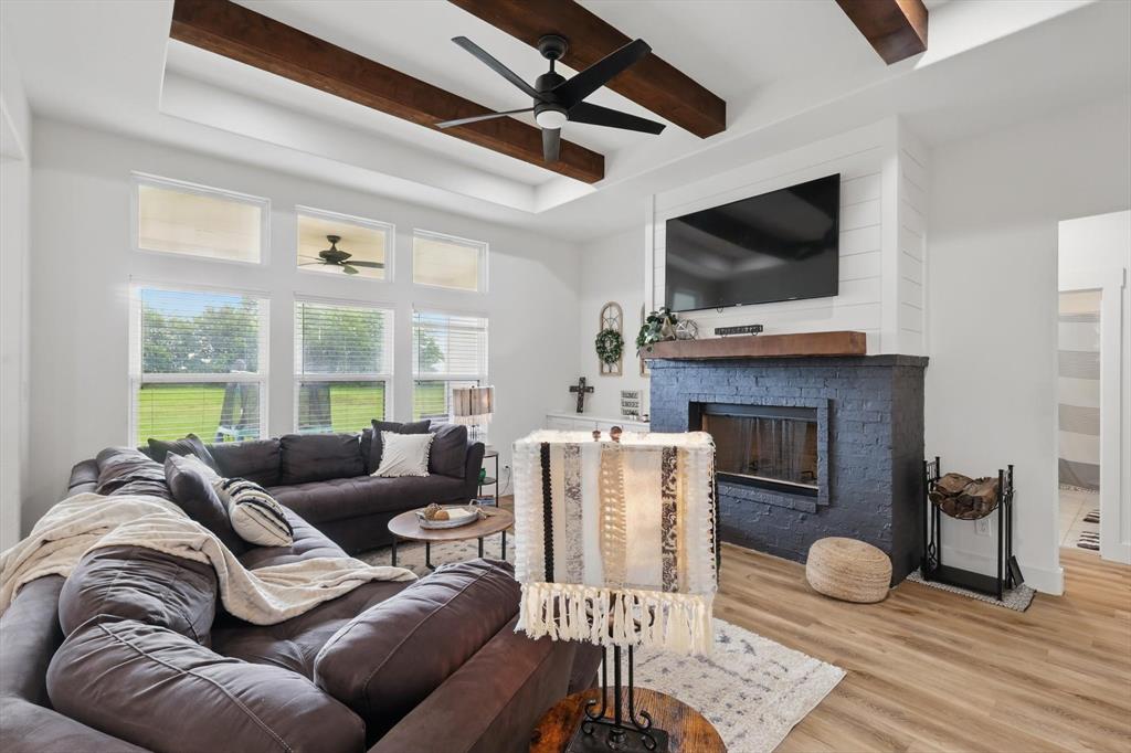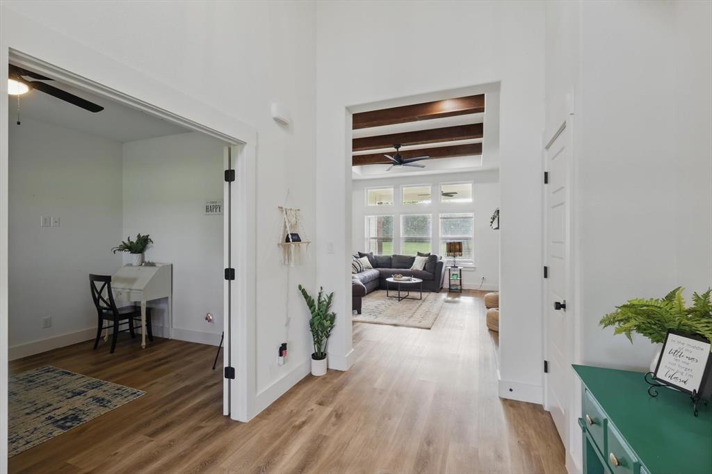 ***Seller will pay $10,000 of Buyer's Closing Costs!*** Discover the perfect blend of country charm and modern conveniences in this gorgeous farmhouse style custom home on 2.51 beautiful acres in Ponder ISD. This beautifully finished home offers 4 bedrooms, 2.5 bathrooms, and an office perfect for working from home. Step into the open-concept living room with wood-burning fireplace, built-in storage, and large windows looking out across the large property. A large kitchen island anchors the heart of the home, accented with stainless steel appliances, and a massive walk-in pantry. The large dining area is open to the living and kitchen for entertaining family and friends. The private primary suite provides a retreat for the homeowners with a large spa-like bathroom with separate dual vanities, soaking tub, separate shower, and a huge walk-in closet that opens to the well-appointed laundry room. Enjoy beautiful sunrises on your back porch and gorgeous sunsets from the front porch. The over-sized three-car garage provides ample room for your vehicles as well as an RV hookup, plenty of workspace, and ample storage. Located approximately 1 mile from HWY 380. Do not miss the chance to own this beautiful piece of country that is close to the city! Call to see it today!