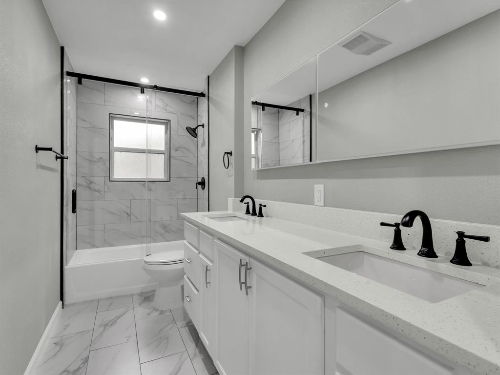 Welcome to this beautifully maintained and thoughtfully upgraded home that blends timeless charm with modern convenience. Featuring 3 bedrooms and 2 full bathrooms. Step inside to find a light-filled, open-concept living area with updated flooring and fresh, neutral paint throughout. The heart of the home is the stylish kitchen, showcasing sleek quartz countertops, expansive breakfast bar, stainless steel appliances, tiled backsplash and ample cabinetry all overlooking the spacious living area with durable flooring, built in electric fire place and views of the back yard. Impressive upgrades in the bathroom include glass framed shower with stylish tile, quartz counters, updated faucet and hardware. Secondary bedrooms with generously sized closets, fresh paint, updated baseboards and beautiful floors. Enjoy the convenience of an in-home washer and dryer, both included in the sale, along with plenty of storage options (multiple closets) and updated fixtures throughout. Located in a quiet, established neighborhood, this home is close to parks, schools, shopping, and major commuter routes.