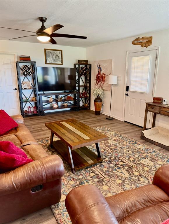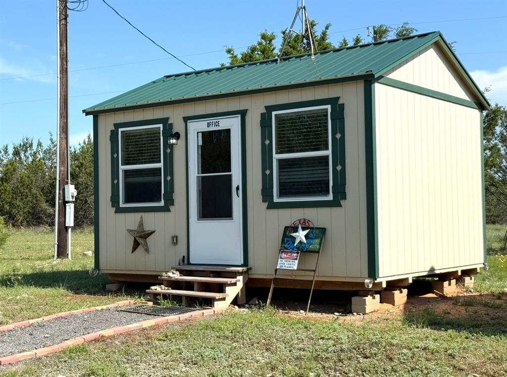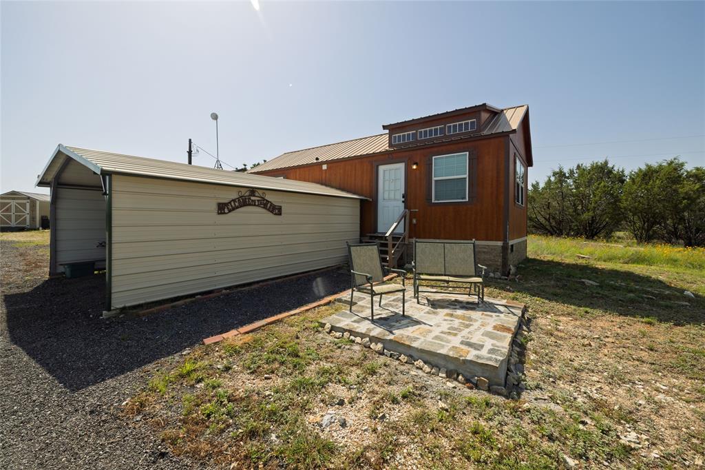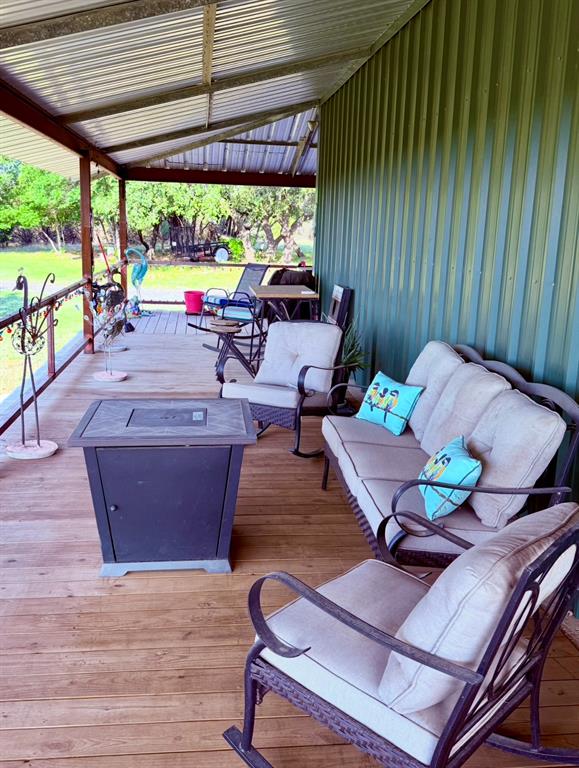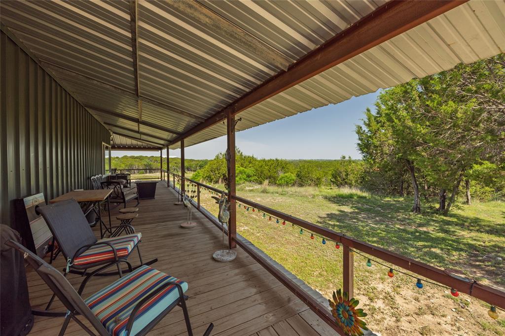 PRICE REDUCED FOR QUICK SALE!! Texas Ranch Retreat with Renovated Barndo, Guest Tiny Home & Endless Views —just under 23 unrestricted acres of peace, privacy, & panoramic views that stretch for miles! Anchoring the property is a beautifully renovated barndominium that blends rustic charm with modern upgrades, featuring granite countertops, new tile backsplash, LVP floors, & newer appliances. The massive walk-in closet & abundance of storage provide room to breathe, & there's even space to easily add a second bath. All-new Pella windows, new vanity & shower, & a spray-foam insulated attic with aluminum pull-down ladder ensure comfort & efficiency year-round. Step outside to a large wooden deck wrapped in Austin limestone—perfect for enjoying the legendary Texas sunsets. New private road & electric gate recently added to provide secure & convenient access from the main road. For those looking for a seamless move, the barndominium is available furnished.