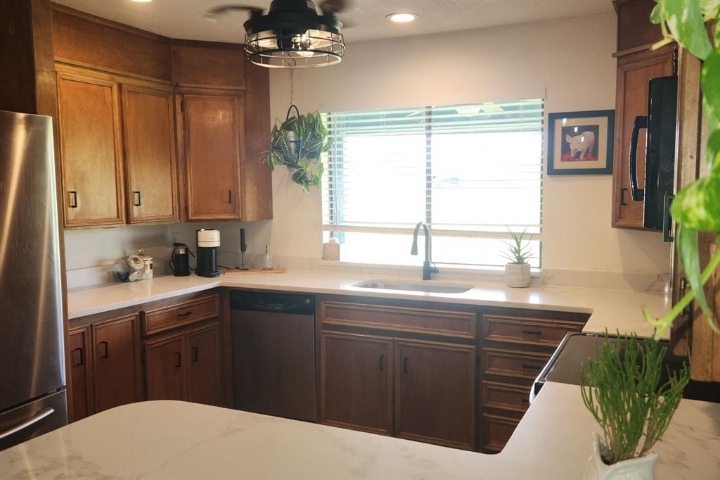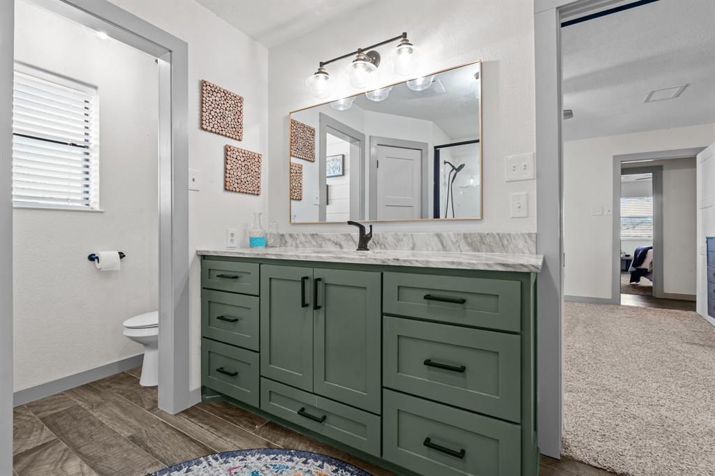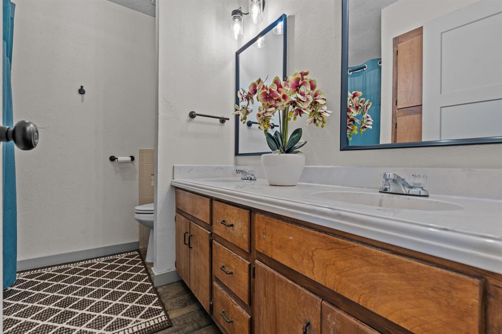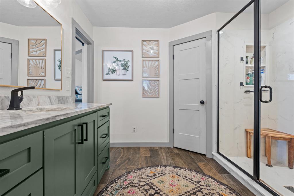 Inside, you’ll find two inviting living areas and a primary suite that includes a bonus room—perfect as an extra bedroom, home office, or hobby space. The primary bathroom has been updated with a walk-in marble shower and custom vanity, bringing a touch of luxury to your everyday routine. Wood-look tile runs throughout the common areas, making cleanup a breeze.