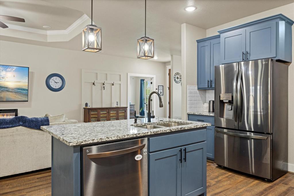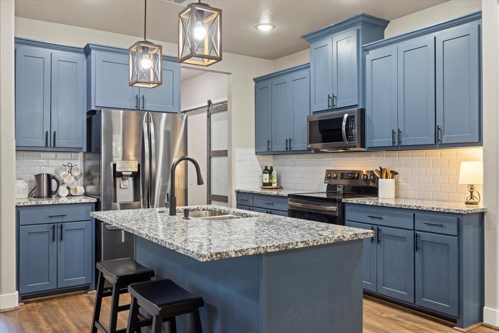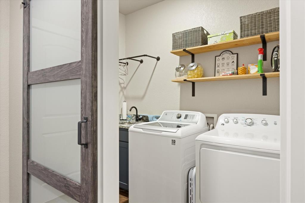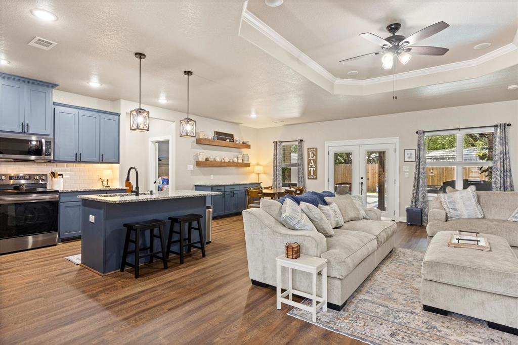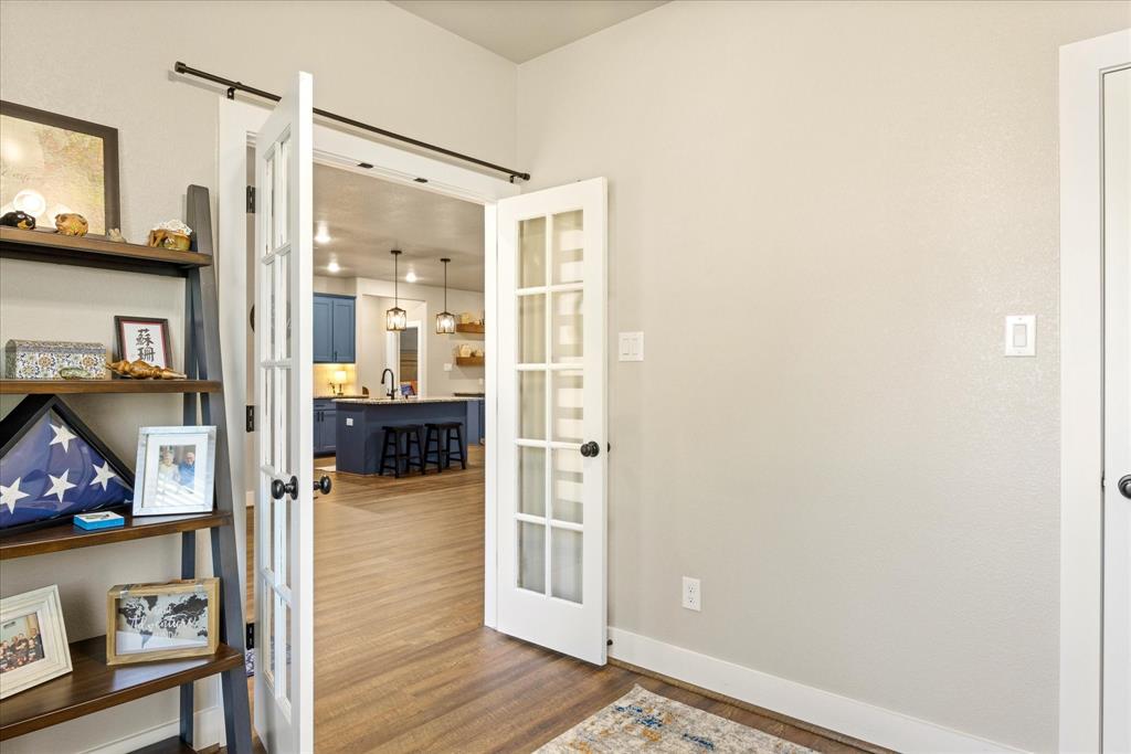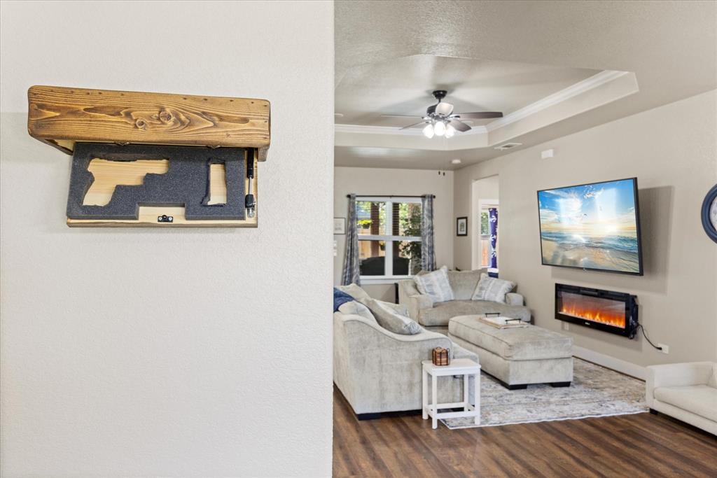 Pristine and better than new home in gated community of Canyon Creek with Assumable VA Mortgage at 3.4%. This 4 bedroom, 2.5 bath home has all the cool finishes and a TON of EXTRAS! Flat and perfectly manicured fenced backyard that features an in ground gunite salt water pool with beautiful decking, decorative lighting and fans around the patio but still plenty of grassy area for pets. This is going to be your SUMMER HOT SPOT for all your friends and family! Pool equipment is nicely tucked out of sight behind the shed that conveys. Pergolas adorn both the front and back of home and add to the high end custom feel. Upon entering, there is a light and bright office with glass French doors that could also be a bedroom. Formal dining at the front of the home is spacious and has a built in shelf with a hidden compartment. Open concept floorplan, light color palette, and modern electric fireplace welcome you home. Kitchen is open to living room and is perfect setup for entertaining with the popular blue cabinetry, white subway tile backsplash, and granite counters. Coffee bar or wine bar area perfectly placed by the fridge PLUS a huge butler pantry area with decorative wood shelving is located off the breakfast dining area. Spacious laundry area features shelving, hanging area and sink and is easily closed off by a stylish opaque glass contemporary barn door. Half bath is easily accessible across from the laundry. French doors lead to the outdoor patio, pool and HOT TUB. Use your whole yard, as no septic to worry about here, it is on CO-OP water and sewer and the entire yard has irrigation. Built in soffit lighting makes for easy holiday decorating. Community has Clubhouse, dock, playground and more-see canyoncreekpoa.com info. Too much to mention, this is a must see!