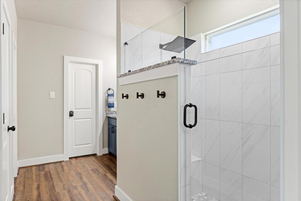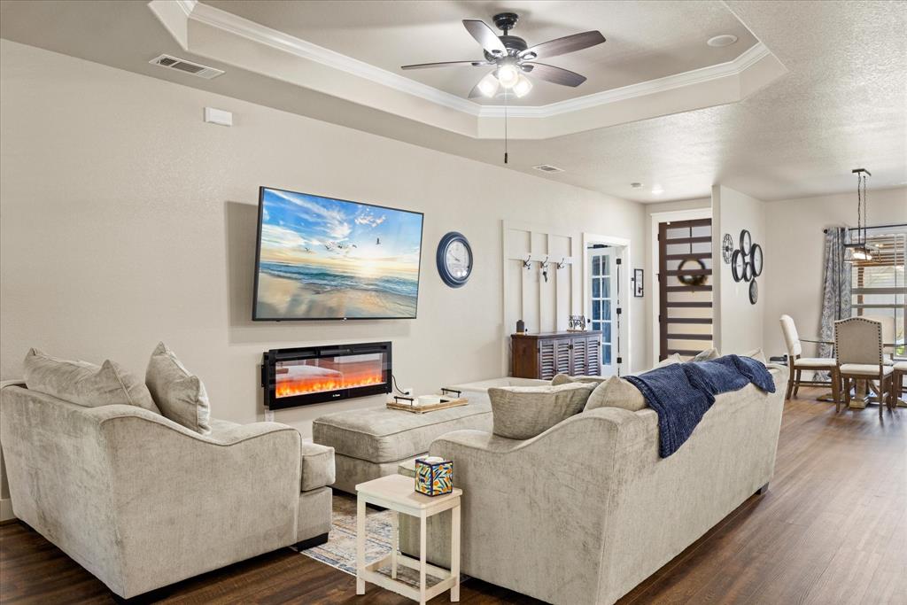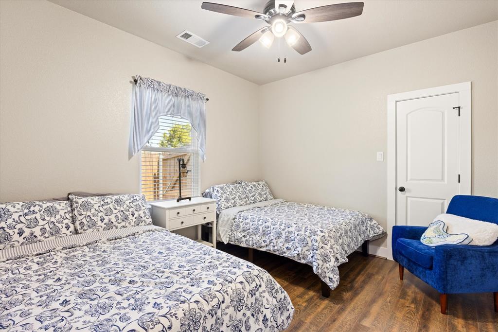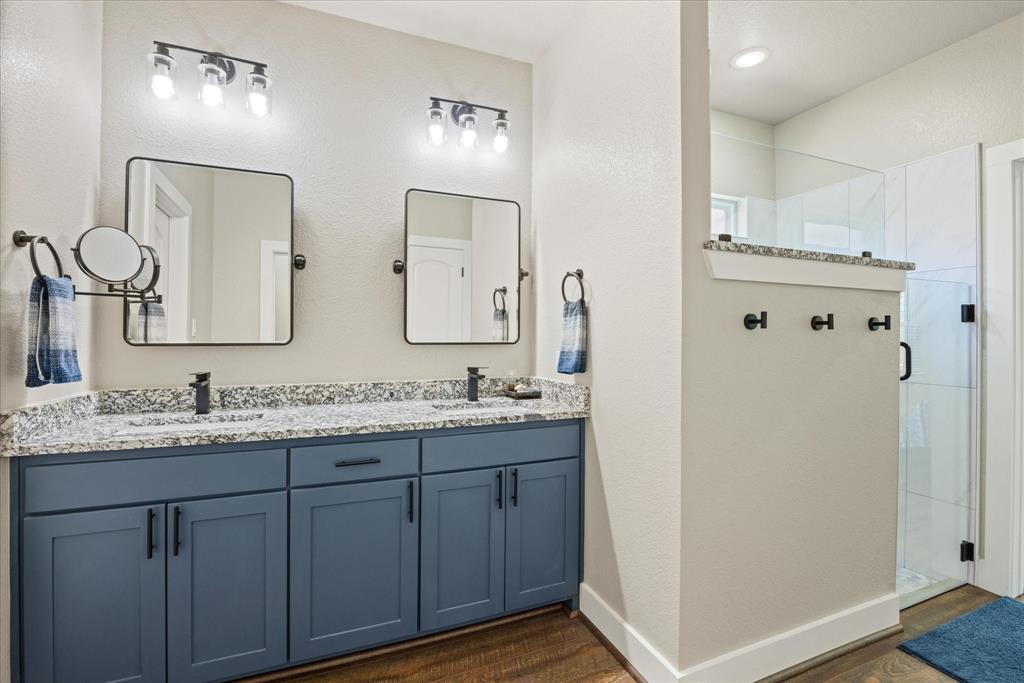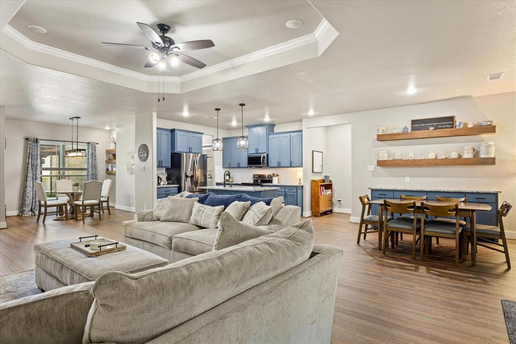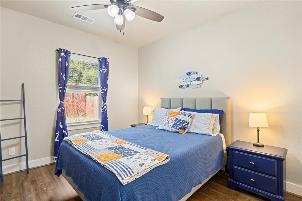 Pristine and better than new home in gated community of Canyon Creek with Assumable VA Mortgage at 3.4%. This 4 bedroom, 2.5 bath home has all the cool finishes and a TON of EXTRAS! Flat and perfectly manicured fenced backyard that features an in ground gunite salt water pool with beautiful decking, decorative lighting and fans around the patio but still plenty of grassy area for pets. This is going to be your SUMMER HOT SPOT for all your friends and family! Pool equipment is nicely tucked out of sight behind the shed that conveys. Pergolas adorn both the front and back of home and add to the high end custom feel. Upon entering, there is a light and bright office with glass French doors that could also be a bedroom. Formal dining at the front of the home is spacious and has a built in shelf with a hidden compartment. Open concept floorplan, light color palette, and modern electric fireplace welcome you home. Kitchen is open to living room and is perfect setup for entertaining with the popular blue cabinetry, white subway tile backsplash, and granite counters. Coffee bar or wine bar area perfectly placed by the fridge PLUS a huge butler pantry area with decorative wood shelving is located off the breakfast dining area. Spacious laundry area features shelving, hanging area and sink and is easily closed off by a stylish opaque glass contemporary barn door. Half bath is easily accessible across from the laundry. French doors lead to the outdoor patio, pool and HOT TUB. Use your whole yard, as no septic to worry about here, it is on CO-OP water and sewer and the entire yard has irrigation. Built in soffit lighting makes for easy holiday decorating. Community has Clubhouse, dock, playground and more-see canyoncreekpoa.com info. Too much to mention, this is a must see!