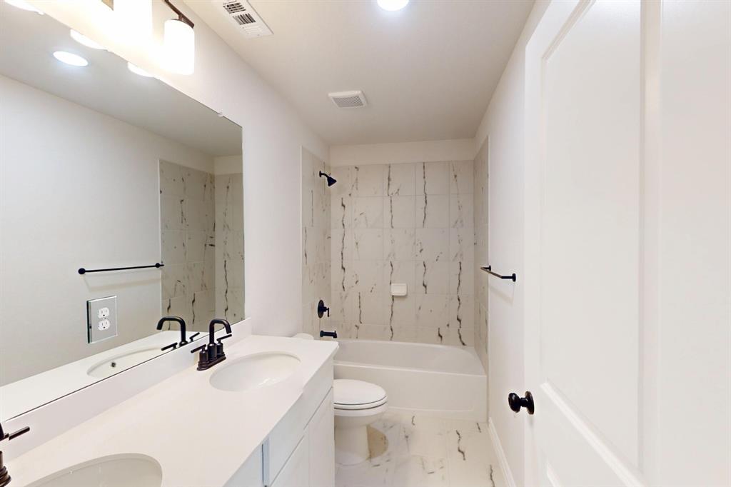 Upstairs, you’ll find three additional bedrooms, each with an 8’ ceiling and ample closet space. Two full bathrooms serve the upstairs bedrooms, and a large game room provides extra space for entertaining or relaxing. The open railing overlooks the family room below, enhancing the home's open and airy feel.