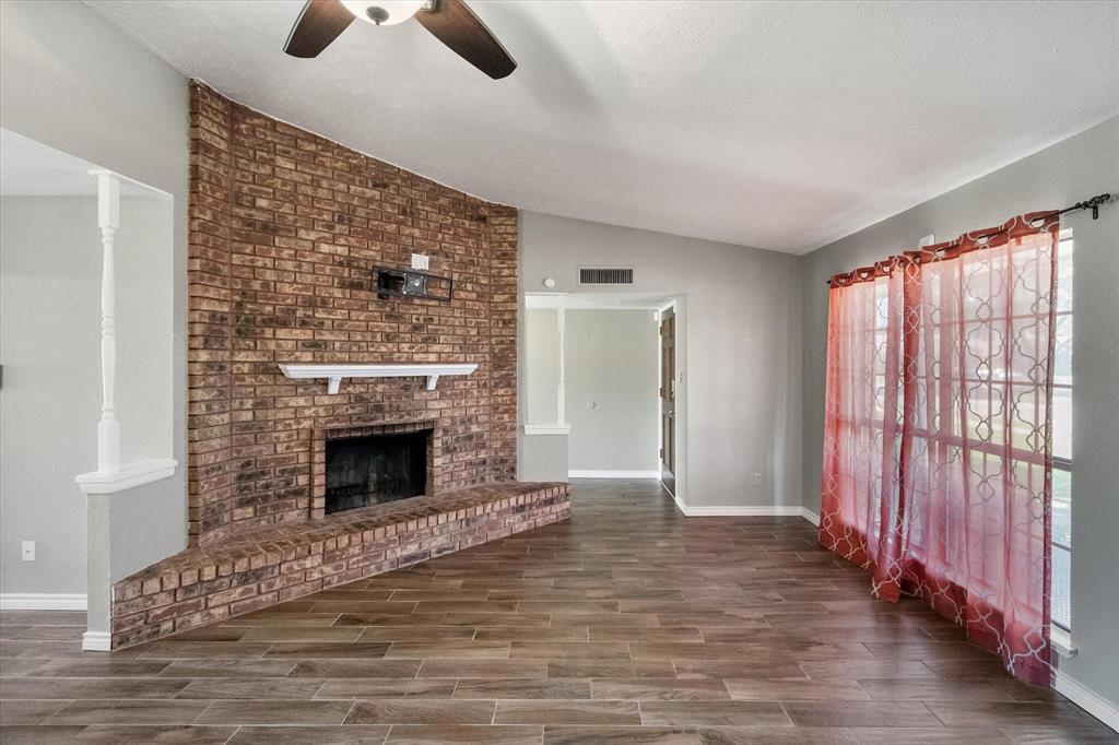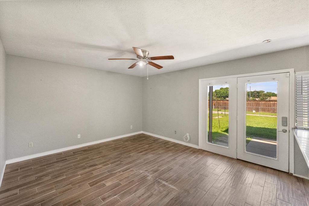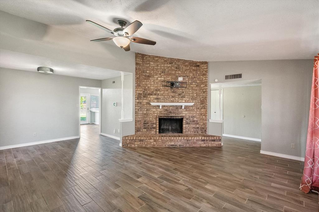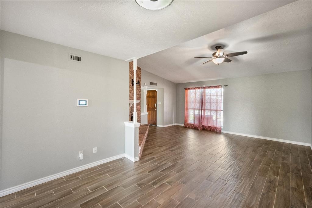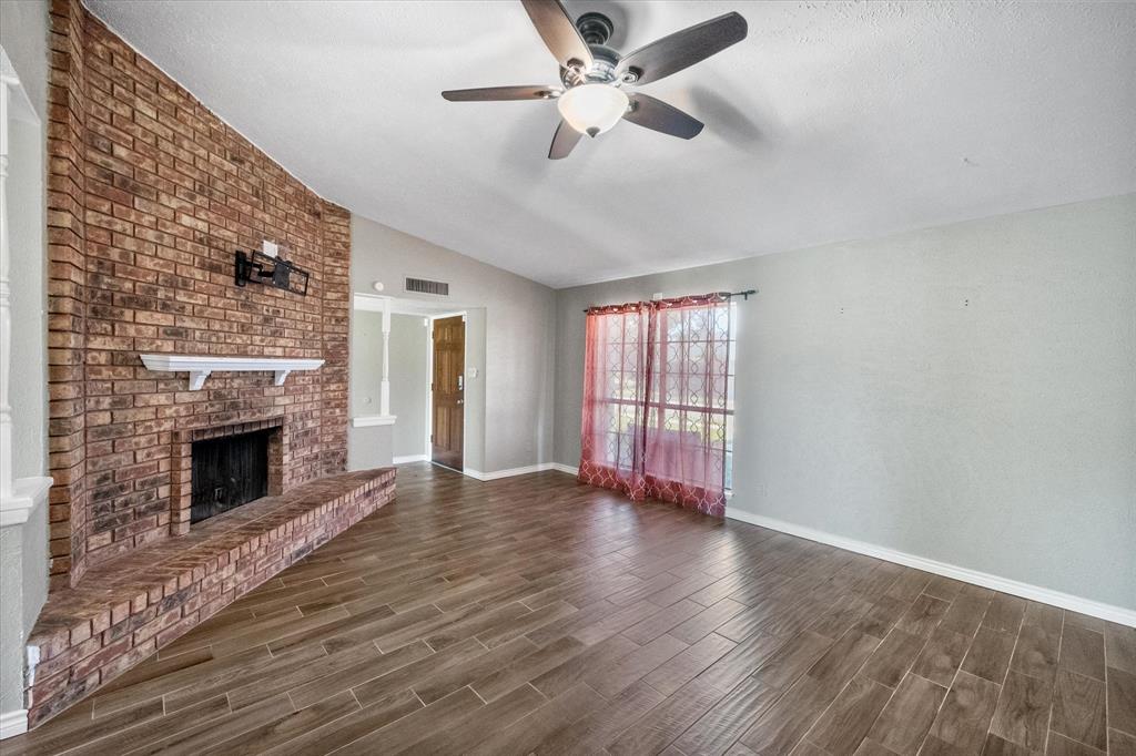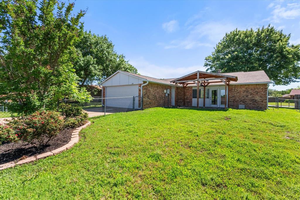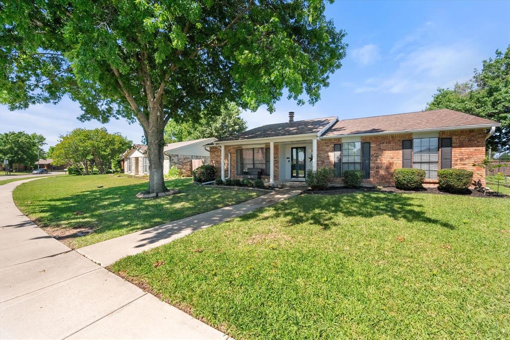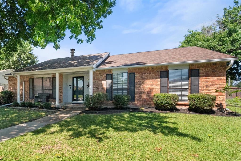 PRICE CHANGE! NEW CARPET! Charming Front Porch! Fantastic Location in the acclaimed Coppell School District! Look no further than this 3 bedroom 2 bath, 2 car garage Move In Ready home in a well establish neighborhood close to schools and parks! Upon entry you'll be greeted by a cozy family room with high ceilings and a handsome wood burning brick fireplace. Abundant wood look tile flooring flows throughout the main living areas and into a light and bright kitchen, dining, and additional living area with french glass doors heading out back. The Chefs kitchen will be an easy gathering place for friends and family, featuring granite counters, a SS vented hood and appliances. The Primary Bedroom is sure to please with its Ensuite bath and Dual Closets! Both bathrooms have been beautifully updated. The yard is fully fenced for the kids and pets, and the covered back porch and fan will be a treat in the warmer months! The garage is rear entry - allowing privacy and easy access from the alley driveway. You will also appreciate the 3 year old roof, updated electrical, and the foundation repair with a warranty. Come take a look. See you soon!