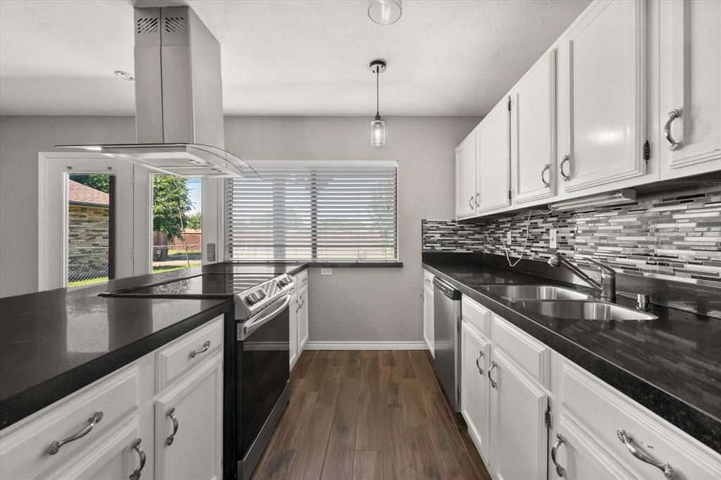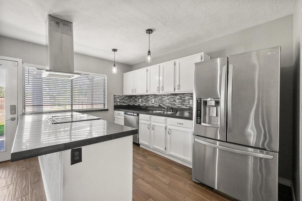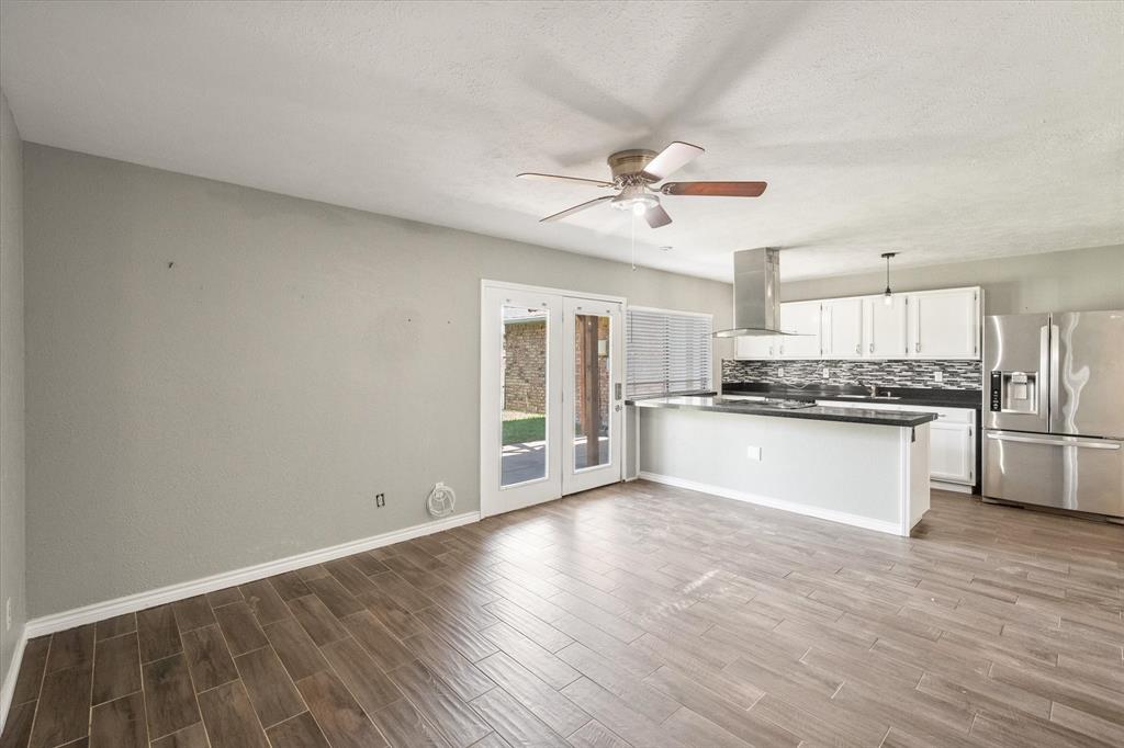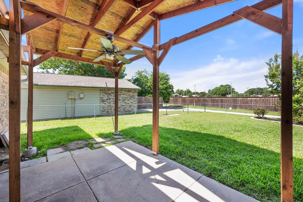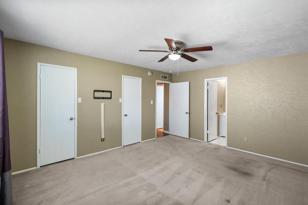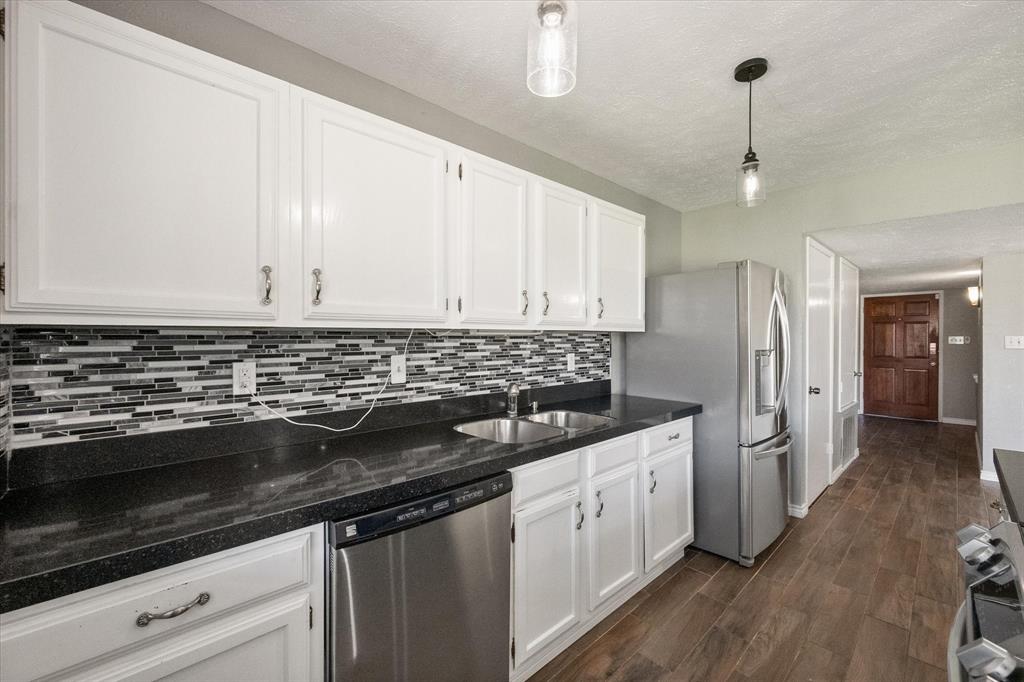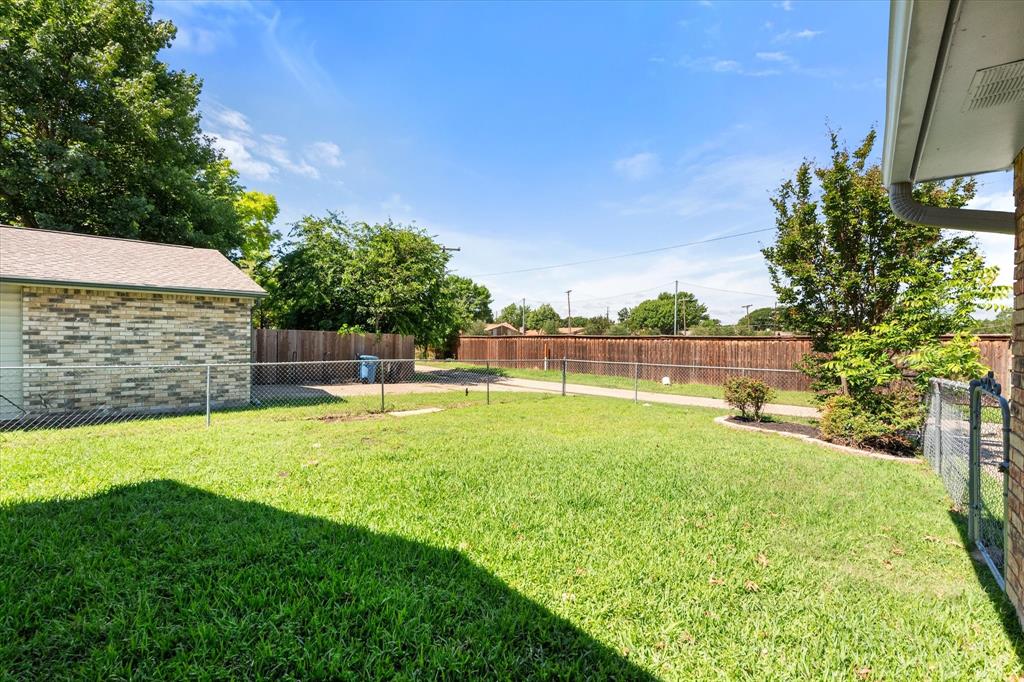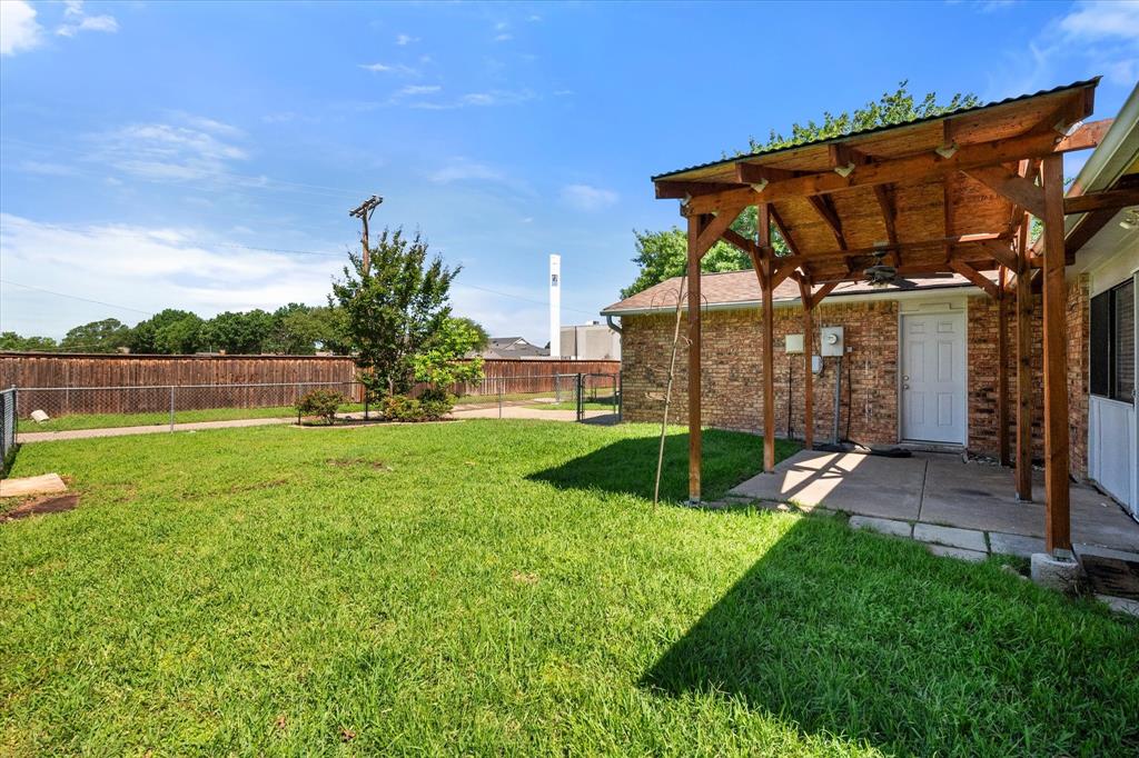 PRICE CHANGE! NEW CARPET! Charming Front Porch! Fantastic Location in the acclaimed Coppell School District! Look no further than this 3 bedroom 2 bath, 2 car garage Move In Ready home in a well establish neighborhood close to schools and parks! Upon entry you'll be greeted by a cozy family room with high ceilings and a handsome wood burning brick fireplace. Abundant wood look tile flooring flows throughout the main living areas and into a light and bright kitchen, dining, and additional living area with french glass doors heading out back. The Chefs kitchen will be an easy gathering place for friends and family, featuring granite counters, a SS vented hood and appliances. The Primary Bedroom is sure to please with its Ensuite bath and Dual Closets! Both bathrooms have been beautifully updated. The yard is fully fenced for the kids and pets, and the covered back porch and fan will be a treat in the warmer months! The garage is rear entry - allowing privacy and easy access from the alley driveway. You will also appreciate the 3 year old roof, updated electrical, and the foundation repair with a warranty. Come take a look. See you soon!