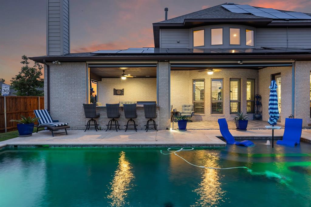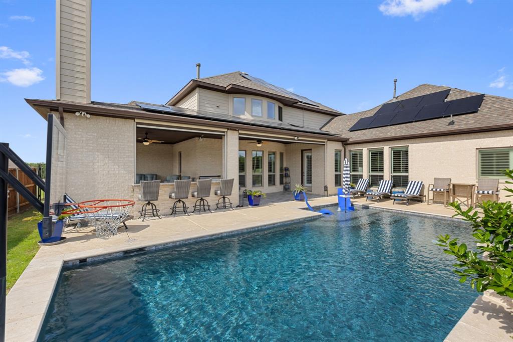 Seller offering $1500 concession for the buyer's closing cost! Experience exceptional design and outdoor living in this stunning luxury residence located in one of Rockwall’s premier communities. Built for comfort and entertaining, the home showcases a fully equipped outdoor kitchen, remote-controlled retractable screens, and a sparkling pool—offering a true backyard retreat. Inside, the main level features a dedicated office, a media room, and a spacious open-concept living area. The private primary suite includes a spa-inspired bathroom and two generously sized walk-in closets. Each additional bedroom throughout the home includes its own en-suite bathroom, offering privacy and convenience for all household members or guests. Energy-efficient solar panels provide long-term utility savings, while refined interior finishes complement the functional layout. Whether hosting gatherings or enjoying quiet evenings, this home seamlessly blends indoor and outdoor living. Ideally located near Rockwall’s shopping, dining, lake, downtown scene, and recreational amenities, this home offers a luxurious lifestyle in a highly desirable setting.