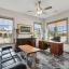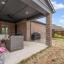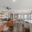 Welcome to your dream home in The Elements 55+ community, perfectly situated on a spacious corner lot with a charming, oversized front porch ideal for relaxing evenings or morning coffee. Step inside to discover designer-selected wallpaper and elegant color palettes that create a truly custom feel throughout. The heart of the home is the stunning kitchen, featuring an expansive island that easily seats four, overlooking the large, light-filled Family Room. Walls of windows, equipped with sleek electric shades, bathe the living spaces in natural light and offer beautiful views of the private, courtyard-style patio, perfect for entertaining or quiet retreats.