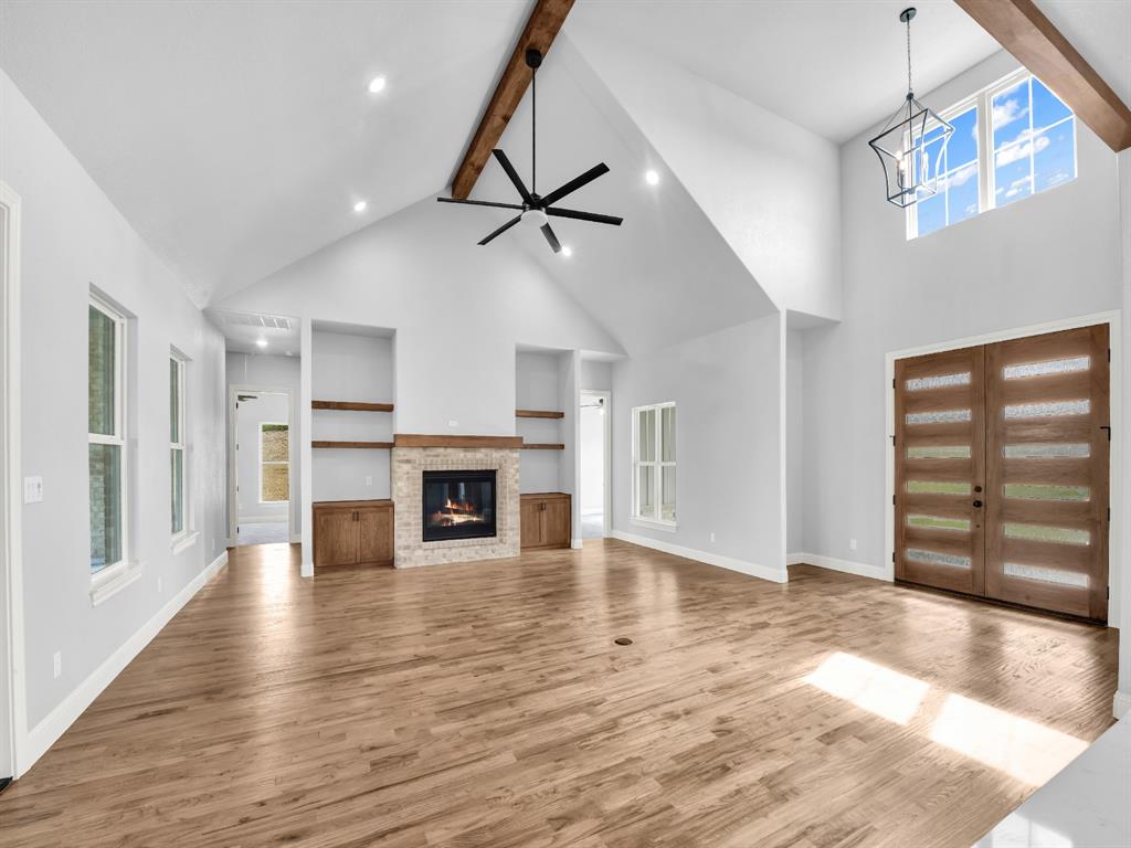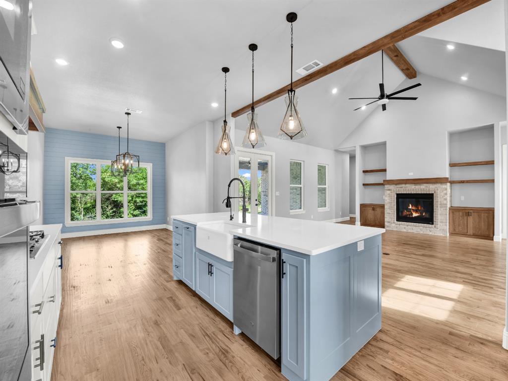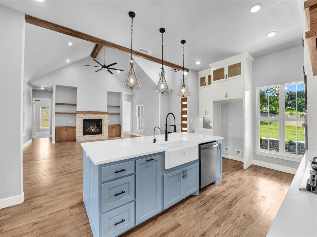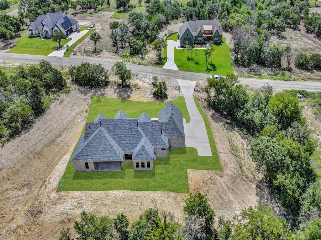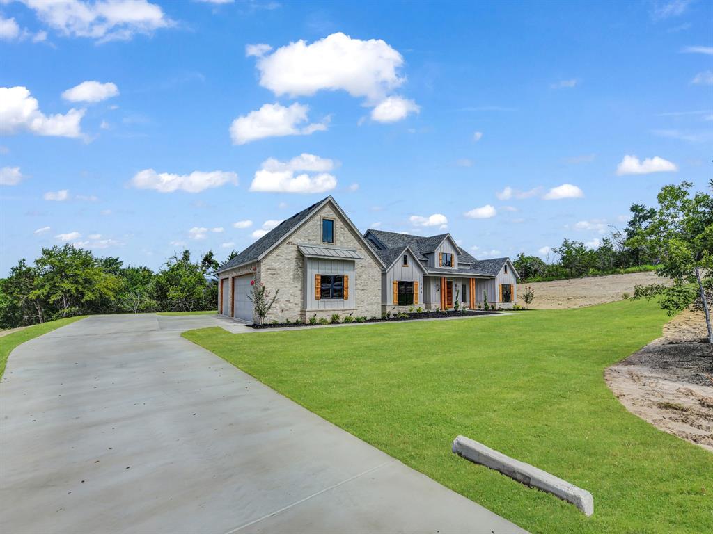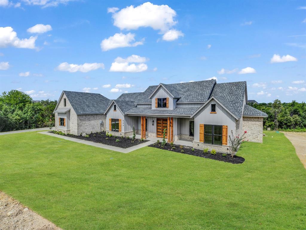 **ASK ABOUT BUILDER INCENTIVES** Gorgeous MHB Custom Homes build on 2 acres in beautiful Windmill Creeks! 4 bed 3.5 bath Modern Farmhouse inspired home. No HOA. Build a guest home or a shop. Horses, chickens, and goats allowed! Open concept living area with a gas log fireplace, built-in cabinets, pine mantle & floating shelves, REAL hand-scraped hardwood floors, dining room with shiplap paneling, and a vaulted ceiling with stained pine wood beam. Eat-in kitchen offers large island with breakfast bar, farm sink, custom cabinets to the ceiling, pendant lighting, under cabinet lighting, gas cook top, double ovens, and quartz countertops! Walk-in butler’s pantry with built in cabinets, wine rack, and quartz top. Dedicated office with barn door & wood floors. Relax in the roomy primary bedroom featuring wood floors, tray ceiling with pine beams, an ensuite with split vanities, shiplap accent walls, over-sized linen closet, huge walk-in shower, free standing tub, and spacious primary closet with a convenient door to the laundry room. SPLIT BEDROOMS: Three large secondary bedrooms are separate from primary suite offering privacy for all! EVERY BEDROOM in the home has an attached bathroom! Bedrooms 2 & 3 share a Jack & Jill bath with separate vanities. Bedroom 4 has its own bathroom making it perfect for a MIL suite or guest room. This home is PACKED WITH EXTRAS to include soft close cabinets, soft water system, reverse osmosis unit, up lights, 120 gallon propane tank that conveys, OVERSIZED 3 car garage, 6” gutters, spray foam insulation, two electric water heaters, variable-speed energy star rated HVAC system, LED disc lights, & numerous other energy efficient features. Landscaping package includes Bermuda sod, irrigation zones, and mulched planters with native plants. See Supplements for other Features & Amenities. Weatherford address conveniently located in-between Weatherford, Azle, and Springtown with a 30 minute commute to Fort Worth.