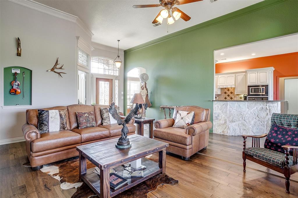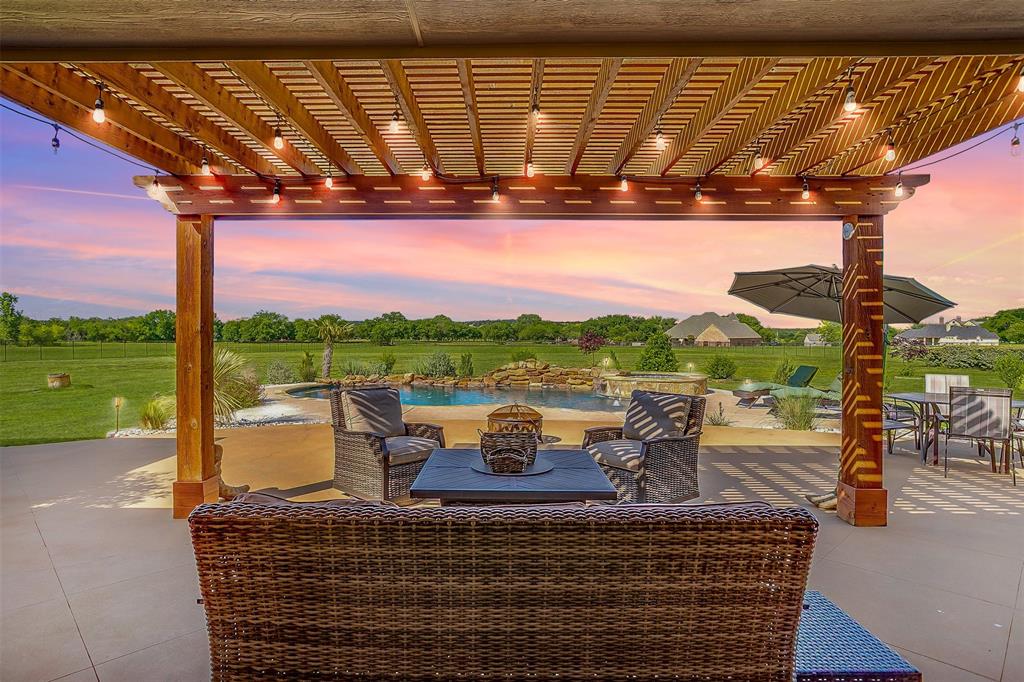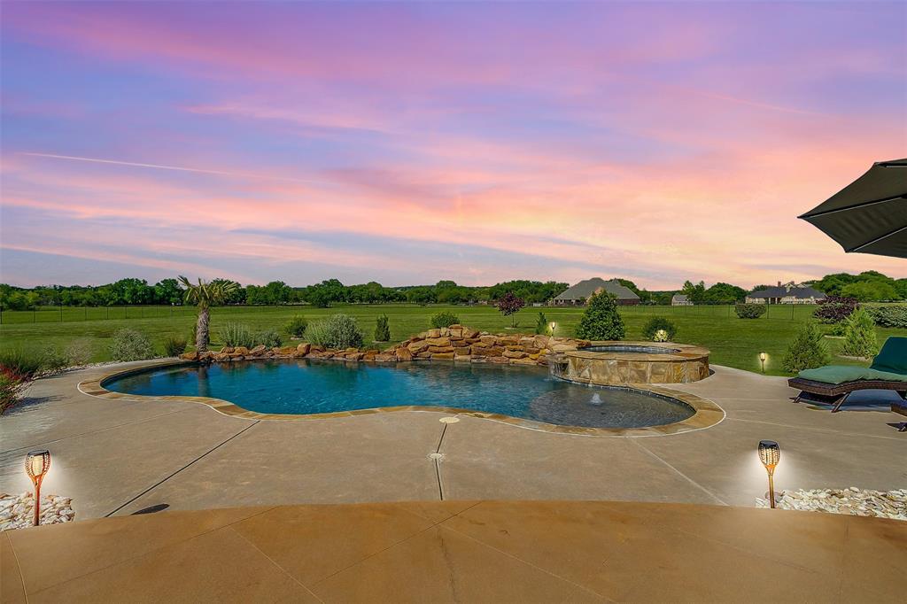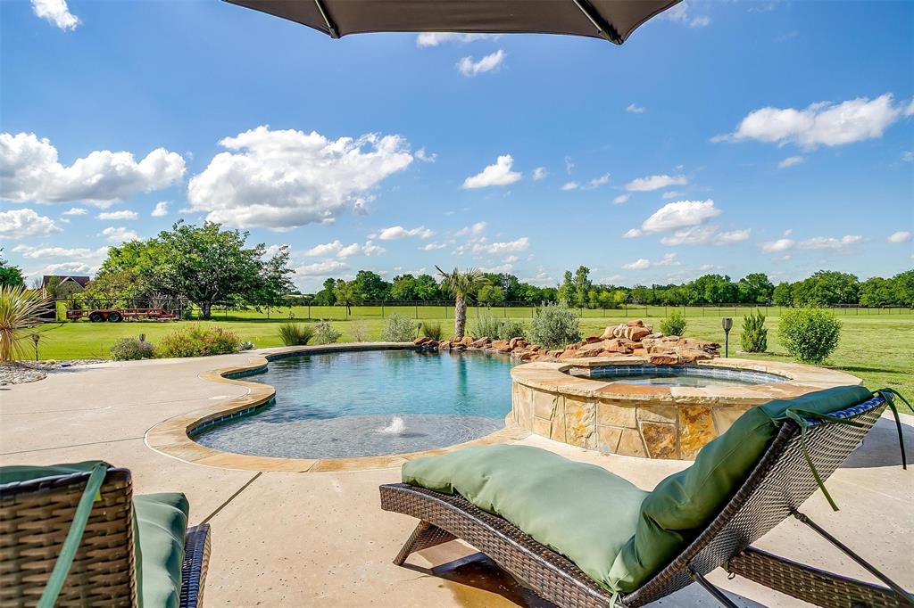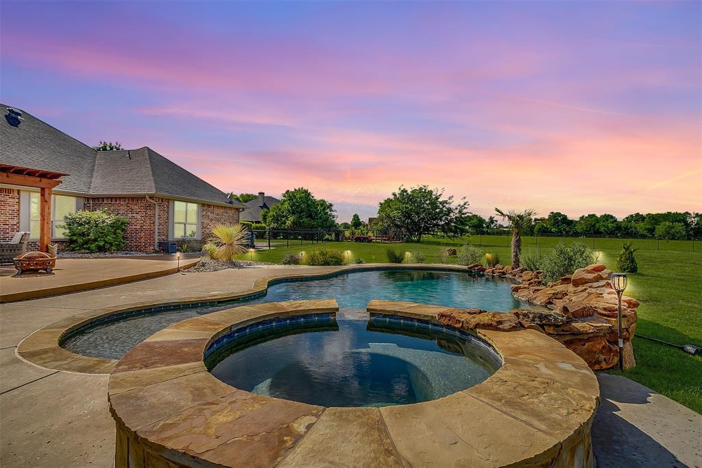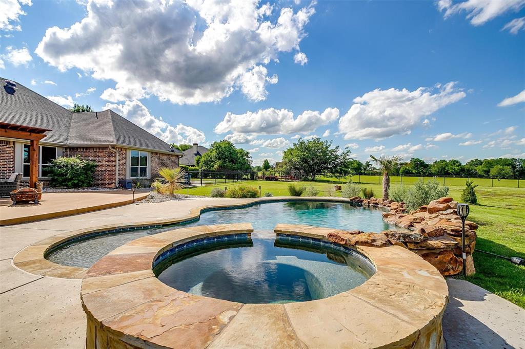 PROPERTY BACK ON MARKET DUE TO BUYERS INABILITY TO SELL THEIR CURRENT HOME! COME LOOK AT THIS BEAUTIFUL HOME WITH HUGE PRICE REDUCTION! One of a Kind in Cattlebaron Parc! This rare gem sits on 3.34 acres in the highly sought-after, gated community —perfectly positioned on a quiet cul-de-sac lot with serene greenbelt views right across the street with plenty of room for barn or workshop. Step inside to find a spacious, well maintained 4 bedroom, 2.5 bath home featuring rich wood flooring throughout, a bright open concept layout, and a striking floor to ceiling fireplace in the living area. The chef’s kitchen boasts stainless steel appliances, a separate island, and upgraded granite countertops, cooktop, and dishwasher. Retreat to the private primary suite with a beautifully remodeled bathroom, while the additional oversized bedrooms all offer generous walk-in closets. The fourth bedroom, currently used as a game room, includes an en suite half bath and direct access to the backyard—ideal for entertaining or guest use. You’ll also find a formal dining room and a separate home office for work from home flexibility. Outside, enjoy your own private oasis with a custom PebbleTec heated pool with spa, a large upgraded patio with pergola, and a perfectly manicured backyard. The extended driveway leads to an oversized 3-car garage, offering plenty of parking and storage. Major updates include the roof, gutters, HVAC system, and electric water heater (all replaced approx 2022), new pool equipment 2024, new septic pumpm 2025 plus a water softener system for added comfort. Cattlebaron Parc offers a rural feel with modern convenience, featuring a community clubhouse, pool, and sports court. Enjoy the peaceful lifestyle—all just minutes from downtown Fort Worth or Aledo