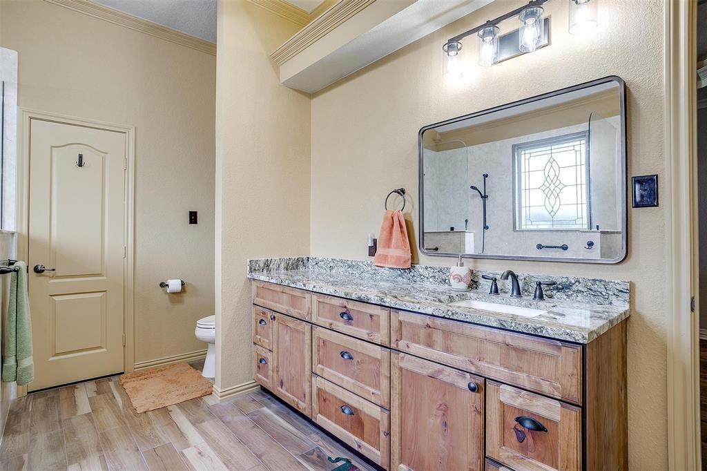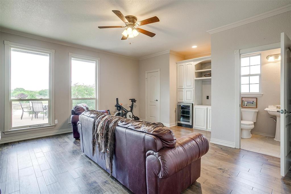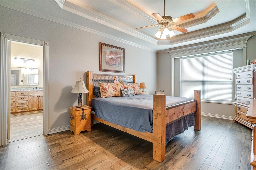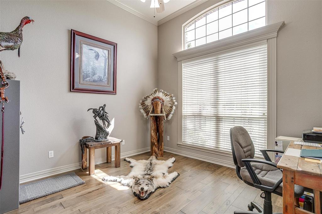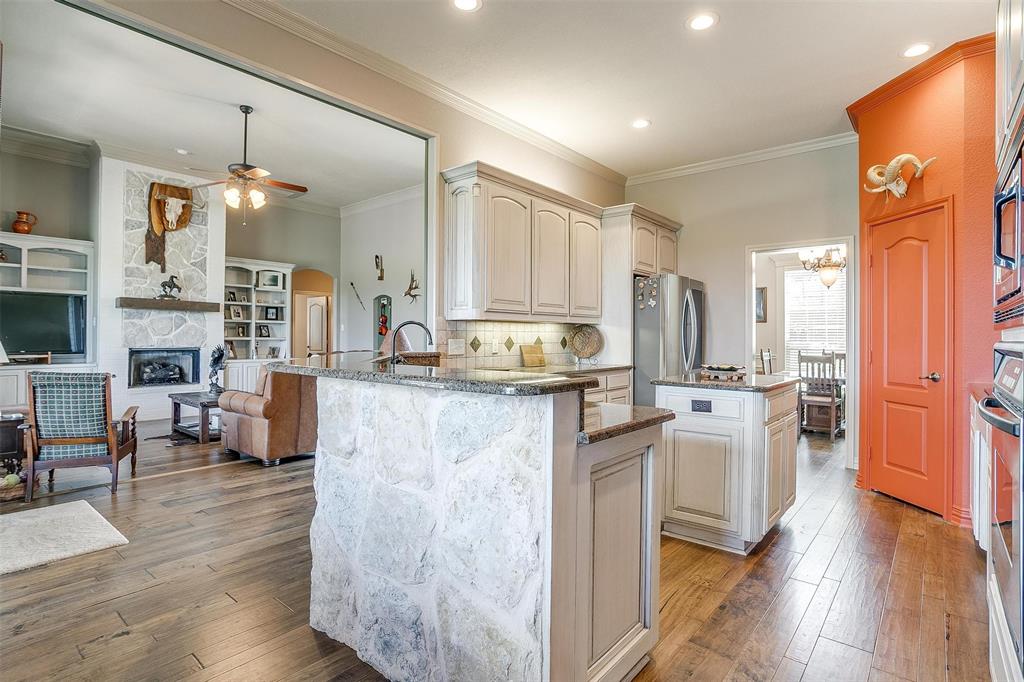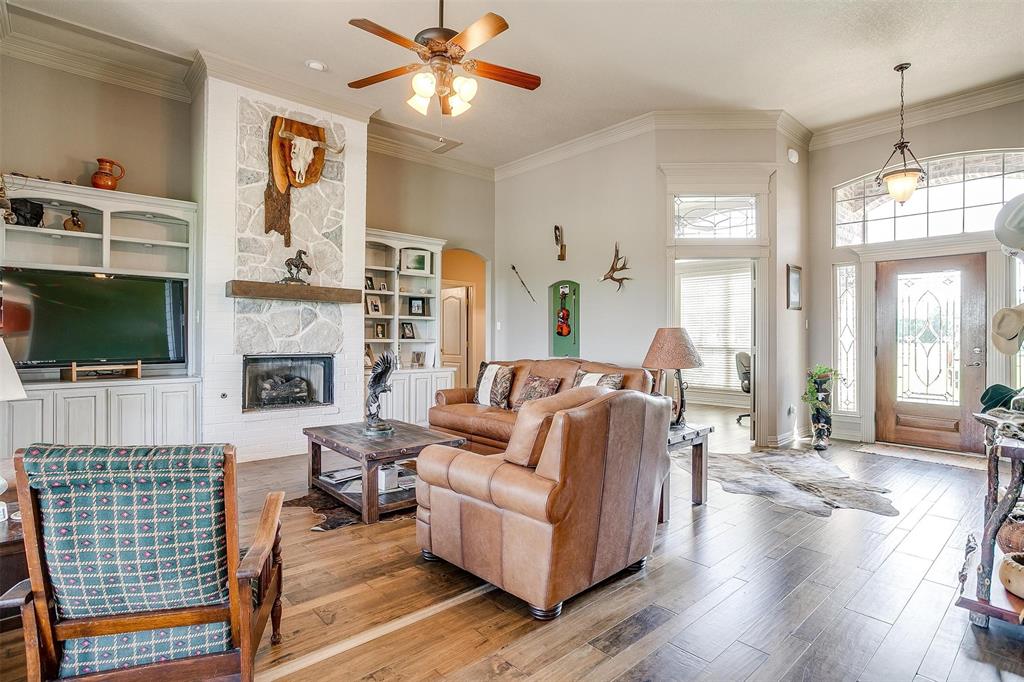 PROPERTY BACK ON MARKET DUE TO BUYERS INABILITY TO SELL THEIR CURRENT HOME! COME LOOK AT THIS BEAUTIFUL HOME WITH HUGE PRICE REDUCTION! One of a Kind in Cattlebaron Parc! This rare gem sits on 3.34 acres in the highly sought-after, gated community —perfectly positioned on a quiet cul-de-sac lot with serene greenbelt views right across the street with plenty of room for barn or workshop. Step inside to find a spacious, well maintained 4 bedroom, 2.5 bath home featuring rich wood flooring throughout, a bright open concept layout, and a striking floor to ceiling fireplace in the living area. The chef’s kitchen boasts stainless steel appliances, a separate island, and upgraded granite countertops, cooktop, and dishwasher. Retreat to the private primary suite with a beautifully remodeled bathroom, while the additional oversized bedrooms all offer generous walk-in closets. The fourth bedroom, currently used as a game room, includes an en suite half bath and direct access to the backyard—ideal for entertaining or guest use. You’ll also find a formal dining room and a separate home office for work from home flexibility. Outside, enjoy your own private oasis with a custom PebbleTec heated pool with spa, a large upgraded patio with pergola, and a perfectly manicured backyard. The extended driveway leads to an oversized 3-car garage, offering plenty of parking and storage. Major updates include the roof, gutters, HVAC system, and electric water heater (all replaced approx 2022), new pool equipment 2024, new septic pumpm 2025 plus a water softener system for added comfort. Cattlebaron Parc offers a rural feel with modern convenience, featuring a community clubhouse, pool, and sports court. Enjoy the peaceful lifestyle—all just minutes from downtown Fort Worth or Aledo