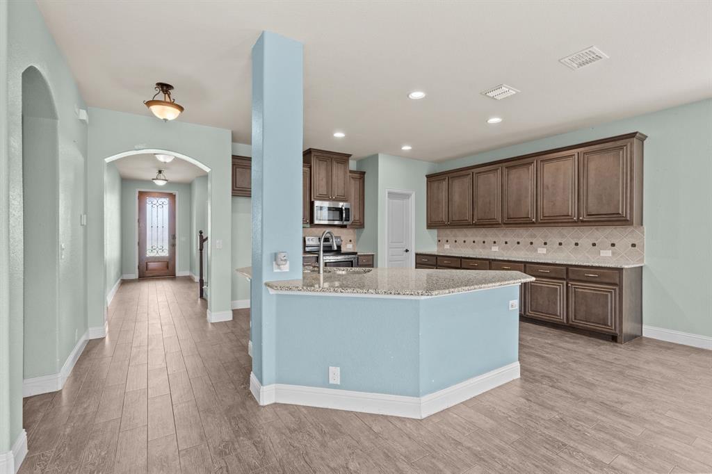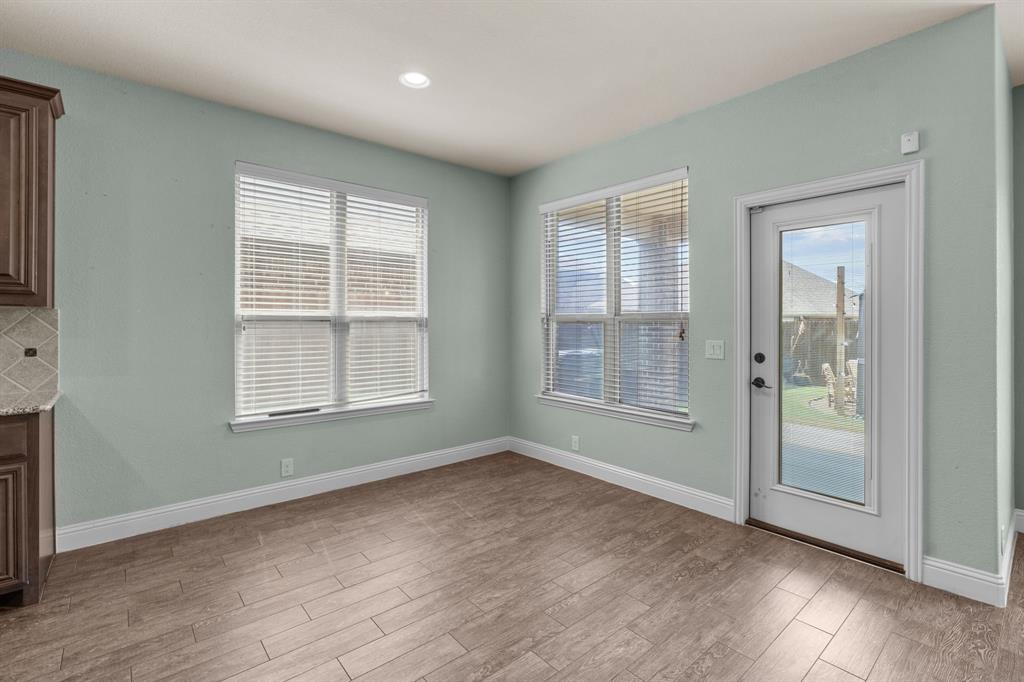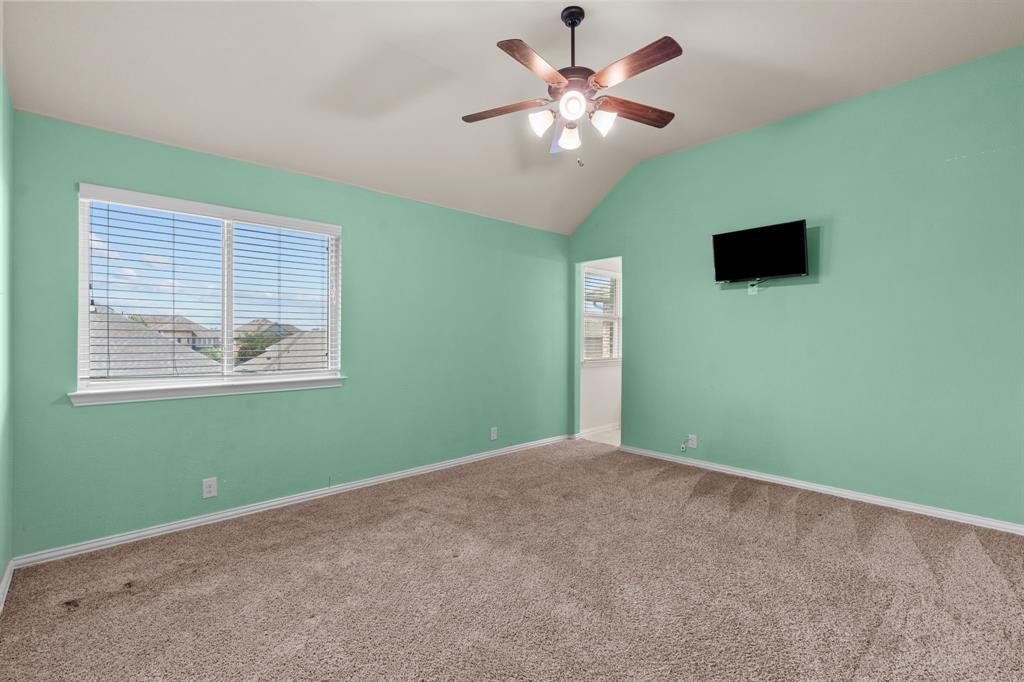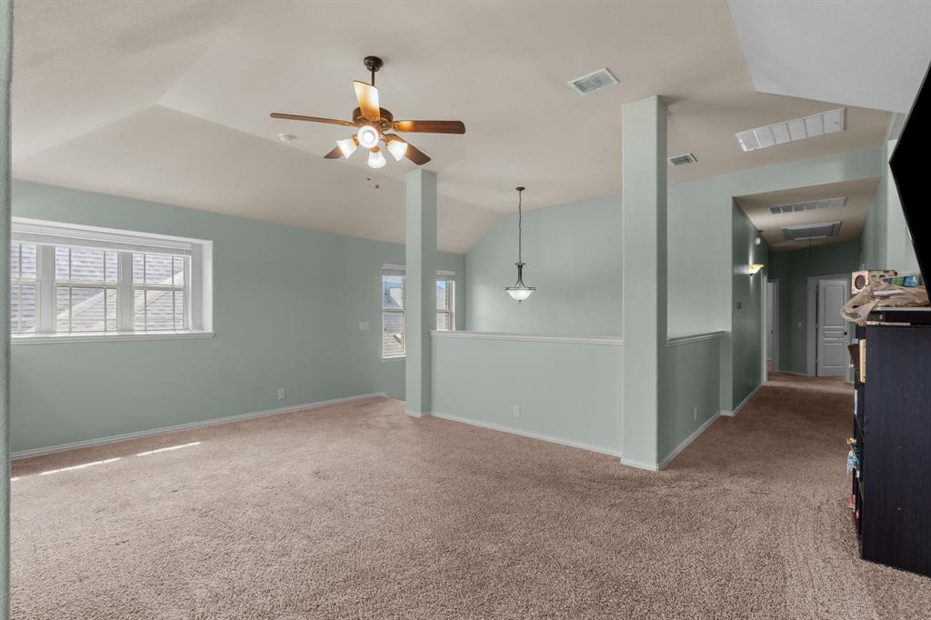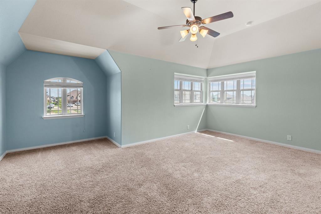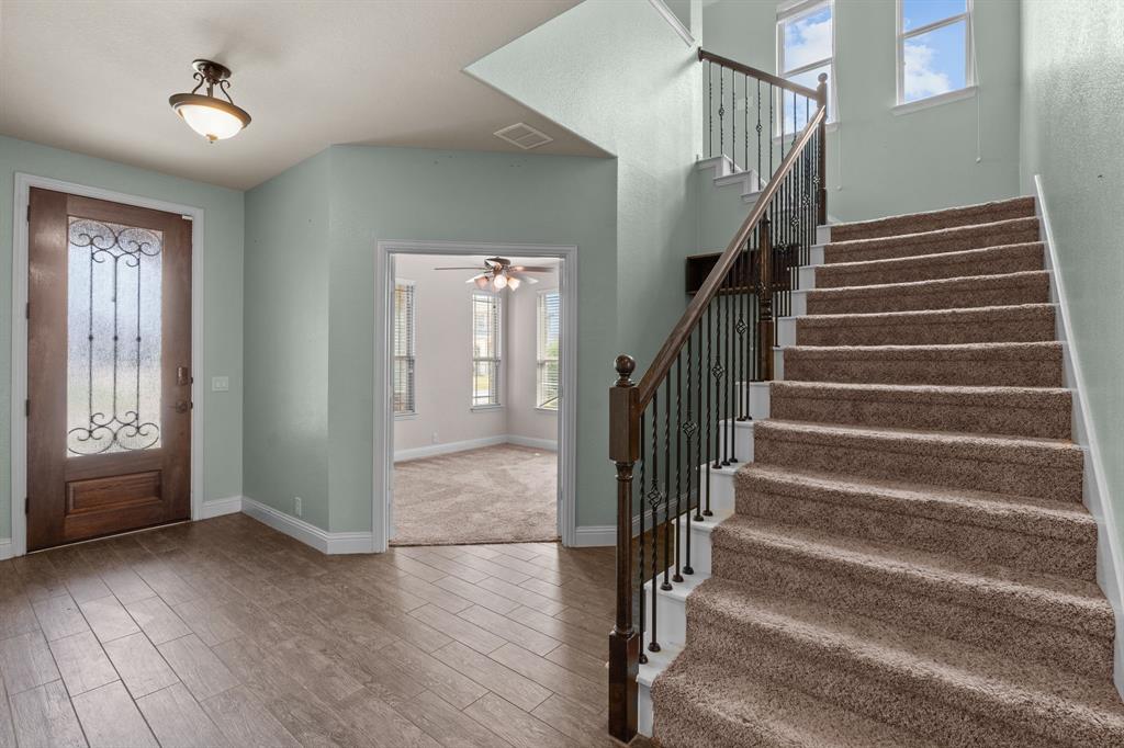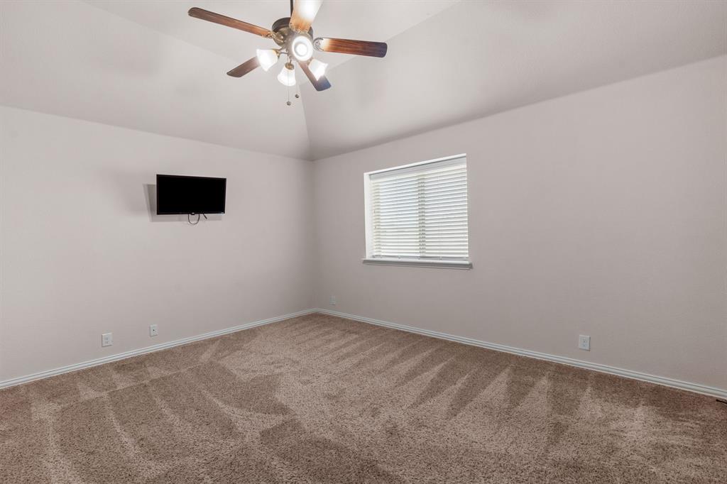 VA LOAN ASSUMABLE AT 2.25%!! This stunning oversized plan, highly sought after and set on a spacious lot in Northwest ISD, is absolutely beautiful! Featuring five bedrooms and three and a half bathrooms, this home boasts generous space in every room. The impressive kitchen includes a large island, stainless steel appliances, granite countertops, and a walk-in pantry measuring 7 feet by 10 feet. The dining and living areas are separated from the kitchen, creating an inviting space for entertaining while offering lovely views of the backyard. The primary bedroom suite features a window ledge, a walk-in shower, a garden tub, dual sinks, and a remarkable built-in closet system to accommodate all your storage needs. At the front of the home, you'll discover an office and a mudroom. The second floor showcases a spacious game room, four additional bedrooms, and a laundry area. Two oversized secondary bedrooms share a Jack and Jill ensuite bathroom, each equipped with its own walk-in closet. The other two secondary bedrooms are also quite large, featuring walk-in closets and easy access to a full bathroom located in the hallway. The backyard is perfect for relaxation and entertainment, complete with a built-in fire pit with a covering, a gardening area, and attractive landscaping. Exterior front eaves are equipped with GemStone Lighting, perfect for illuminating your home with your choice of colors throughout the year.