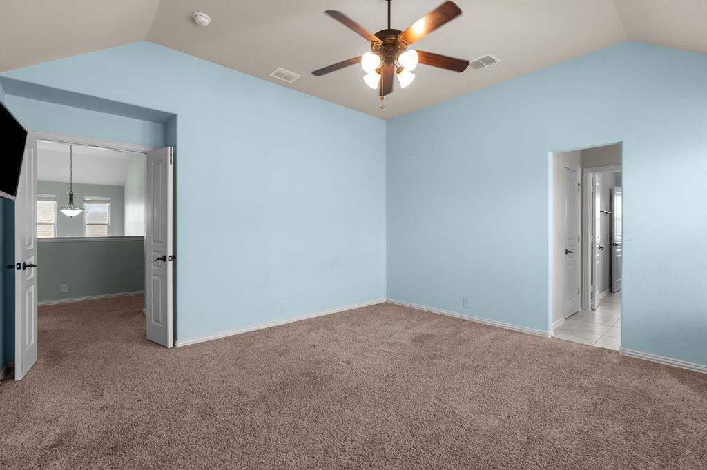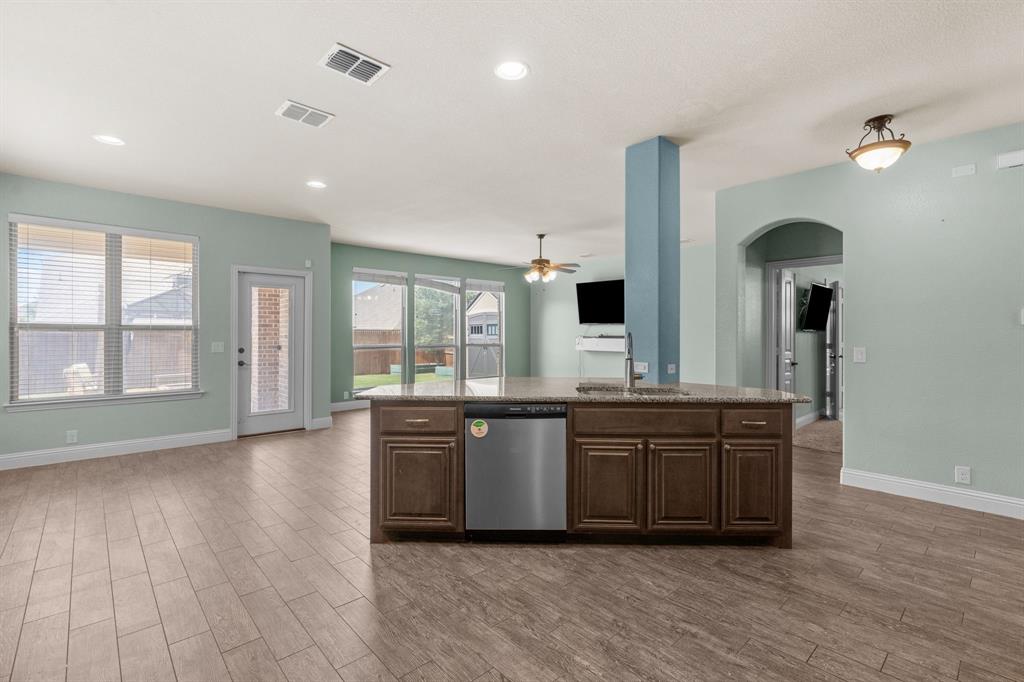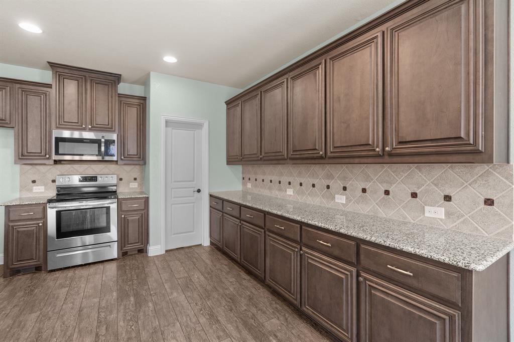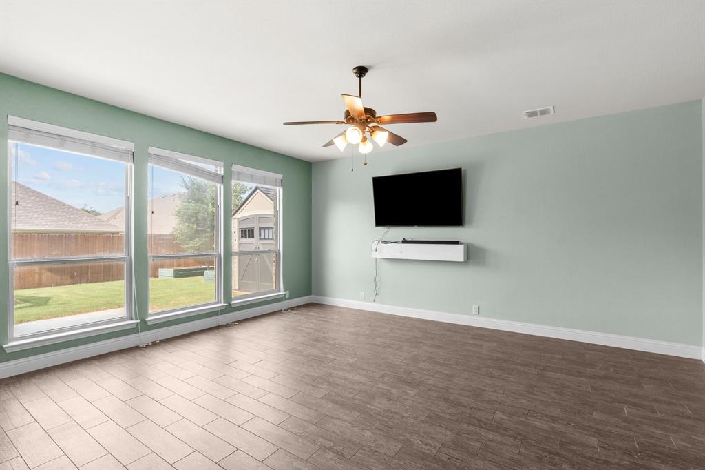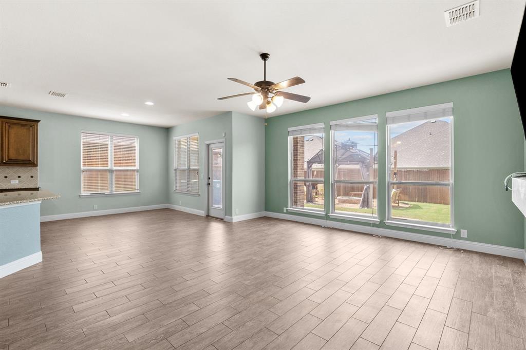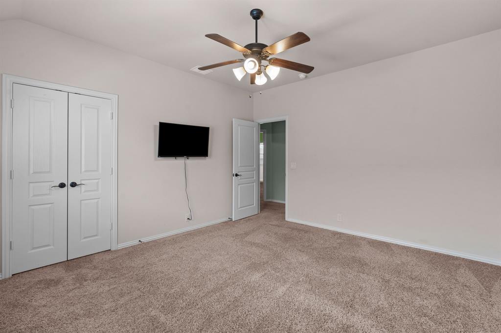 VA LOAN ASSUMABLE AT 2.25%!! This stunning oversized plan, highly sought after and set on a spacious lot in Northwest ISD, is absolutely beautiful! Featuring five bedrooms and three and a half bathrooms, this home boasts generous space in every room. The impressive kitchen includes a large island, stainless steel appliances, granite countertops, and a walk-in pantry measuring 7 feet by 10 feet. The dining and living areas are separated from the kitchen, creating an inviting space for entertaining while offering lovely views of the backyard. The primary bedroom suite features a window ledge, a walk-in shower, a garden tub, dual sinks, and a remarkable built-in closet system to accommodate all your storage needs. At the front of the home, you'll discover an office and a mudroom. The second floor showcases a spacious game room, four additional bedrooms, and a laundry area. Two oversized secondary bedrooms share a Jack and Jill ensuite bathroom, each equipped with its own walk-in closet. The other two secondary bedrooms are also quite large, featuring walk-in closets and easy access to a full bathroom located in the hallway. The backyard is perfect for relaxation and entertainment, complete with a built-in fire pit with a covering, a gardening area, and attractive landscaping. Exterior front eaves are equipped with GemStone Lighting, perfect for illuminating your home with your choice of colors throughout the year.